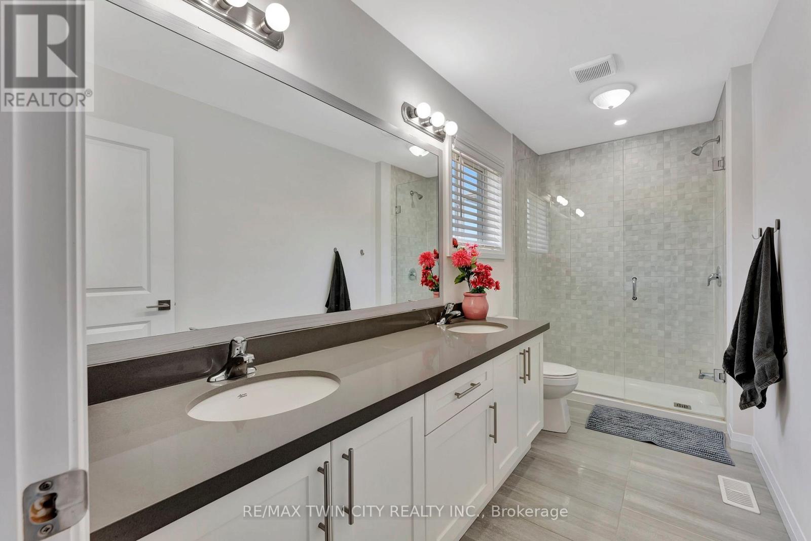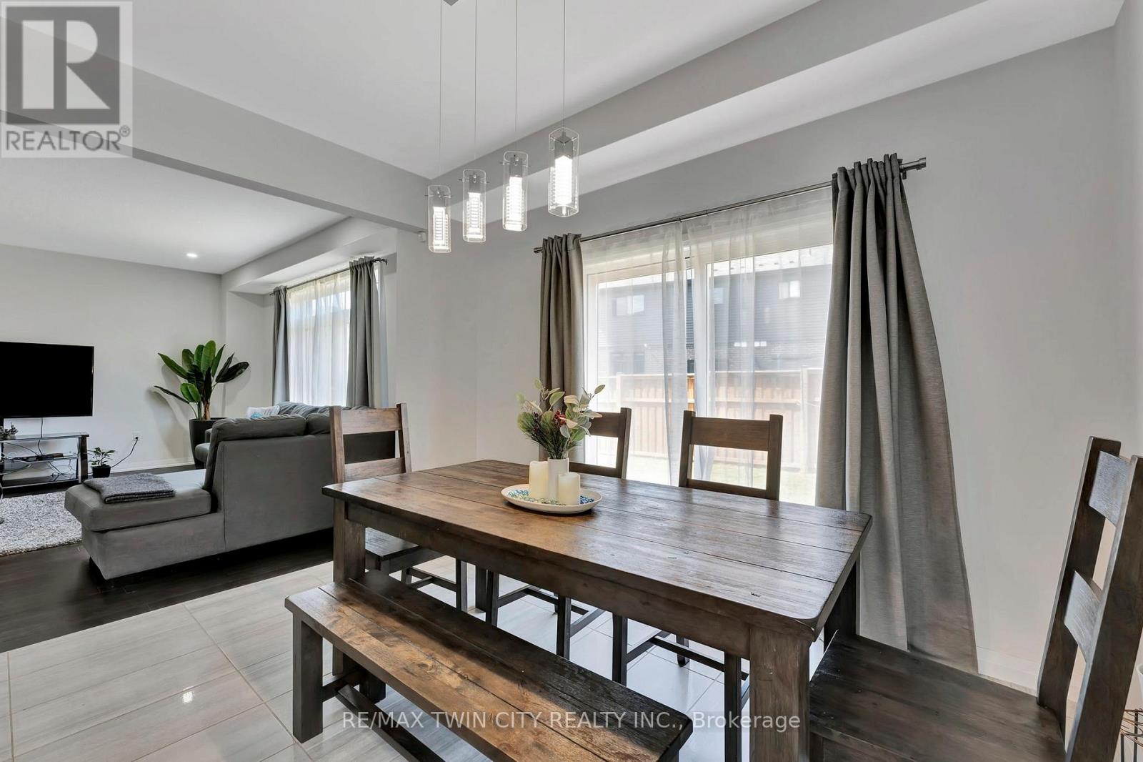 Welcome to 16 Cumberland Street! This beautifully maintained 4 bedroom, 2.5 bath home was built in 2020 and is perfectly situated on a quiet street in a family-friendly neighbourhood, just minutes from Highway 403, ideal for those commuting to the GTA. Inside, the bright and spacious main floor features soaring 9-foot ceilings, pot lighting, and a modern open concept layout with a blend of tile and hardwood flooring. The kitchen is thoughtfully designed with quartz countertops, stainless steel appliances, a large island with breakfast bar seating, and clean white cabinetry with under cabinet lighting, and a subway tile backsplash. The dining area flows effortlessly into the fully fenced backyard, offering a great space for entertaining or relaxing outdoors. The solid oak staircase leads to the second level, where you'll find a spacious primary suite with a large walk-in closet and a stylish ensuite boasting a double vanity and glass shower. Three additional bedrooms, a second full bathroom, and a convenient bedroom-level laundry room complete the upper floor. The home also offers inside entry from the double car garage, creating excellent potential for a future in-law suite. With a covered front porch, carpet-free main floor, and tasteful, move-in ready finishes throughout, this home combines comfort, style, and functionality. Located close to schools, parks, shopping, and transit, this home is a fantastic option for families or professionals seeking space and convenience. (id:64974)