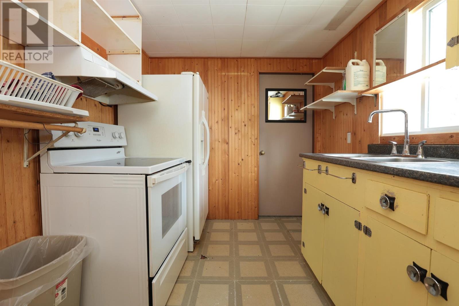 Situated on a large double lot, this one-bedroom home offers the potential for a second small bedroom or office. The living room is spacious, complemented by an efficient kitchen and a full bathroom/laundry combo. Outside, you'll find a detached 1.5-car garage (20 x 24), a large storage shed, and durable metal roofing on all three structures. A newer deck and private yard create inviting outdoor space. Conveniently within walking distance to town amenities, this property is ideal for a handy buyer, first-time homeowner, or someone looking to downsize with a manageable project. Property is being sold in "AS IS, WHERE IS" condition to settle an estate. (id:64974)
