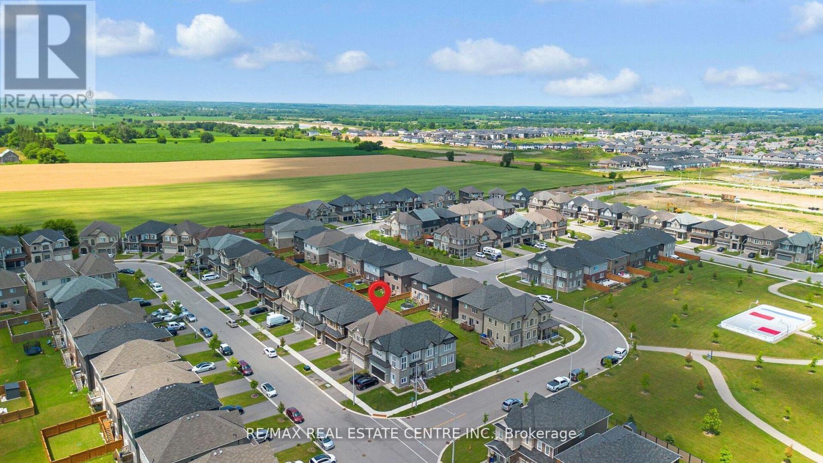 Discover this stunning 4-bedroom, 3-bathroom detached home with a double-car garage, nestled in the highly desirable Scenic Ridge community just minutes from Hwy 403. Backing onto a spacious community park, this home offers an ideal blend of privacy, convenience, and family-friendly living. Step inside to soaring 9-foot ceilings on the main level, complemented by a bright, open-concept layout with separate living and dining areas-perfect for both everyday comfort and entertaining. The sun-filled family room creates a warm, welcoming space, while the stylish kitchen boasts granite countertops, stainless steel appliances, and a functional design for effortless meal prep and hosting. Upstairs, retreat to the generous primary suite featuring a walk-in closet and a spa-inspired 4-piece ensuite. Three additional well-sized bedrooms provide flexible space for family, guests, or a home office. A separate side entrance leads to the unfinished basement, offering excellent potential for a future in-law suite or legal second unit. Conveniently located within walking distance to shopping, schools, Brant Sports Complex, and restaurants, this move-in-ready home delivers comfort, elegance, and long-term value. Don't miss this exceptional opportunity to own your dream home in Scenic Ridge! (id:64974)