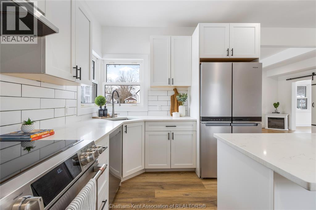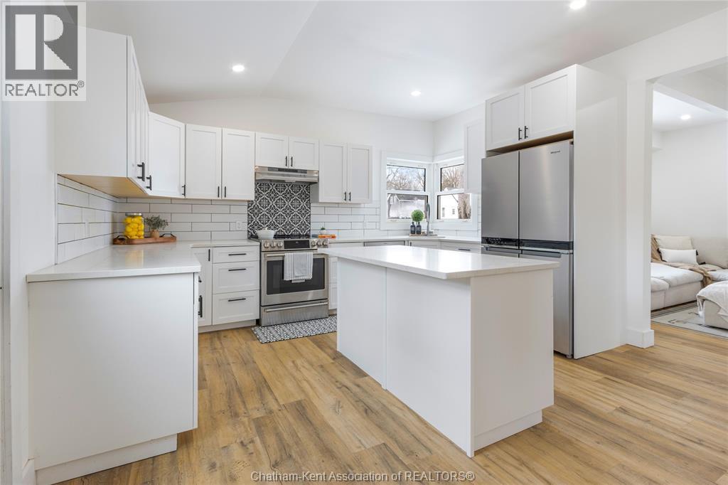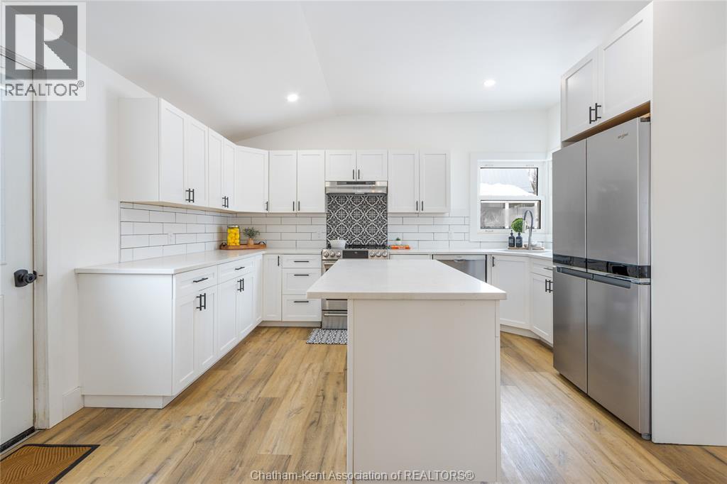 This stunning 4-bedroom, 1.5 bathroom home in the lovely town of Ridgetown delivers modern finishes, functional living space, and an exceptional 38’ x 36’ triple-car garage/shop that truly sets it apart. Renovated down to the studs in 2020, every detail has been thoughtfully updated with quality craftsmanship and pride of ownership evident throughout. Step into the bright sunroom or welcoming foyer and immediately appreciate the abundance of natural light and the home’s clean, and modern design. The spacious kitchen is the heart of the home, showcasing quartz countertops, a large island, stylish backsplash, soft-close cabinetry, and stainless steel appliances. The adjoining dining area makes gatherings and entertaining effortless. The main floor also features a comfortable family room, a versatile bedroom or home office, and a convenient 2-piece bath. Upstairs, you’ll find three large bedrooms and a beautifully finished 4-piece bathroom complete with a double vanity that is ideal for busy families. Major 2020 updates include electrical, plumbing, insulation, siding, drywall, flooring, trim, light fixtures, quartz surfaces, and air conditioner offering peace of mind for years to come. Outside, the fully fenced backyard provides space for children and pets to play, while the oversized 38’ x 36’ triple-car garage/shop offers incredible storage, workspace, or the perfect setup for hobbyists and car enthusiasts. Truly move-in ready, this Ridgetown property blends modern comfort with small-town charm and will check off a lot of boxes! Call today! (id:64974)