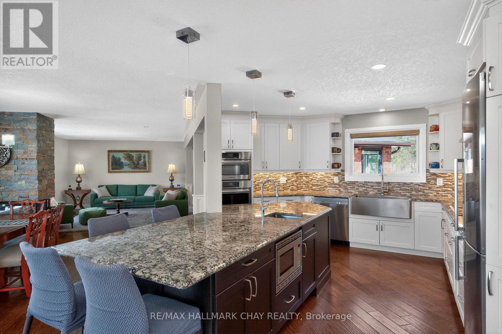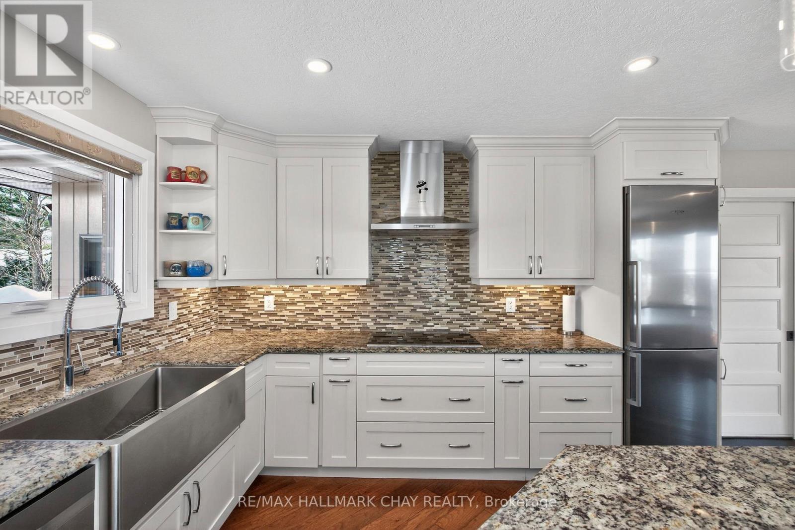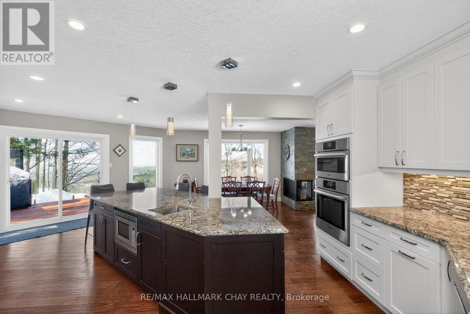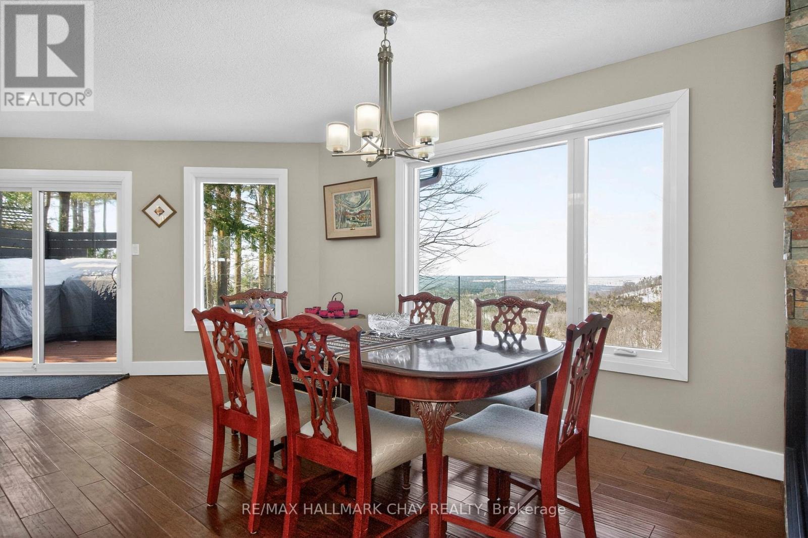 Welcome to 16 Highland Drive in the sought-after Horseshoe Highlands of Oro-Medonte. This is a rare opportunity on the Highland Drive ridge, one of just nine properties with clear, panoramic views across Horseshoe Valley and Georgian Bay to Meaford-approximately 80 kilometres. Only one other of these view properties has come to market in the past five years. Fully renovated to showcase the spectacular setting, this exceptional walkout bungalow offers seamless open-concept living designed for both everyday comfort and entertaining. The home features four bedrooms and three full bathrooms, with a bright, airy layout throughout. The main level is finished with rich hardwood floors and includes a dedicated, spacious home office-ideal for remote work in a peaceful setting. The updated kitchen is the heart of the home, complete with granite countertops, a large island for gathering, and generous prep space for hosting family and friends. The main floor principal suite enjoys sweeping views, an exceptionally spacious ensuite, and a large walk-in closet. The lower level is as light-filled as the main floor, thanks to glass walkout doors leading to the rear yard. Here you'll find additional bedrooms, a full bathroom with tub and shower, and a small service area that adds flexibility for entertaining or multi-generational living. Set in the heart of Horseshoe Valley, the home offers convenient access to outdoor recreation, including skiing, hiking, biking trails, golf, and the local resort and spa. The community is approximately 15 minutes to Barrie and about one hour to Toronto Pearson International Airport. Nearby amenities include two ski areas within two kilometers, 43 kilometers of cross-country and mountain bike trails, and a new elementary school and community centre just one kilometer away. Opportunities like this are few and far between on this coveted ridge. Experience comfort, space, and exceptional views in one remarkable home. (id:64974)