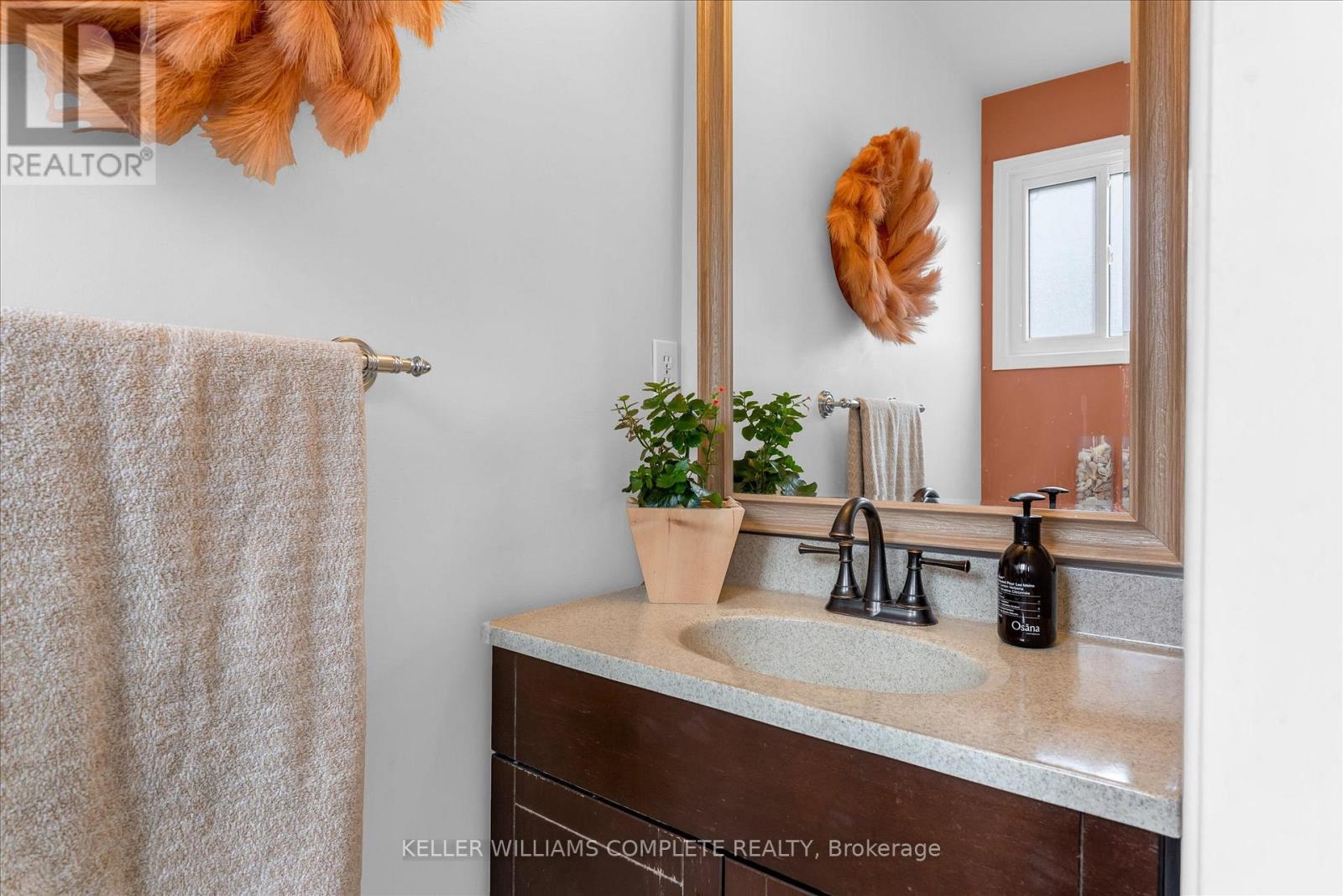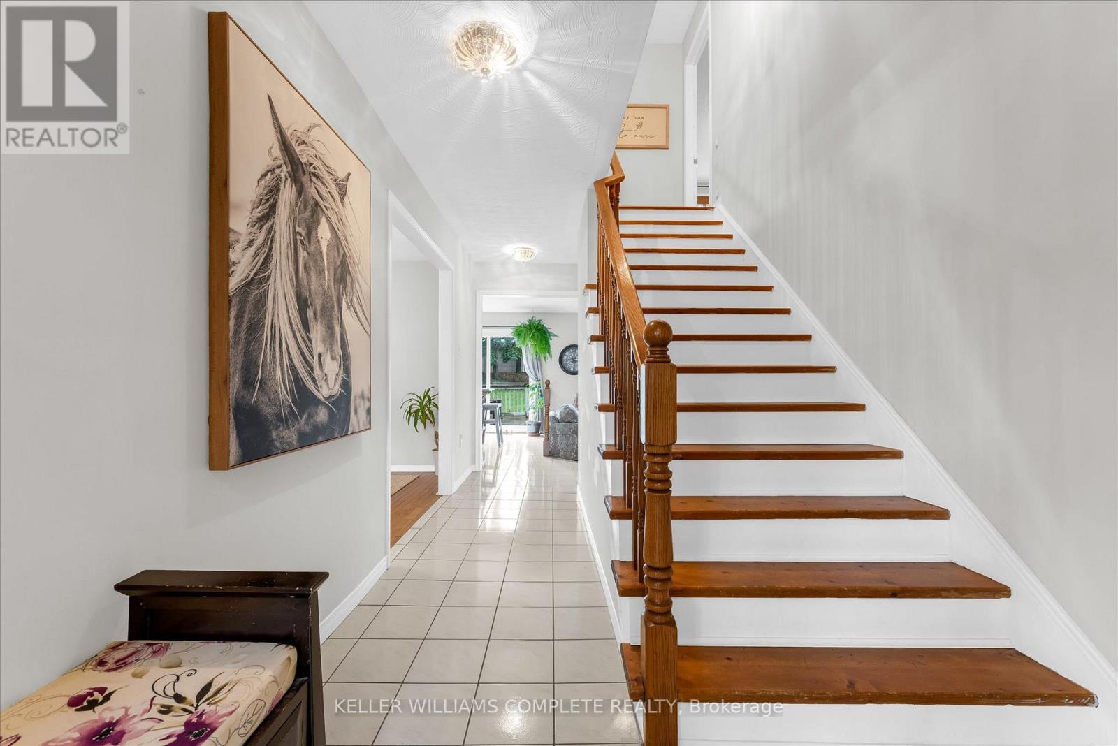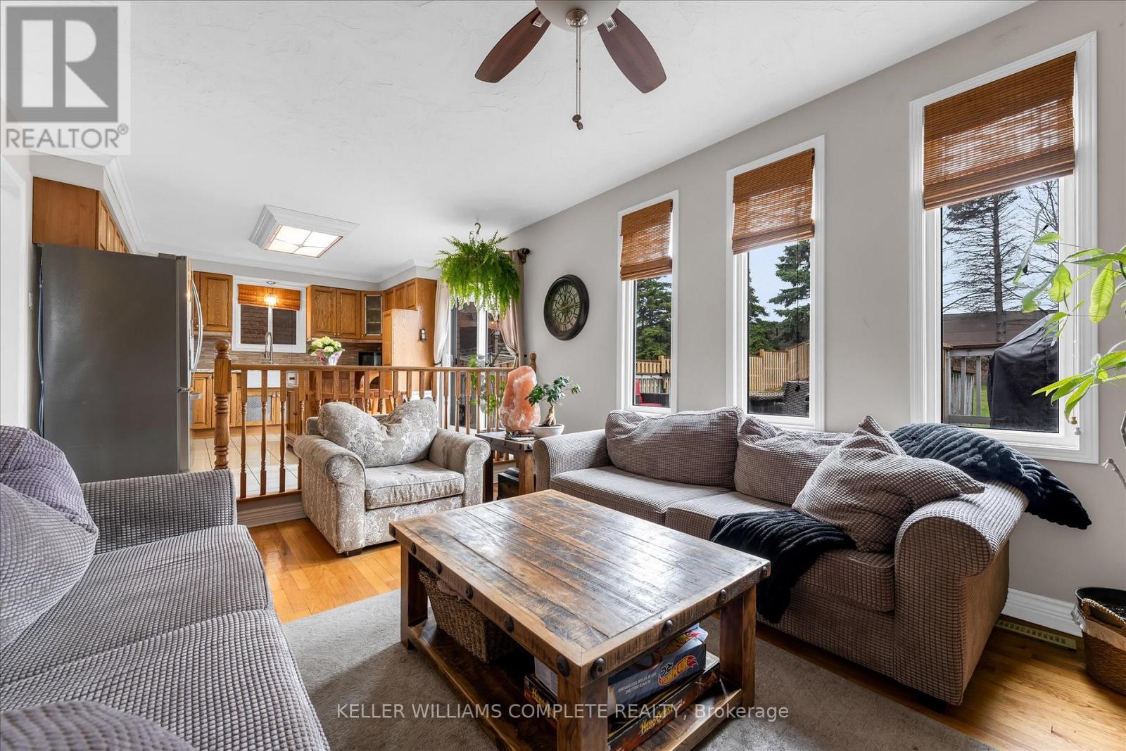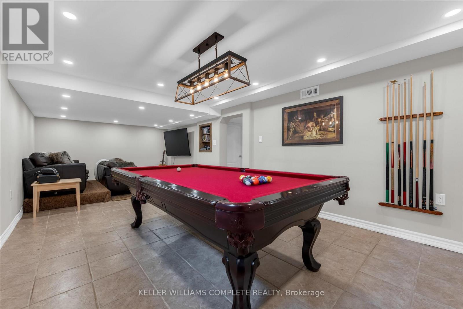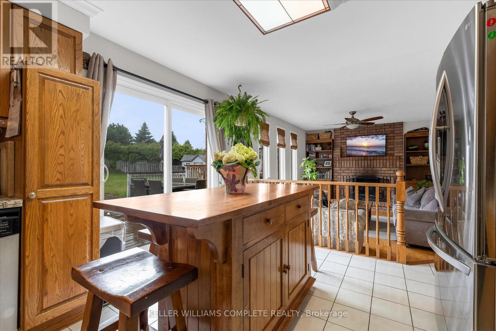 Steps to Lake Ontario in a quiet court location! Best neighbours you could have!! This beautifully maintained 2,073 sqft, 4+1 bedroom, 2.5 bathroom home showcases true pride of ownership with neutral décor and no carpeting throughout. Hardwood floors run through the living, dining, family room, and all bedrooms, with ceramics in the kitchen and bathrooms. The updated eat-in kitchen features granite countertops, oak cabinetry, and ample storage, and opens to a sunken family room with a cozy wood-burning fireplace and walkout to the backyard. Set on one of the largest and most private lots in the area, the backyard offers mature trees, is fully fenced, a spacious deck, above-ground pool (removable), and plenty of room for entertaining or family enjoyment. The primary bedroom includes a walk-in closet and a 3-piece ensuite with a large walk-in shower. The finished basement adds extra living space with a pool table/theatre room (which could be a bedroom) & a finished workout & home salon area plus storage. Numerous updates include A/C (2024), pool pump (2023), furnace (2021), pool liner (2021), windows (2012), shingles (2007) - all dates approximate. Located just a 1-minute walk to scenic lakefront trails and Cherry Beach, close to schools, shopping, parks, and with excellent highway access - only 20 minutes to Niagara or Oakville. Move-in ready and shows beautifully! (id:64974)