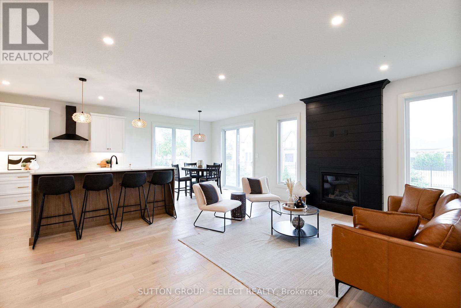 LAST 55FT LOT LEFT! Incredible oversized 3 CAR GARAGE open concept 3 bedrm one floor model with SECOND ENTRANCE from garage to fully functioning FINISHED basement with kitchenette, 2 bedrms, 4pc bathroom and HUGE familyrm situated on generous pool sized lot (55ft x 127ft) with rod iron fence across back and trees planted. You will be impressed the moment you enter the front door with the finishes throughout this home including a Designer kitchen with breakfast bar island, quartz counter tops, valance lighting and backsplash. Great room with upgraded gas fireplace. Master bedroom suite with walk in closet and luxury ensuite with glass shower. Nicely sized additional bedrooms with close access to 4pc bath. Main floor laundry with garage access. Loads of potlights included! 200 AMP service. Approx 2800sqft finished. Rich hardwoods throughout main living areas, tile in laundry and baths, solid surface counter tops, central air, concrete driveway, upgraded stone on front elevation...the list goes on! Flexible closing - quick close anytime if needed! Lets make a deal! View today! (id:64974)