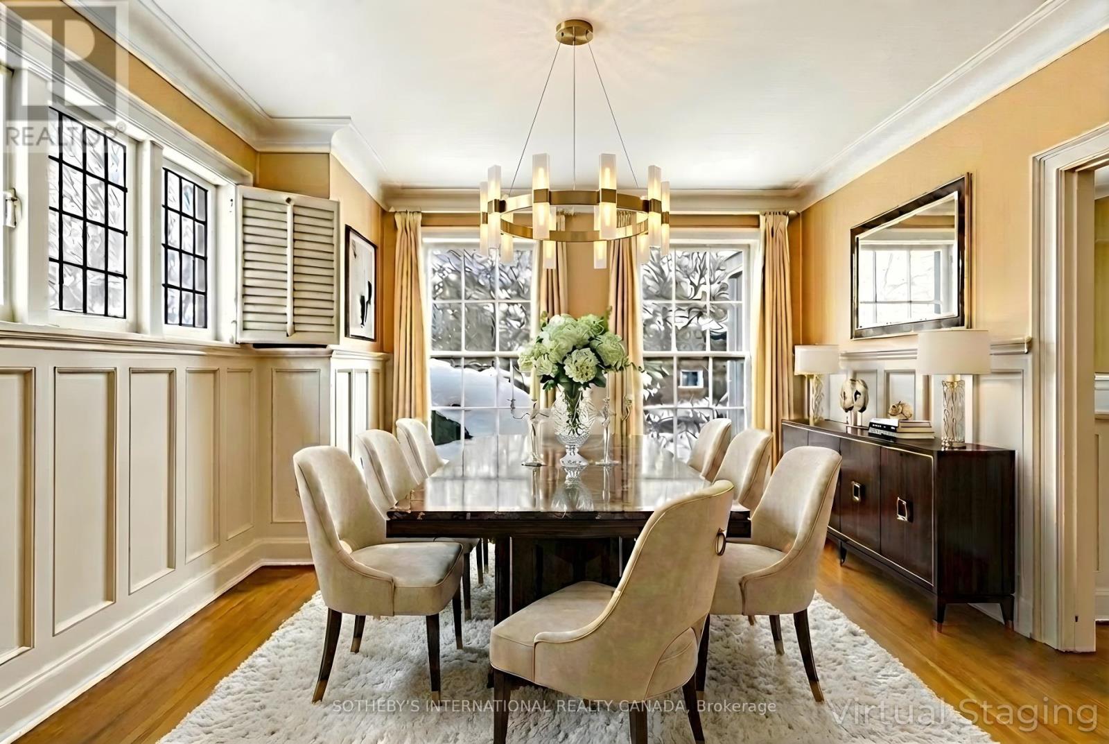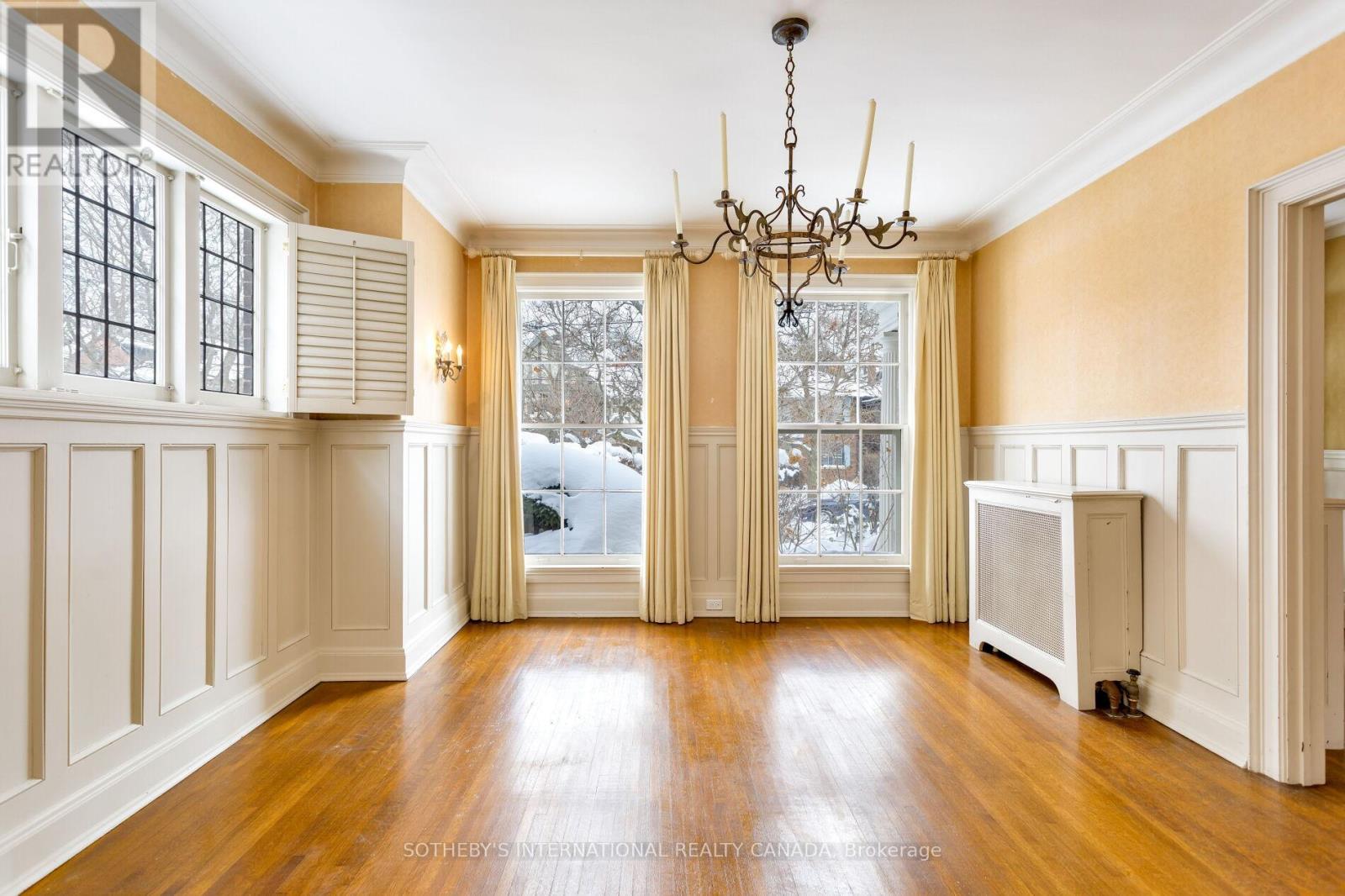 An exceptional opportunity to restore and reimagine a distinguished Moore Park residence, rich in original character and set within one of Toronto's most prestigious neighbourhoods. This classic Georgian Revival offers the elegance of a bygone era and invites the next owner to create a bespoke forever family home of exceptional grace and distinction. Possibilities abound to preserve its timeless charm or transform it into a contemporary masterpiece, all while honouring the home's enduring architectural presence. Ideally positioned on a quiet, private street in a highly coveted pocket of Moore Park, this stately detached 2 storey tucked away in an enclave of tranquility, yet moments from the energy of urban life. Set on a remarkable 50-ft frontage with an extraordinary lot extending nearly 300 ft into a wooded ravine, the property is surrounded by mature trees and offers unparalleled privacy, year-round natural beauty, and a true sense of retreat rarely found so close to the city's core. This grande dame features a traditional centre hall plan with tall ceilings, classic wainscoting, crown moulding, and gracious principal rooms flooded with natural light. A generously proportioned living room anchors the main flr, while 4 bedrooms provide ample space for family living. The finished lower level includes a walk-out to the ravine, and a private drive leads to a double-car garage. Functional mechanical updates have been completed over time. Lovingly held and cherished for many years, this jewel of a home is ready for its next chapter. Offering remarkable privacy alongside the convenience of an exceptional location. Steps to Yonge Street shops and restaurants, subway, Badminton & Racquet Club, top-rated schools, parks, and the ravine system. This is a rare opportunity for discerning buyers. Buyers are encouraged to bring their architect, contractor, or designer to fully explore the extraordinary potential and help shape the next chapter of this rare Moore Park home. (id:64974)
