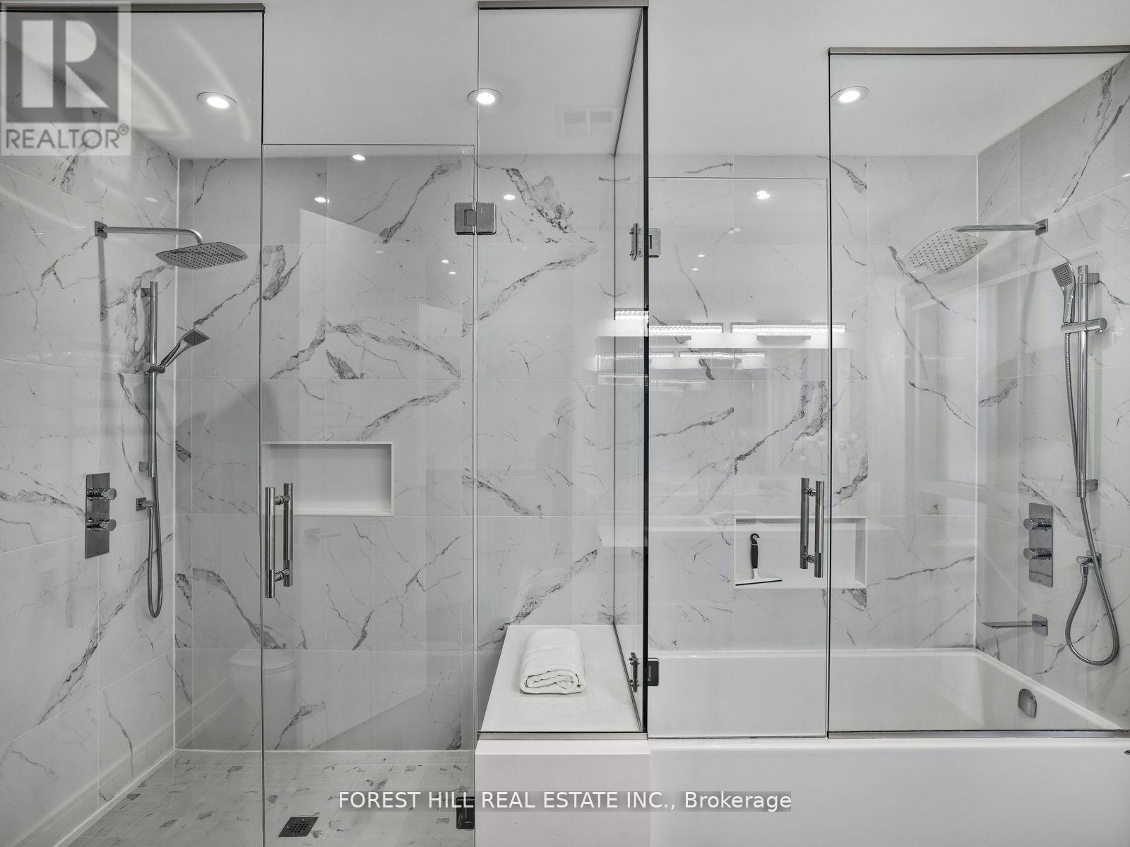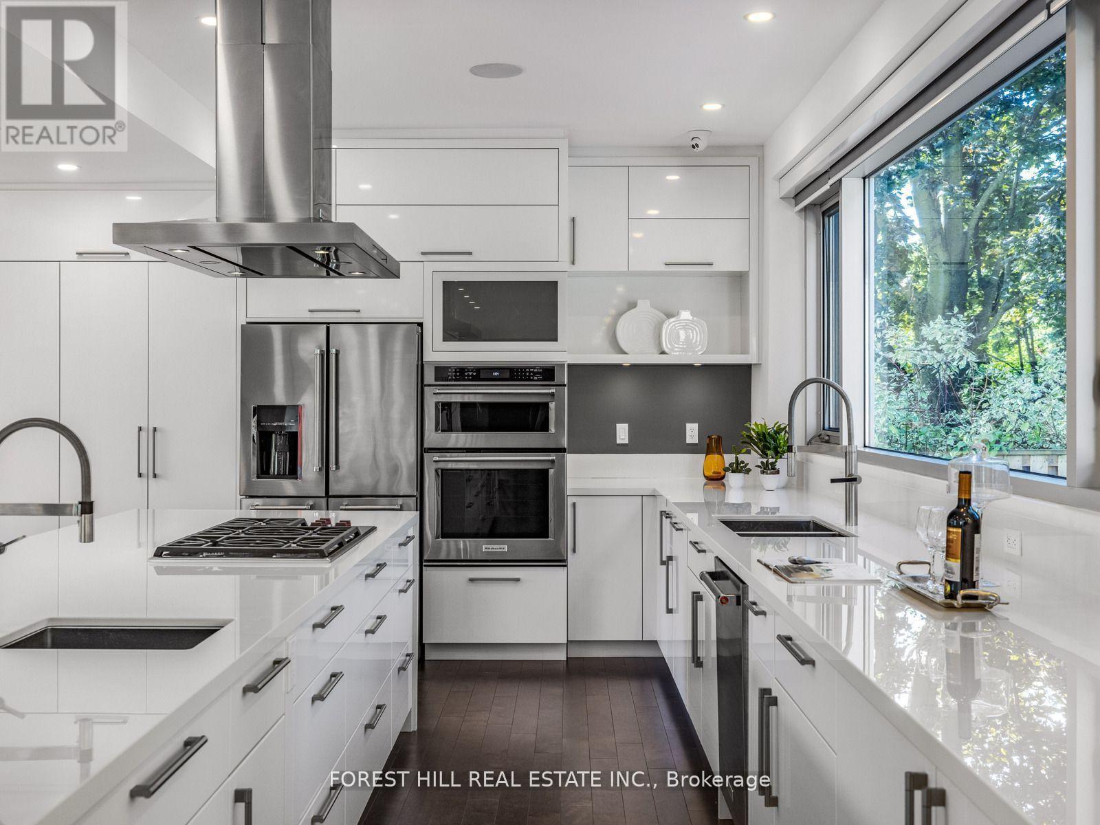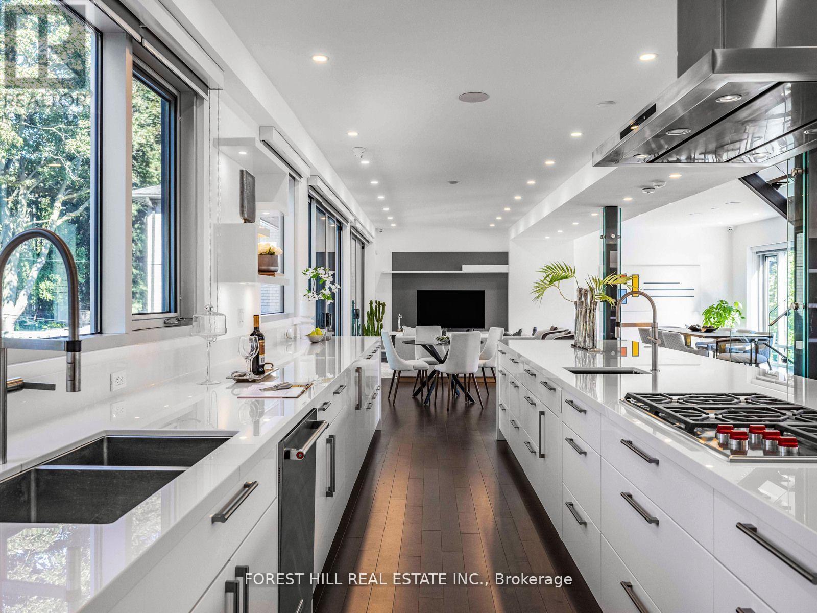 -------- Breathtaking & Built In 2017 --------- MODERN & architectural luxury appointments, designed & built for the owner, loved/maintained by the owner ---- URBAN STYLISH --- Tasteful interior design deco --- offering superior advanced-IMPRESSIVE design, and built to the highest of standards to **Commercial Standards(extravagant building materials) **with steel frame, and aluminum oversized windows, and delivering an unmatched level of finish, surpass expectation, perfect for family life and upscale lifestyle-----ZEN inspired clean--"SEAMLESS LINES ULTRA MODERN, airy atmosphere", nestled in the prestigious Bayview Village----Artfully designed open -riser staircases, The main floor offers brilliantly executed open concept principal rooms with incredible **STUNNING VIEWS** CAPTURES THE ESSENCE OF THIS HOME BEAUTY. The designer, sleek kitchen offers great spaces for your family's culinary experience, and contemporary kit equip with dekton countertop, bespoke cabinetry(lavish) and expansive centre island, adjoining breakfast area, easy access to private and large backyard. The open concept family room or potential senior room provides with custom-shelving and beautiful-green view, well-positioned 3pcs washroom. The elegantly, privately appointed primary bedroom with east & west-unique 2 balconies, electric fireplace, adjoining sitting area for your private time, opulent 6pcs HEATED ensuite. The additional bedrooms provide own ensuite, oversized windows, providing perfect scenery of green garden and conservatory beauty. The lower level offers a HEATED floor, kitchenette, 3pcs washroom and bedroom, and ample sunlight thru-out the large windows. The vast backyard is perfect for entertainment equipped with privacy hedges, firepit and waterfall, sitting area. This home is situated in peaceful and exclusive neighbourhood surroundings near don river trails, parks, bayview village shops and excellent schools & major highways. (id:64974)