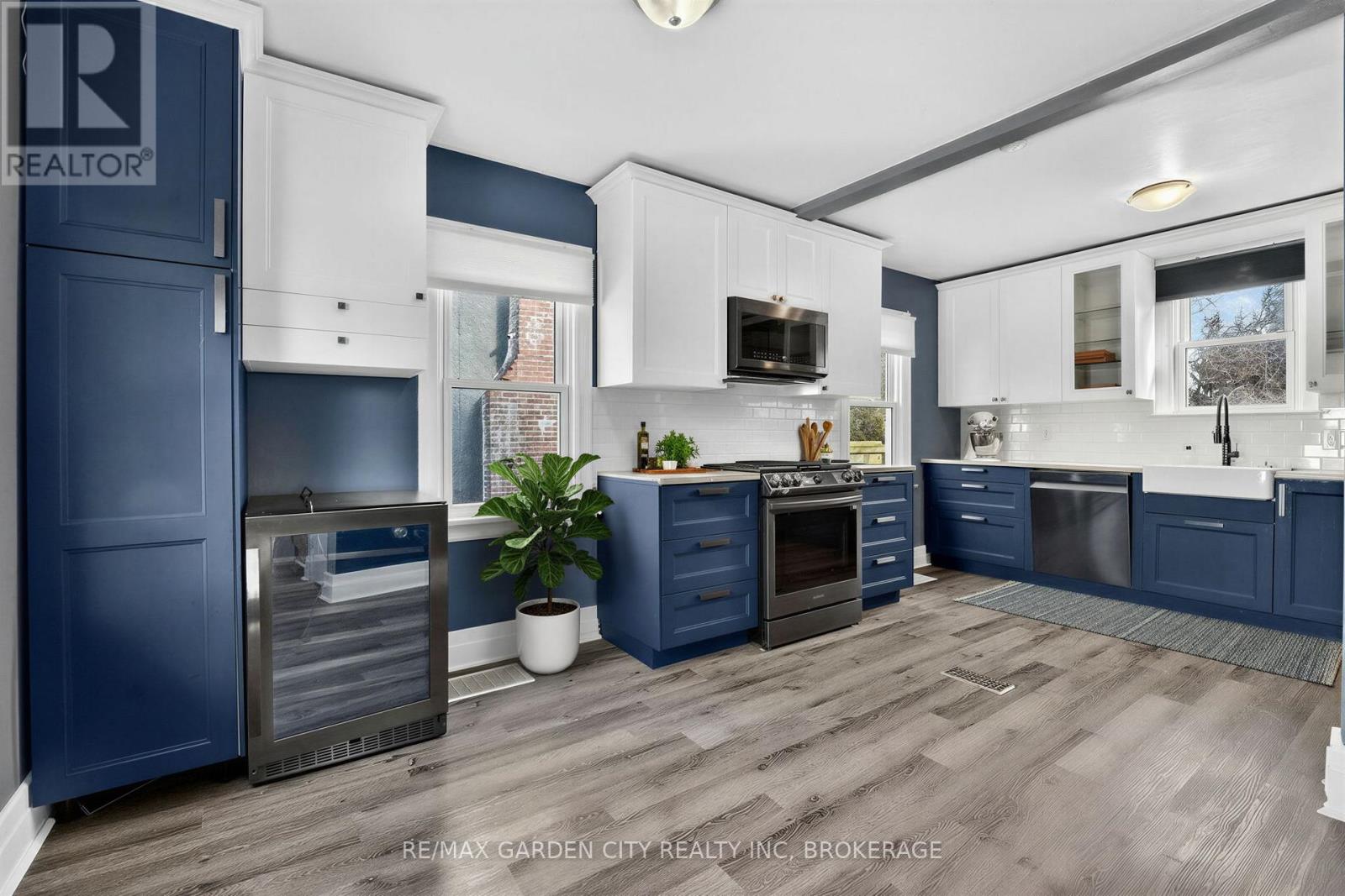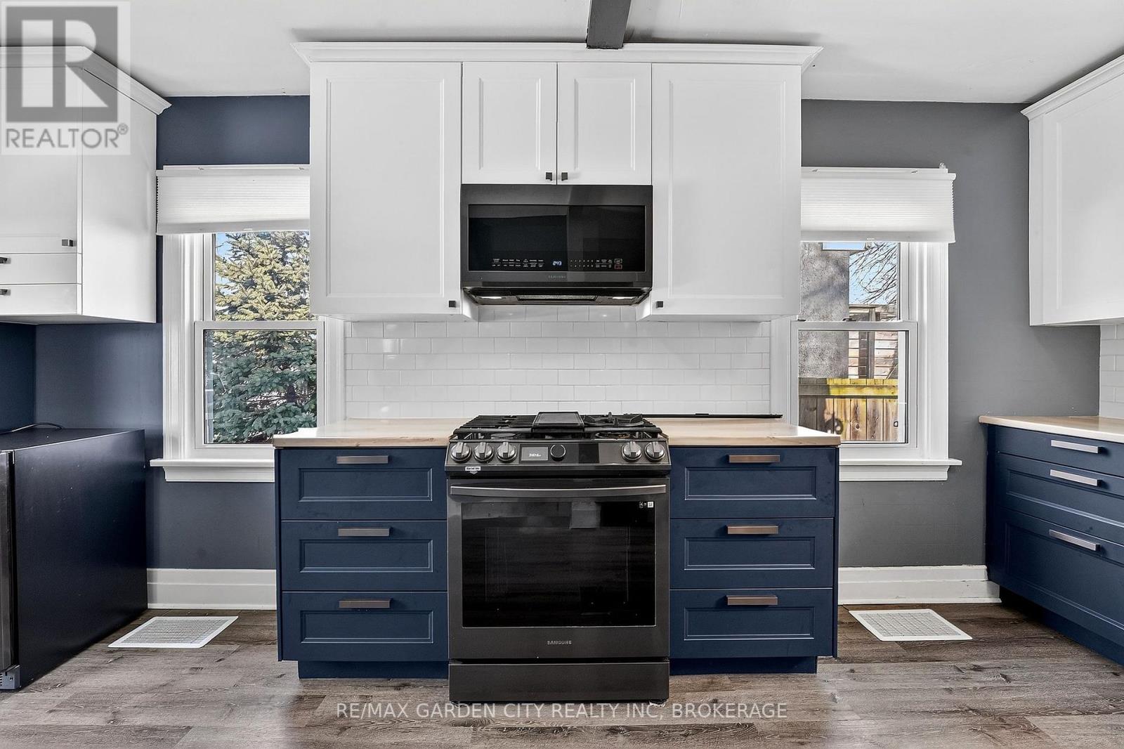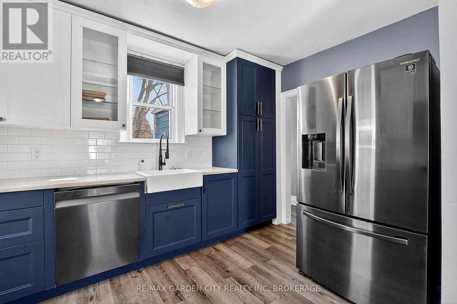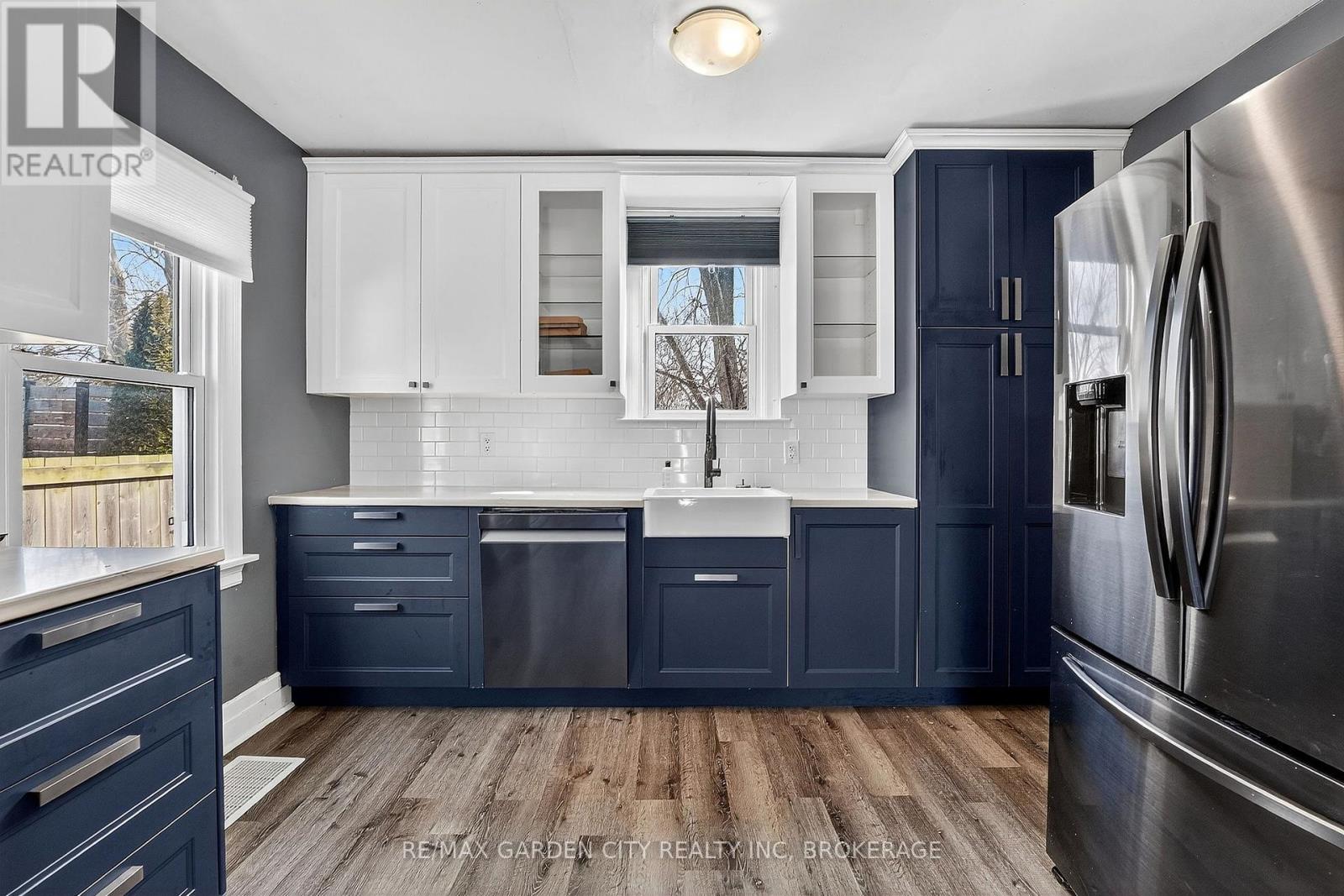 Sought after North Welland, this 1.5 storey updated 3 bedroom, 2 bathroom, with large Primary Bedroom on the Main with shower, is a great value.. Open concept Kitchen/Dining room, with high end appliances, farmers sink and wine cooler. Spacious bedrooms. Large Living Room .Cul De Sac location, close to all amenities and schools. Front porch, back deck access from the the kitchen. Huge 42 ft x 182 ft back yard, mostly fenced. Lots of closet and storage space on both levels. Basements is yours to finish. Newer windows, doors, furnace, AC, front porch, on demand Water heater, Roof 2011. Quiet fabulous location, don't miss out. (id:64974)