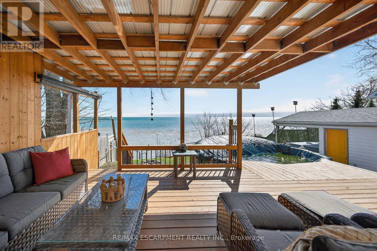 Waking up to Lake Erie sunrises just became your new reality! 16 Wilcox Drive is the ultimate waterfront haven! Whether you're relaxing in your "backyard oasis", complete with pool and hot tub with majestic Lake Erie as your personal back drop, or sitting by the gas fireplace in the cozy finished rec room this home is designed for making memories. Open-concept, freshly painted, and bright main floor living space with large lake facing window, 2 skylights, 3 pc bath with plus laundry, and waves crashing right outside your master bedroom patio door. Downstairs offers two more bedrooms and large family room. Massive custom designed rear deck, solid breakwall with small boat crane for your light watercraft, and a fully fenced yard for the kids or pups. No worries on the mechanicals- roof with gutter guards 2018, all vinyl windows, natural gas forced air furnace with central air, holding tank, cistern plus municipal Peacock Pt water for half the year. Enjoy everything this tight knit, family friendly safe community has to offer - including summer festivals in the park and a little corner store. Simplify your life and start living the lake dream! (id:64974)