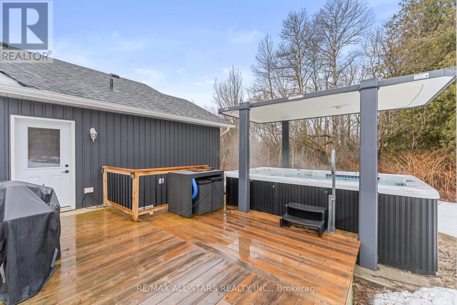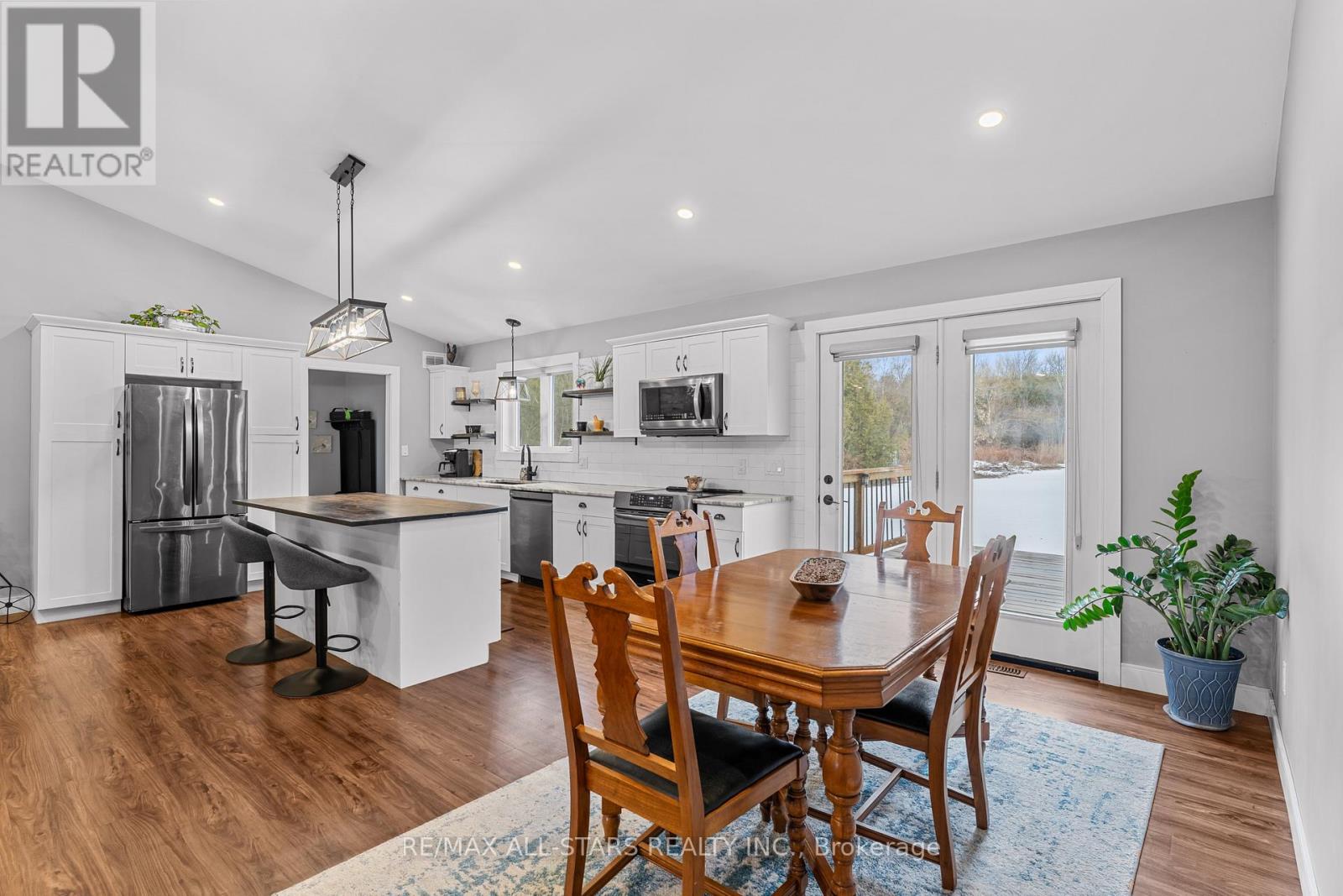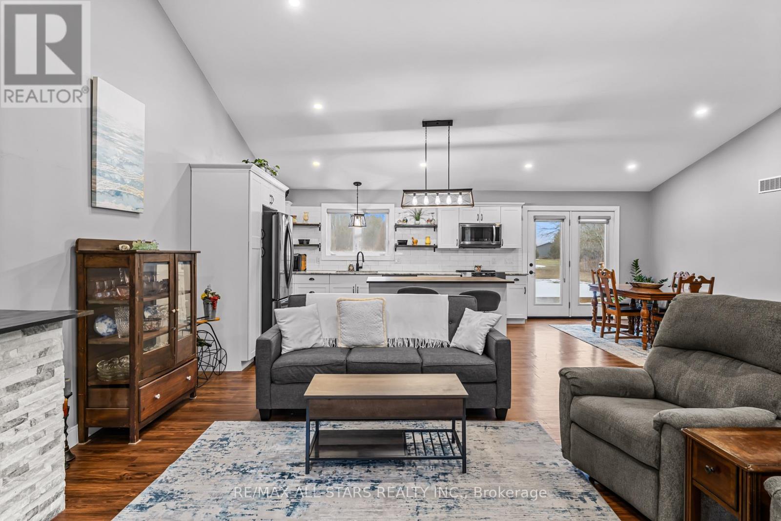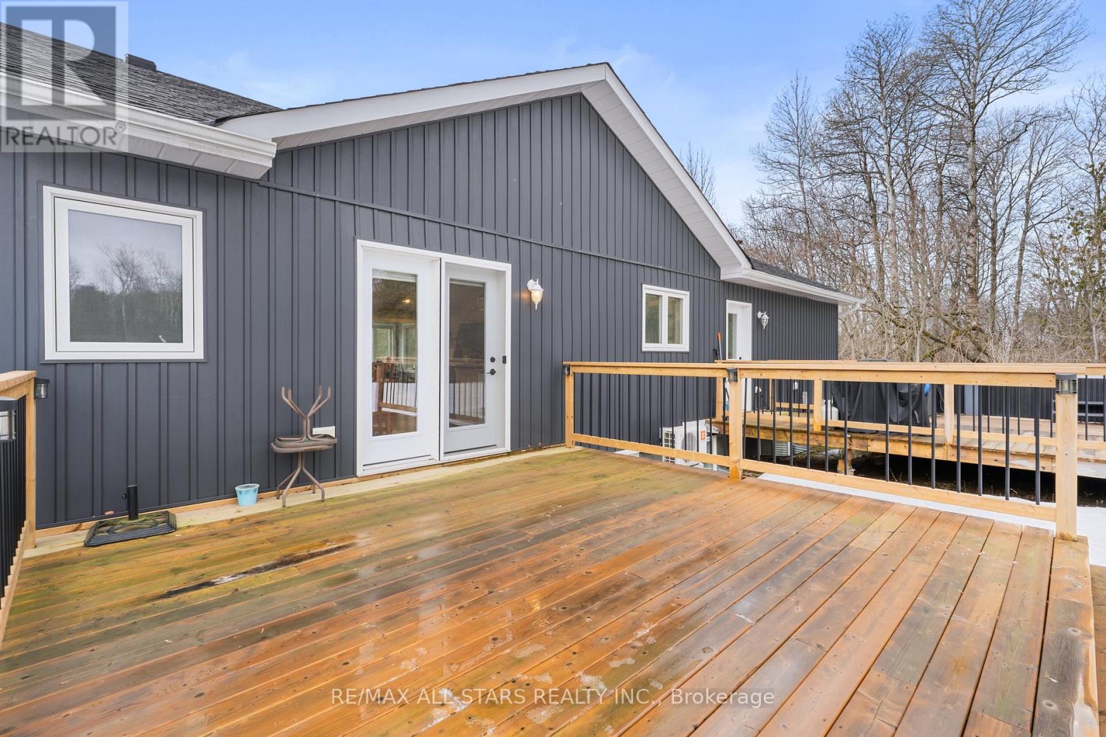 Spacious 3-bedroom, maintenance-free bungalow on a serene 14-acre parcel, showcasing an expansive open-concept kitchen, dining, and living area with a cozy gas fireplace, soaring vaulted ceilings, and abundant natural light. Effortless main-floor living includes practical laundry facilities and a seamless flow to two generous sized decks, perfect for quiet evenings. The primary bedroom retreat delivers a roomy walk-in closet and luxurious 3pc en-suite; complemented by two additional well-proportioned bedrooms and a bright 4pc main bath. Below grade, a voluminous 1669 sq ft finished basement splits into versatile zones: as potential fully self-contained 1-bedroom in-law apartment with private interior entrance, kitchenette, and full bath, plus a spacious family/rec room area with an extra bedroom and storage-ideal for large families or multi-generational households. Prime rural setting with development potential for two severances, and walking distance to Grafton Public & Catholic School. (id:64974)