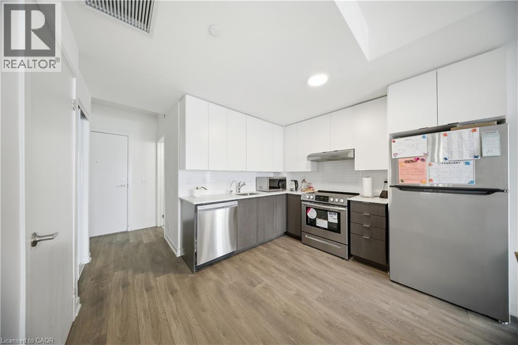 Experience contemporary living in this two-bedroom, two-bathroom residence located in the desirable Keelesdale neighbourhood. Thoughtfully designed with a bright, open layout, this unit showcases expansive windows that flood the space with natural light, and premium finishes throughout. The modern kitchen is outfitted with quartz countertops, ample cabinetry, and high quality stainless steel appliances, along with a convenient in-suite stacked washer and dryer. Generous storage solutions enhance everyday comfort, while the private balcony offers the perfect extension of the living space for relaxing or hosting guests. Residents benefit from a vibrant two-storey amenity building offering a fitness centre, party room, co-working space, BBQ area, pet wash station, and gardening plots. Ideally situated close to shops, transit, and daily conveniences, with easy access to Highways 401 and 400 and walking distance to the Keele Street LRT. An exceptional opportunity not to be missed. (id:64974)