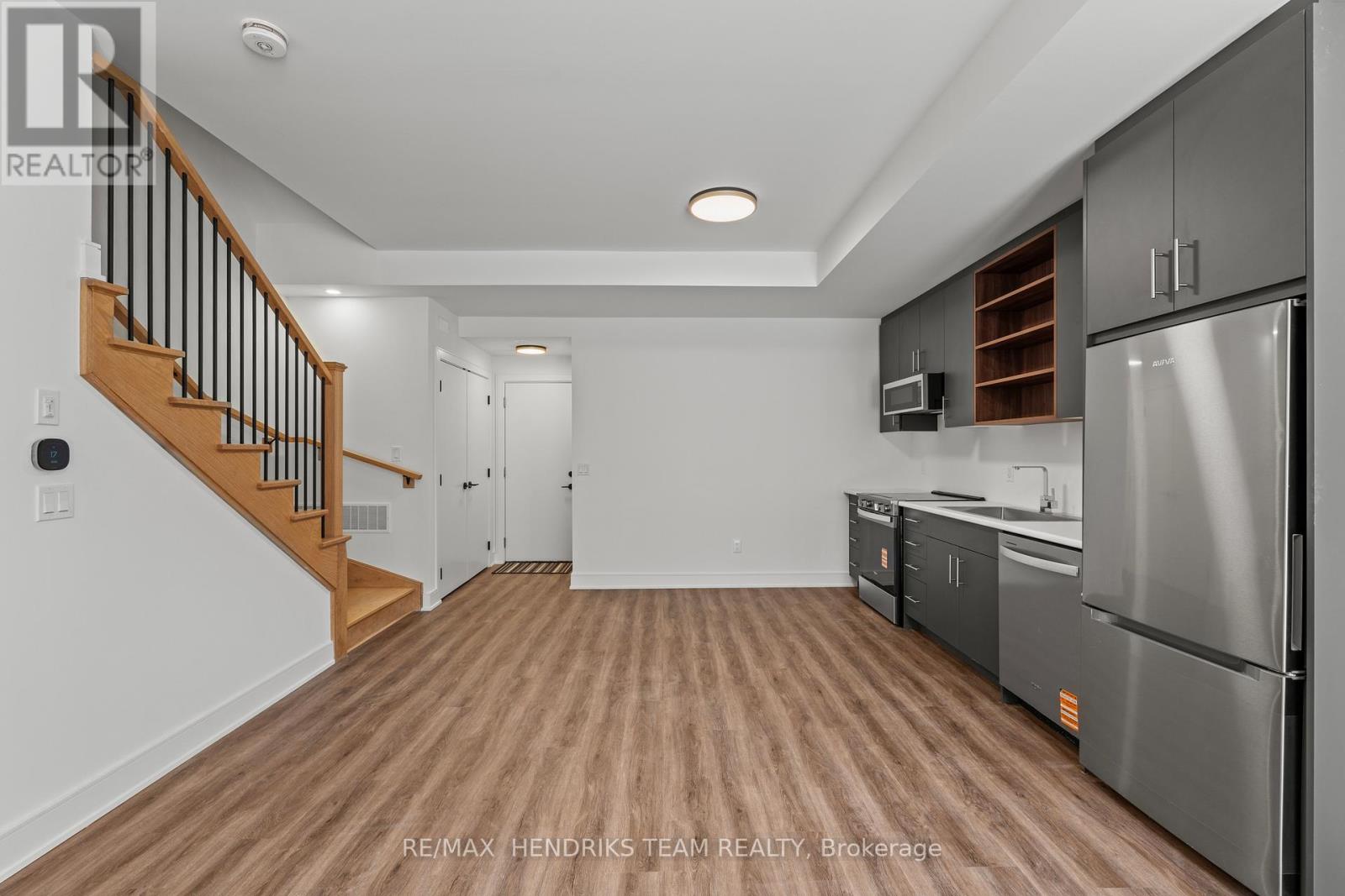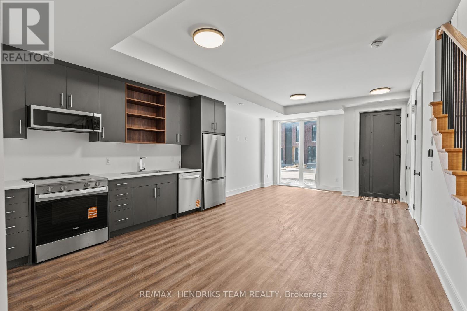 Brand new, never-lived-in condo townhome available for lease in a modern, low-maintenance community. The main floor welcomes you with a bright open-concept layout featuring a contemporary kitchen with stainless steel appliances, spacious living area, convenient 2-piece bathroom, multiple closets for storage, and attached garage access for everyday convenience. Upstairs offers stacked laundry just outside the bedroom, plus a versatile den ideal for a home office or study space. The bedroom includes two additional closets and a private ensuite with a tub/ shower feature, creating a comfortable and functional retreat. Enjoy easy access to highways and public transit, with shopping and everyday amenities just minutes away including The Pen Centre, Walmart, Zehrs and more. Perfect for tenants seeking modern, convenient living. (id:64974)