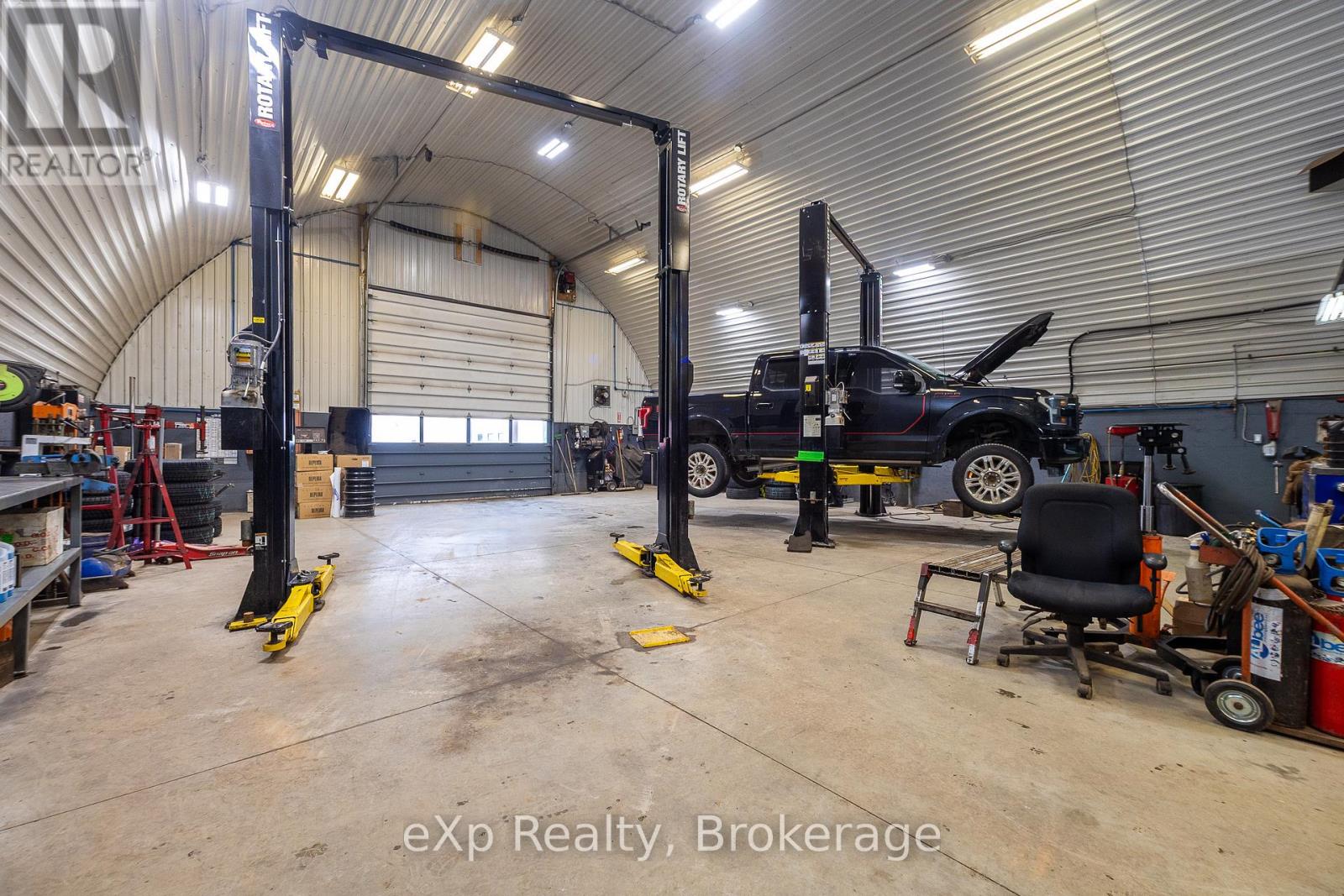 Exceptional Commercial Opportunity with Highway 6 Exposure in Chatsworth. Position your business for success at 160 Garafraxa Street, a versatile commercial property zoned C1-145, offering excellent flexibility for a wide range of business uses. With two access points-one from Alexandra Avenue and another directly off busy Highway 6-this property provides outstanding visibility and convenient traffic flow in a high-exposure location just 15 minutes south of Owen Sound. The property features two separate buildings, well-suited for owner-operators, investors, or businesses requiring multi-use space. The front building measures approximately 71'6" x 37'9" and includes a second-floor boardroom and office, creating professional and functional workspace. Three garage doors provide excellent access-serving the rear of the front building and the side of the second building-ideal for deliveries, service-based operations, or light industrial use. The rear building offers approximately 62'11" x 28'1", plus an attached storage addition (approx. 11'6" x 10'11"), allowing for operational flexibility and storage. With two bathrooms, strong highway exposure, flexible zoning, and a layout that supports many business models, this property presents an outstanding opportunity for entrepreneurs ready to bring their vision to life. Garage Door Sizes: Front Building Back Door is approx. 13.6'w x 14'h and the Back Building Side Doors are approx. 13'w x 10'h and 10'w x 10'h. (id:64974)