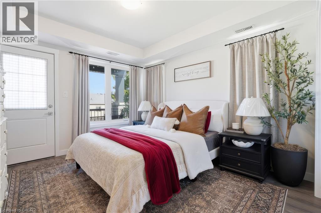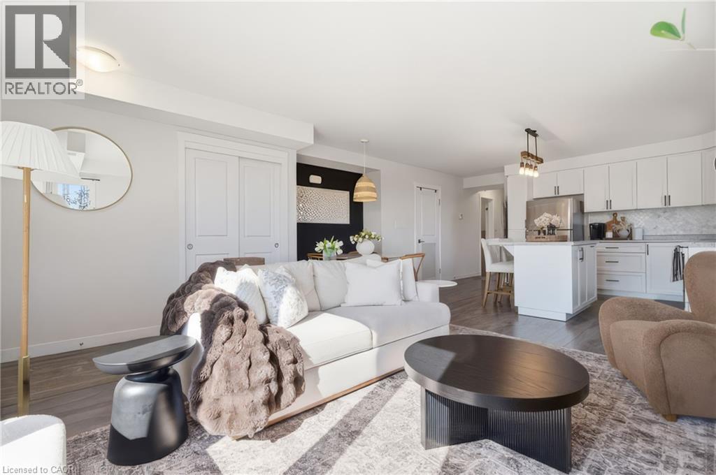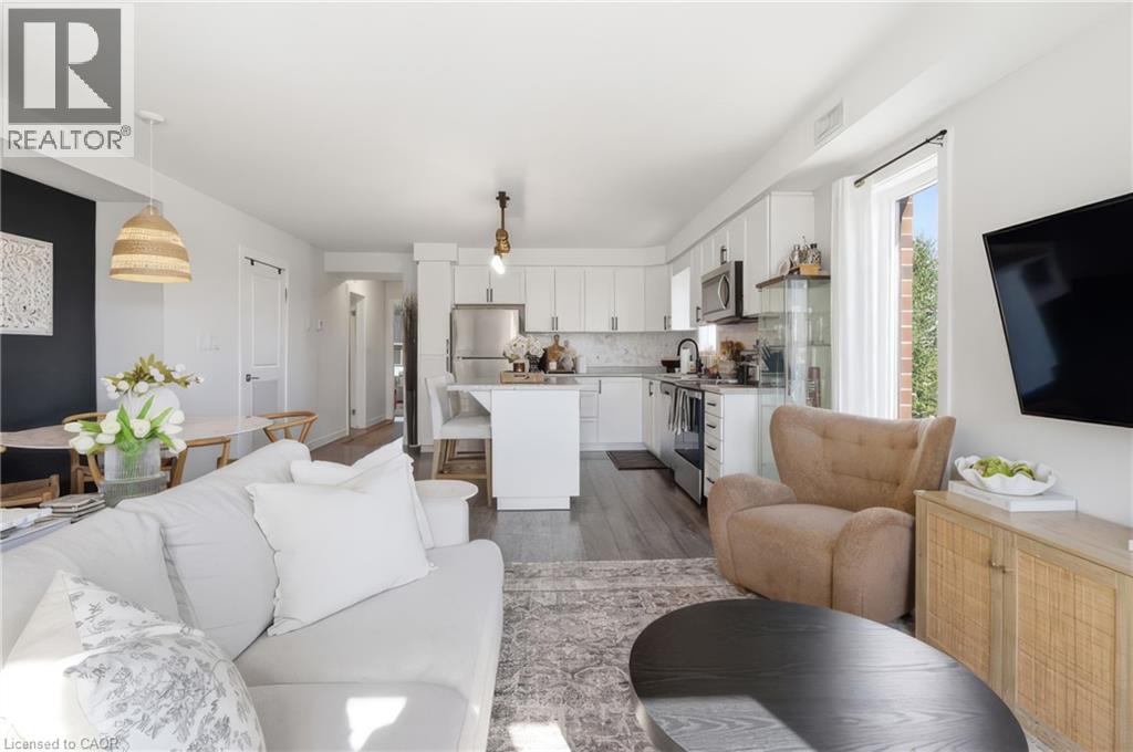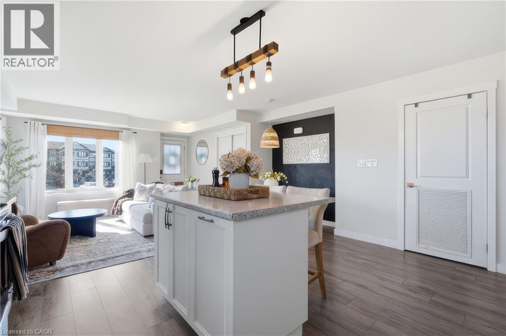 Welcome to stylish living in one of Kitchener's most desirable Huron communities. This nearly new 2-bedroom, 2 full bathroom condo townhome offers the perfect blend of modern design and everyday comfort. Step inside to a bright, open-concept layout where natural light fills the spacious living and dining area, creating an inviting space to relax or entertain. The kitchen is complete with stainless steel appliances, lots of cabinet space, and an island with breakfast bar. Enjoy carpet free living throughout, with quality laminate flooring in the main areas and bedrooms, complemented by stylish tiles in both bathrooms. The primary bedroom offers a private retreat with a 3 piece ensuite and direct access to a generous covered balcony-perfect for morning coffee or unwinding at the end of the day. A second bedroom and full bath provides flexible space for guests, family, or a home office. Additional highlights include a full-size in-suite laundry, one dedicated parking space, and ample visitor parking. Located just steps from parks, trails, and green space, including RBJ Schlegel Park and Huron Natural Area. Close to schools, shopping, and Conestoga College, this home also offers quick access to Highways 7/8 and 401 for easy commuting. (id:64974)