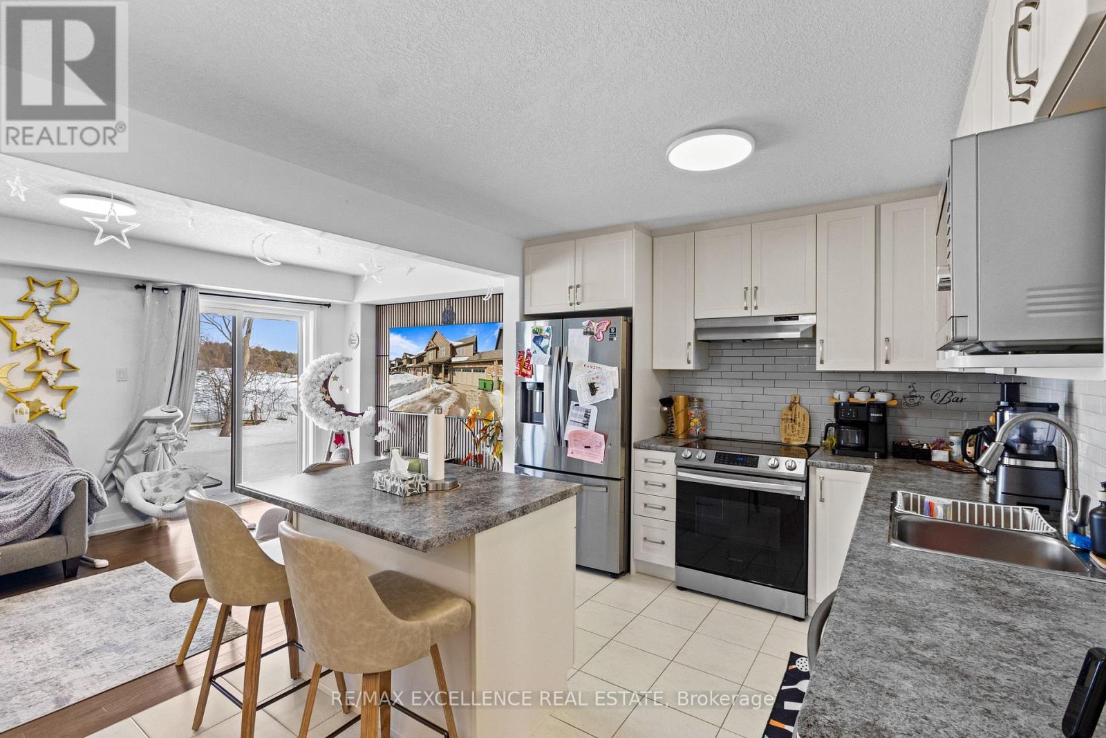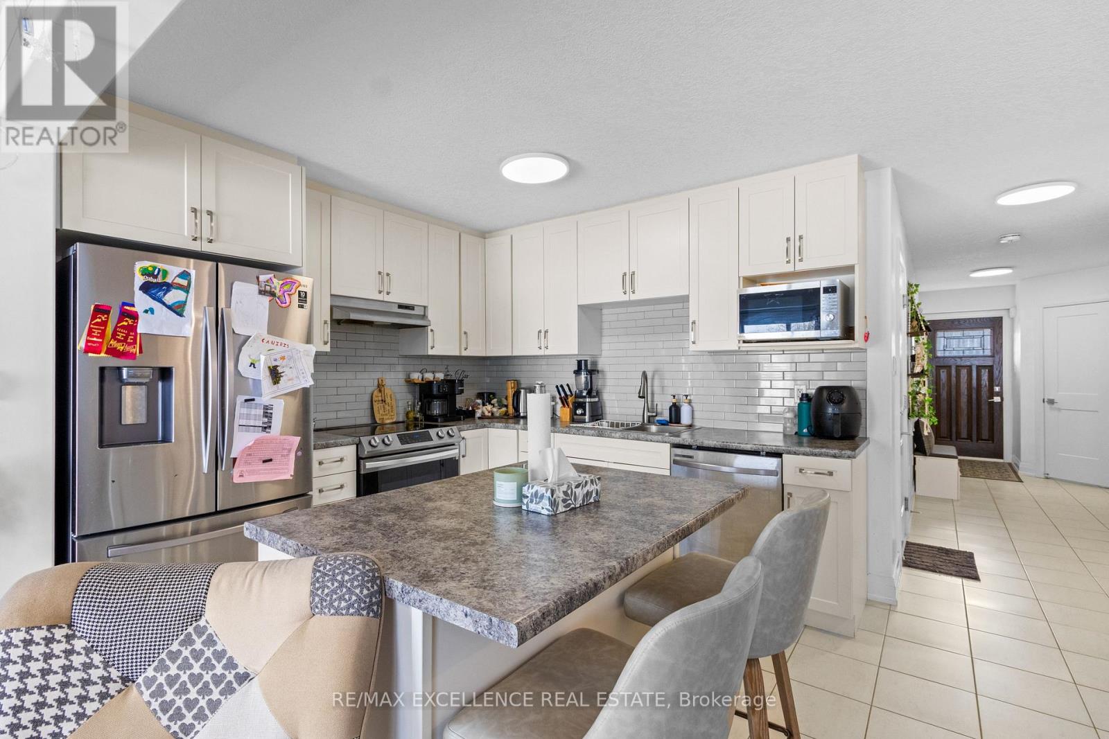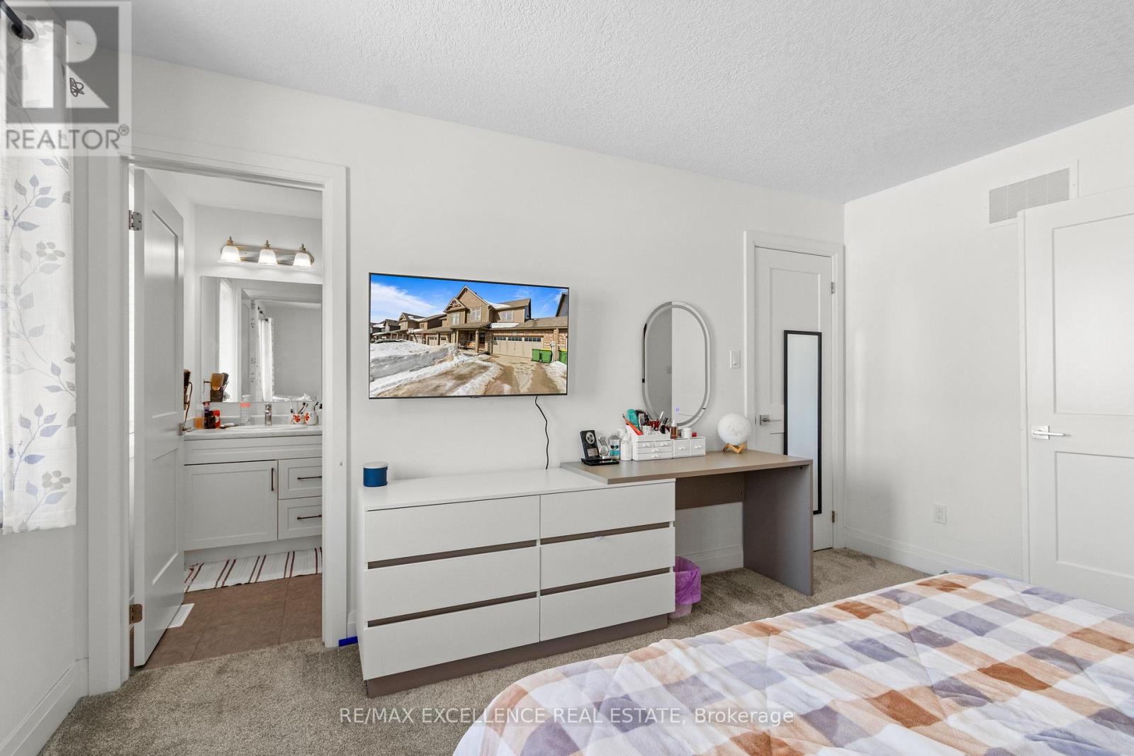 Welcome to 160 Stonebrook Way , a Beautiful upgraded Townhome offering modern comfort and functionality. Spacious entry with closet and powder room leads to an open-concept kitchen anddining area with tile flooring. Bright living room with hardwood floors and walk-out to a new deck (2023). The second floor features a generous primary suite with double doors, walk-incloset, and 3-piece ensuite, plus two additional bedrooms, a full bathroom, and convenient second-floor laundry. Finished basement with recreation room, 3-piece bath, multiple storagerooms, and a freezer. Additional upgrades include smart appliances, upgraded lighting, water softener, sound proof TV wall, security system, and automatic garage door opener. Durable brick exterior, paved driveway, and remaining Tarion warranty provide worry-free living. (id:64974)