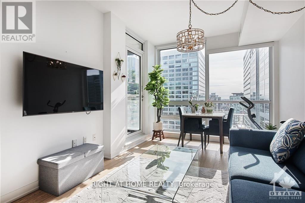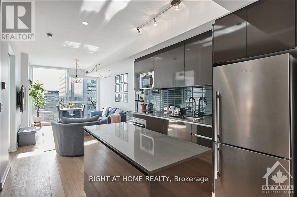WOW! 1 bedroom + den in one of the most desirable condo buildings in Ottawa! High-end and modern finishes. Open concept living with floor-to-ceiling windows, lots of natural sunlight throughout. The kitchen has quartz countertops and built-in appliances. Minimalist design at its best. Steps from shops, restaurants, Parliament Hill, Rideau Centre, and public transit. The Slater offers lots of amenities, including a concierge, a large outdoor terrace with a whirlpool, an exercise center, a billiards room, a party room, a dining room, storage for the unit, and a movie theatre room. 16th floor with incredible views. The property is tenant occupied. A minimum of 24 hours' notice is required for all showings. (id:64974)