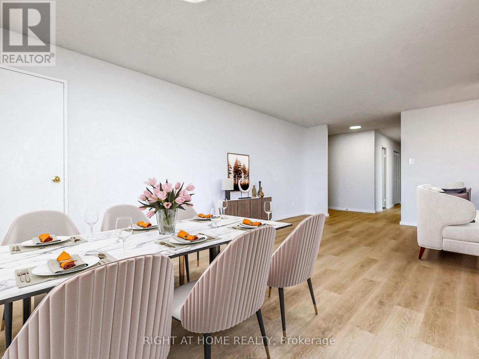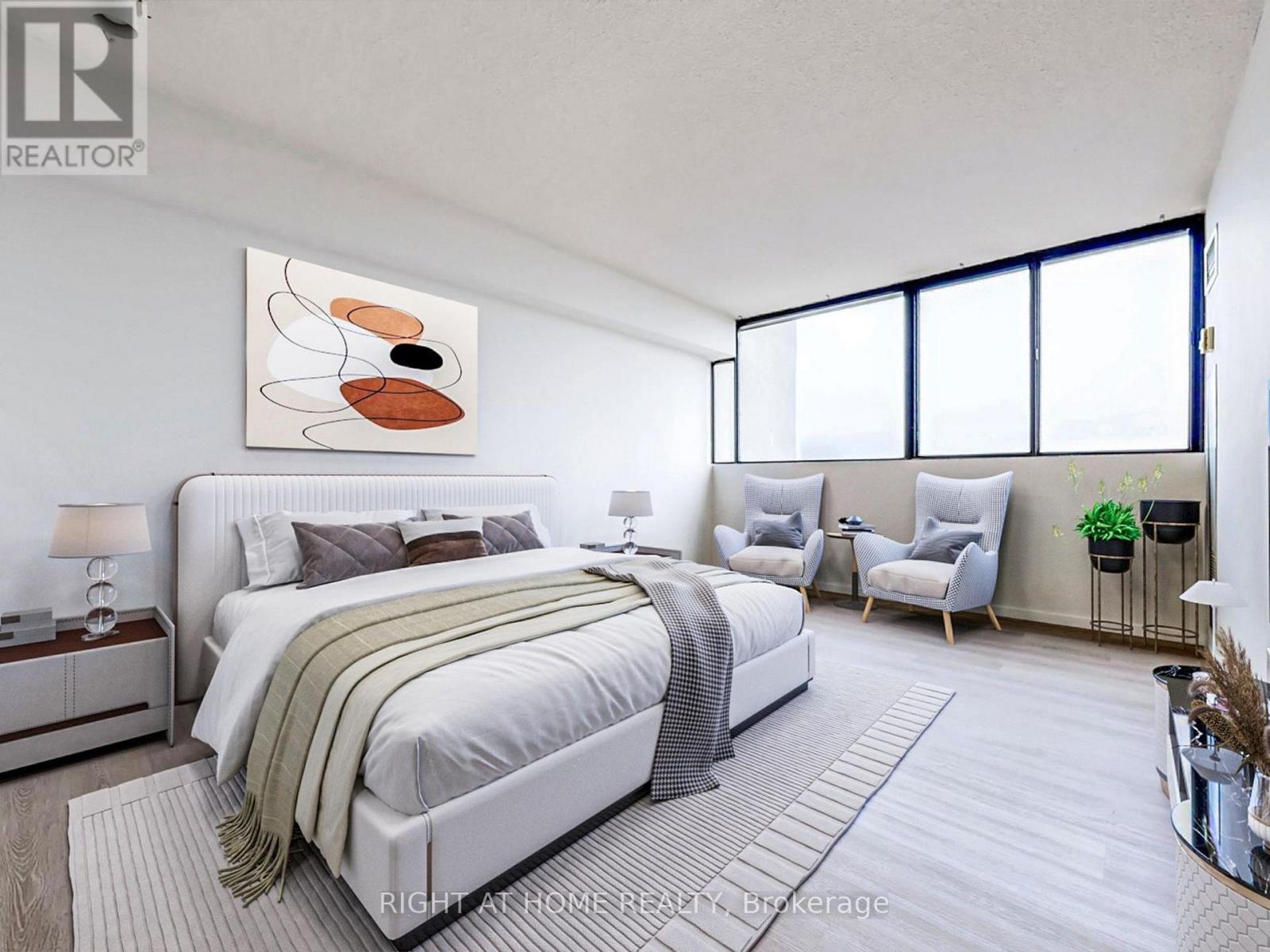 Welcome to this bright and spacious 3+1 bedroom / 2-bath corner suite offering 1,300 sq. ft. of well-designed living space with stunning unobstructed views to the south, east and north, including beautiful sunsets and glimpses of the downtown skyline. Featuring a functional and open-concept layout, the suite offers a generous living, dining and solarium area filled with natural light. Large kitchen with breakfast area surrounded by large windows. The primary bedroom includes a walk-in closet and a 4-piece ensuite. Ensuite laundry and plenty of storage throughout add to the convenience. Maintenance fees cover all utilities and cable TV. Enjoy a full range of amenities including a gym, outdoor pool, concierge, party/meeting rooms, games room and sauna. Ideally located just steps to G. Ross Lord Park, walking trails, sports fields and TTC at your doorstep with direct access to Finch Station. Located within top-rated school catchments for all grade levels, including Northview Heights Secondary School (Grades 9-12), ÉS Étienne-Brûlé (Grades 7-12), Fisherville Senior Public School (Grades 7-8), Claude Watson School for the Arts (Grades 4-8) and both Rockford Public School and ÉÉ Paul-Demers (Grades PK-6). *Listing contains virtually staged photos* (id:64974)