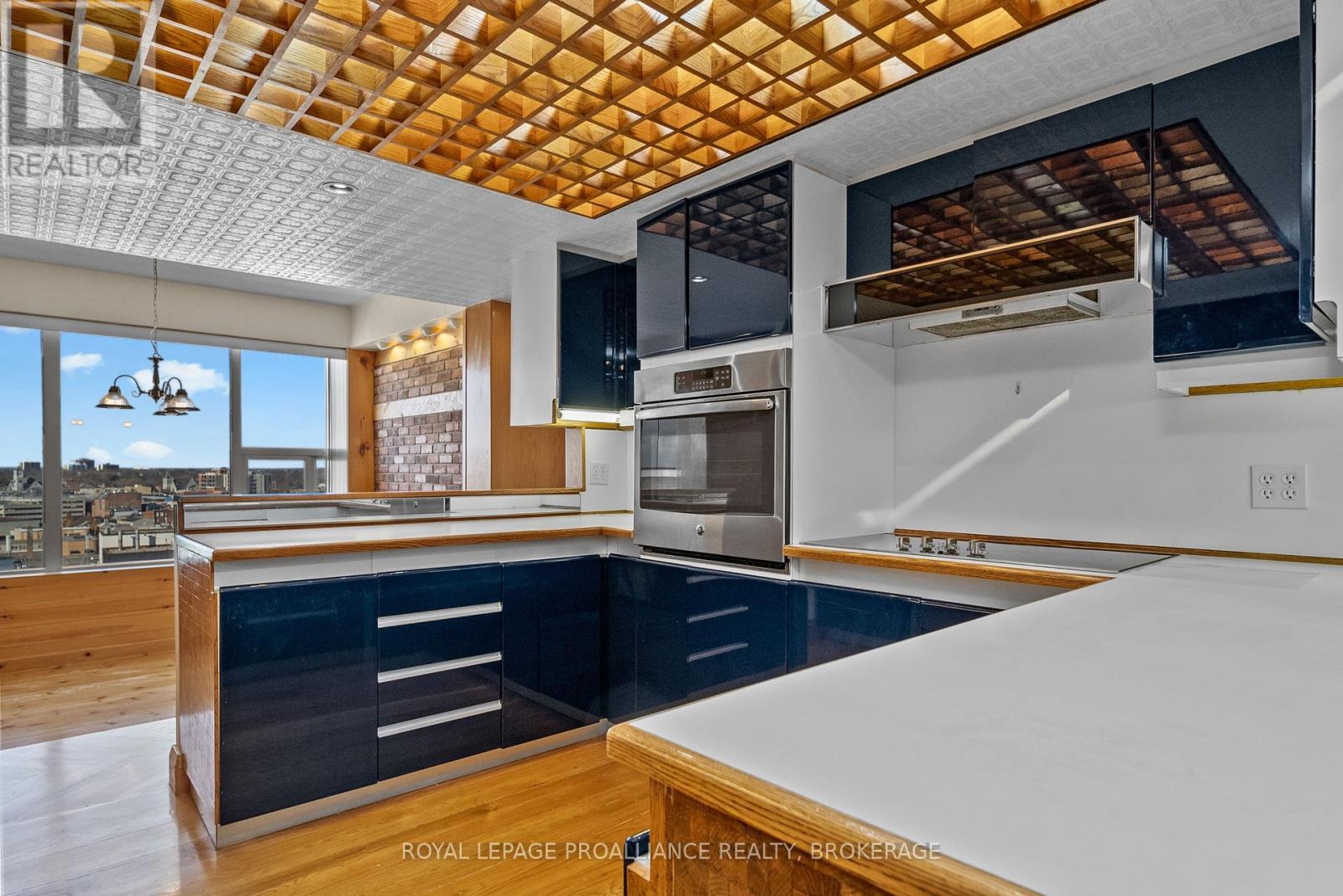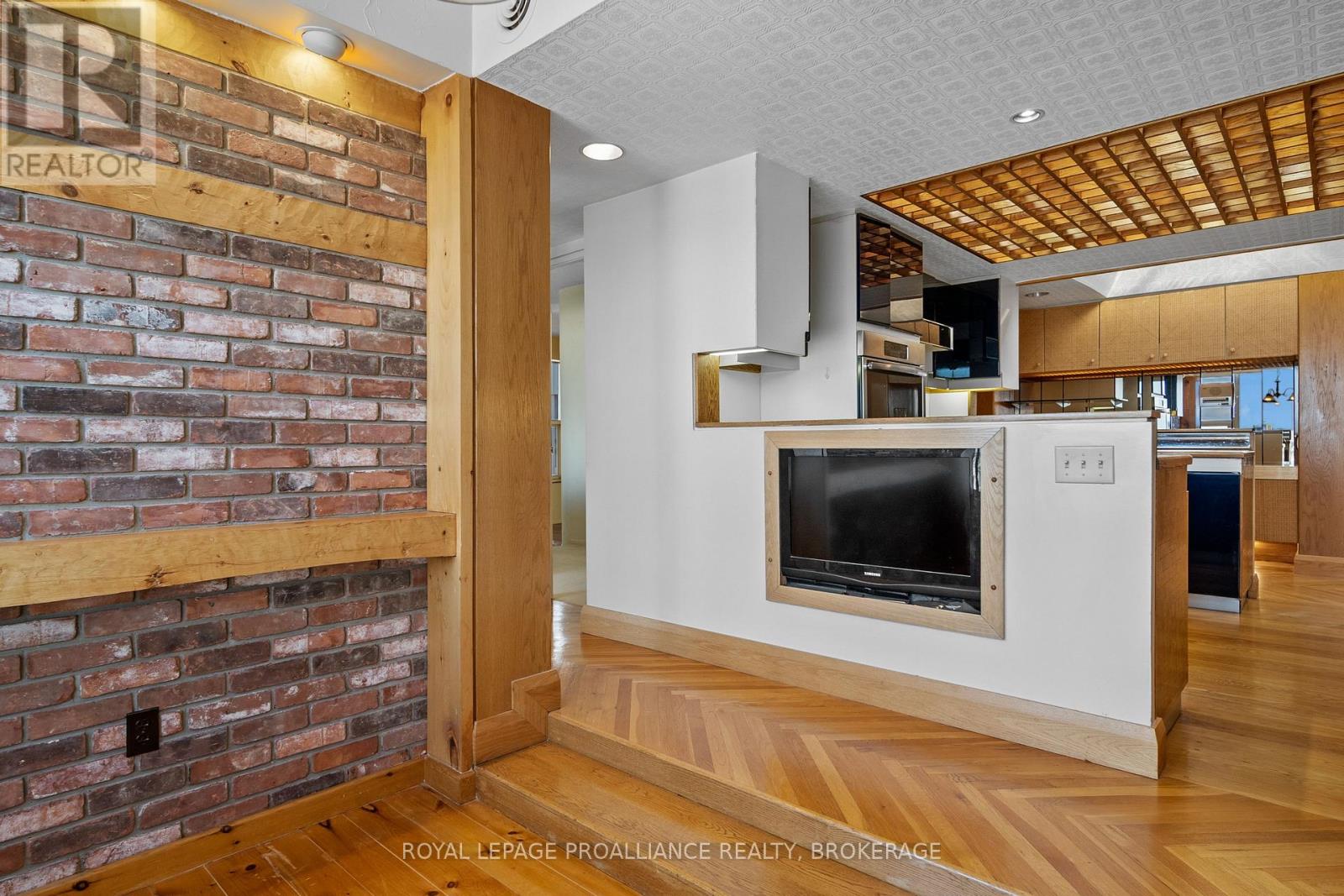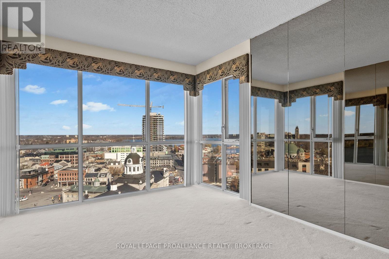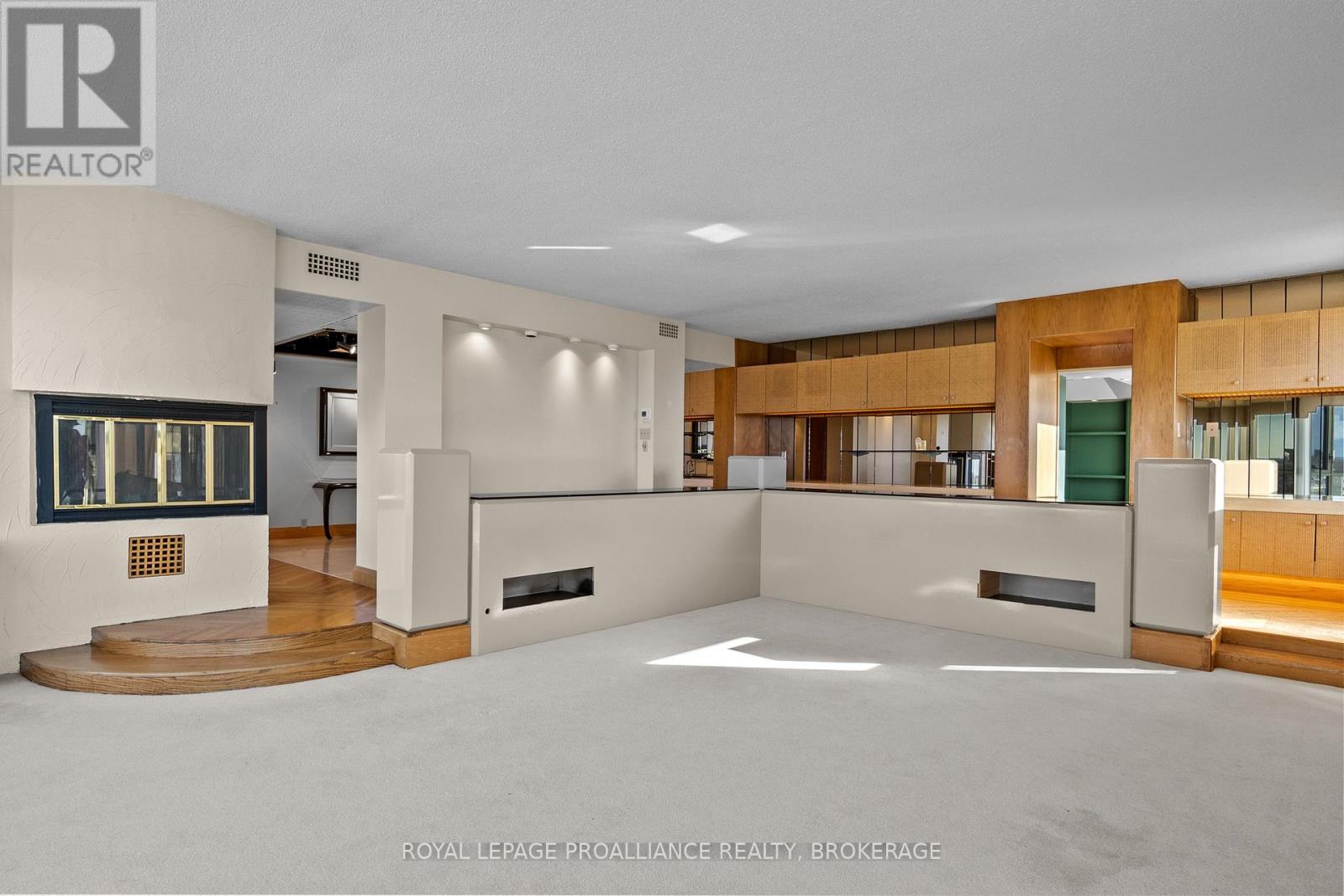 Nestled atop one of the most sought-after locations in the city, this extraordinary 3-bedroom, 3-bathroom Harbour Place penthouse offers an unparalleled living experience. Boasting sweeping, panoramic views of downtown Kingston and Lake Ontario, this meticulously designed residence spans over 3,500 square feet of luxurious living space. The seamless flow of the interior is enhanced by gleaming hardwood floors, large windows, and multiple fireplaces, adding warmth and charm throughout. Truly an oasis in the sky, the sunken living room and dining area complete with a teppanyaki grill are perfect for both intimate gatherings and large-scale entertaining. The primary bedroom is a true retreat, featuring expansive views, a walk-in closet, an office, and your own private gym/spa with a hot tub and sauna. A second bedroom with its own full bathroom provides privacy and comfort for family or guests. Ensuring a lifestyle of ultimate convenience and luxury, this building offers a wide range of amenities, including underground and visitor parking, a car wash, community BBQ, exercise room, library, party room, sauna, and indoor pool. Just minutes from upscale dining, high-end shopping, cultural attractions, and everything the city has to offer, this penthouse is the epitome of luxury living. With its prime location, stunning water views, and unmatched elegance, its a one-of-a-kind property that you wont want to miss. (id:64974)