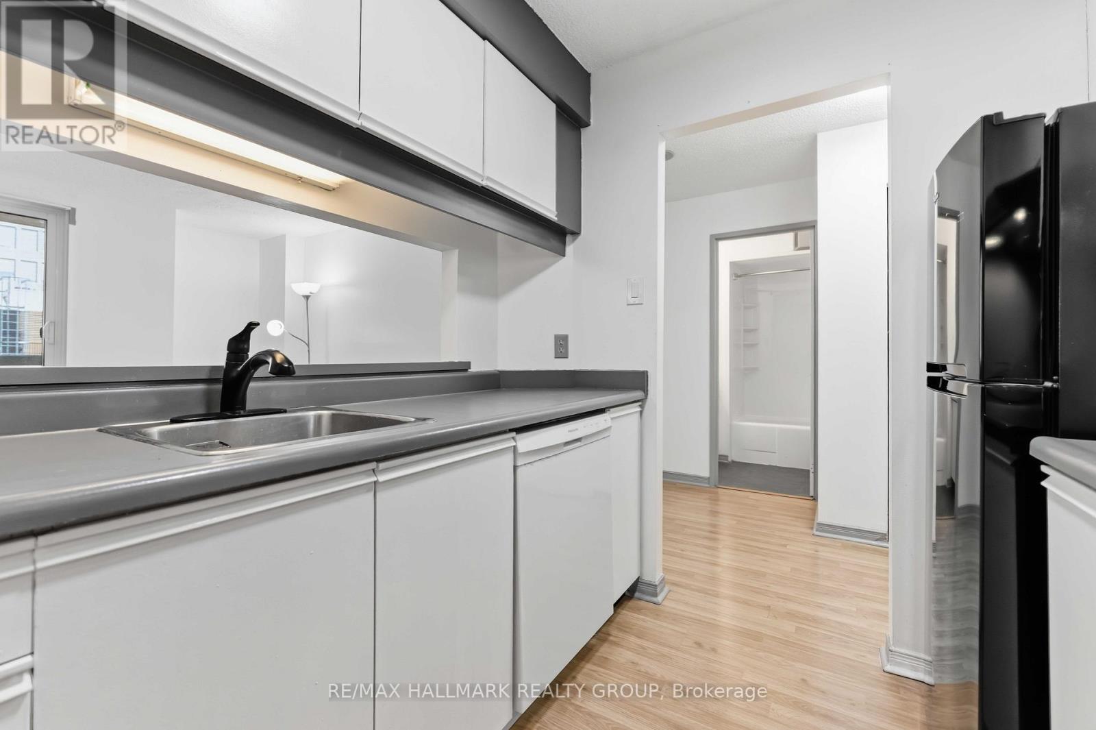 Welcome to Kent Towers, where downtown convenience meets ultimate comfort! This bright, move-in-ready 1-bedroom condo is perfect for young professionals or savvy investors. Enjoy a functional, spacious kitchen with generous cabinetry. Benefit from the ultimate convenience of a dedicated in-unit laundry room with extra storage, a newer "Bathfitter" tub system, and laminate flooring throughout. This unit includes a personal storage locker and a sought-after underground parking spot. Kent Towers is a premier, professionally managed building featuring 24/7 front-desk security, an on-site management office, and resort-style amenities including an indoor pool, hot tub, sauna, fitness center, and library. Boasting a walk-score that defines "walk-to-work" living, you are steps from Parliament Hill, the LRT, Farm Boy, and the Parkway. Immediate possession available-see it and buy it! some photos contains Virtual staging. (id:64974)