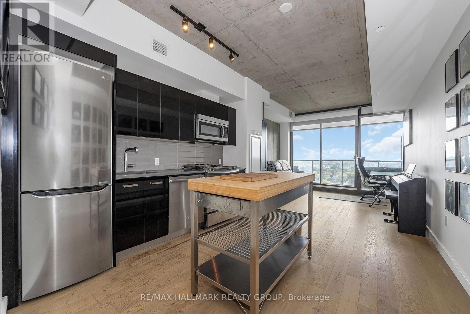 Vacant and ready for quick possession! Welcome to unit 1602 at 224 Lyon Street North a modern open-concept condo in the heart of downtown Ottawa. This stylish unit features a bright, loft-style living/dining room that opens onto your private balcony, complete with a gas BBQ hookup and sweeping 16th-floor views. Enjoy a functional kitchen with a convenient island and an upgraded fridge (2018). The spa-like bathroom offers a relaxing rain showerhead, while in-unit laundry adds everyday convenience.Large windows flood the space with natural light, creating an inviting atmosphere thats perfect for a student, young professional, or anyone looking to enjoy all that downtown Ottawa has to offer. The secure building provides excellent amenities including concierge service, party/meeting room, bike storage, visitor parking, security system, and allowance for BBQs.12-hour irrevocable on all offers. Dont miss the opportunity to own a sleek, move-in-ready home just steps from restaurants, shops, transit, and everything the core has to offer. (id:64974)