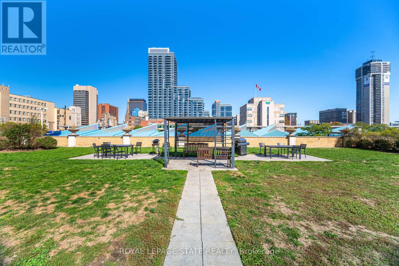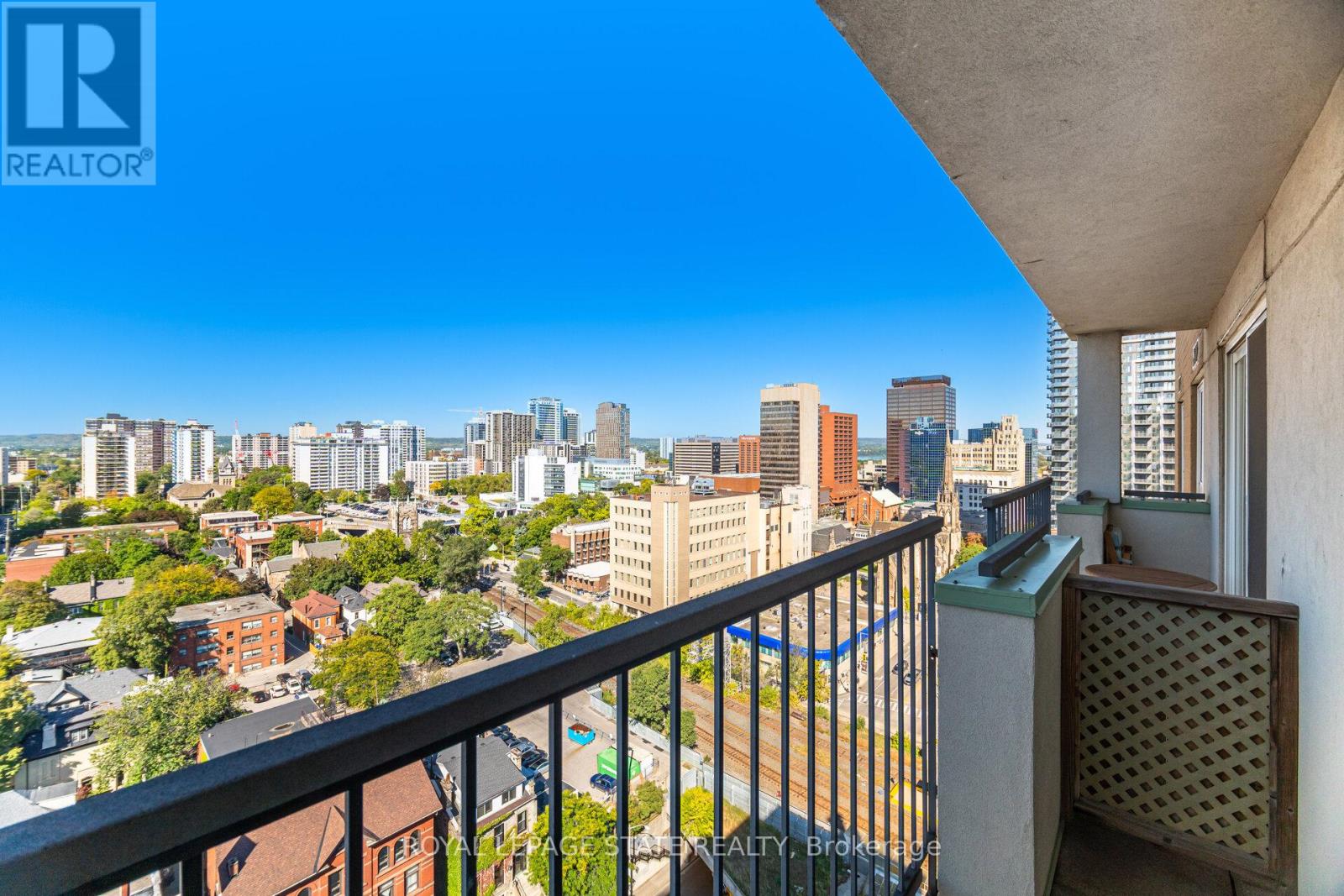 Your search is over! Check out Penthouse 1605, 135 James Street South - a rare top-floor gem in the iconic Chateau Royale. If you've been searching for urban sophistication with panoramic views, concierge service, and all the conveniences of downtown Hamilton, this is your must-see home. This penthouse unit is on the15th floor, granting you sweeping, unobstructed vistas over Hamilton's skyline, the escarpment, and beyond. Floor-to-ceiling windows bathe the open-concept living areas in natural light, while a cozy balcony lets you drink in sunsets and city lights from the comfort of your own domain. Inside, expect generous living and dining space, a functional kitchen suited for entertaining, and serene primary quarters with ample closet space. The layout flows intuitively into the various spaces. Owning in Chateau Royale means being part of one of Hamilton's most sought-after condominium addresses. Developed in 2005, the building comprises 197 units over 15 storeys, with maintenance fees that include heat, water, common elements and building insurance. Among the amenities you'll enjoy: a 24-hour concierge and secure entry, a fully equipped fitness centre (free weights, cardio machines, universal gym) and the building's generous landscaped terrace gardens (over 20,000 sq. ft. atop the parking podium) including a dog-designated area at the back of the building. Location is everything - and Chateau Royale nails it. With a Walk Score nearing 98-99, you are steps from St. Joseph's Hospital, Hamilton GO, transit, top restaurants, galleries, shops, Locke Street, the Art Crawl on James North, and the energy of the downtown core, As a penthouse, 1605 features privacy and prestige not often available in this building and the kind of wow factor every visitor will remember. High floors also provide better cross-ventilation, quieter environs, and an elevated perspective. Don't miss this unique chance to own one of Chateau Royale's most dazzling residences. (id:64974)