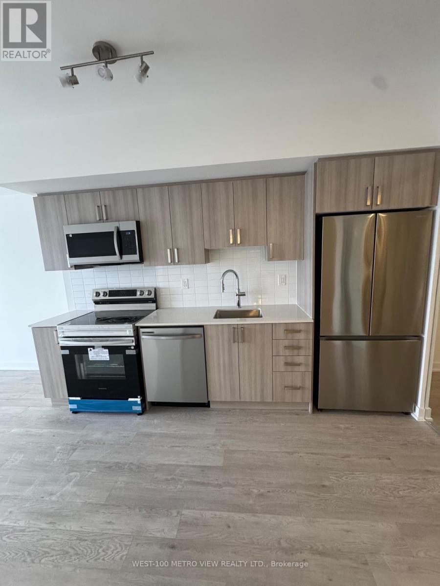 Luxury 2-bedroom, 1-bath condo, functional layout with open-concept kitchen featuring quartz counters, stainless steel appliances, and a breakfast bar overlooking the bright living/dining area. Steps to the GO station with quick highway access, plus excellent building amenities including concierge, party room, rooftop terrace with BBQs, and pool. (id:64974)