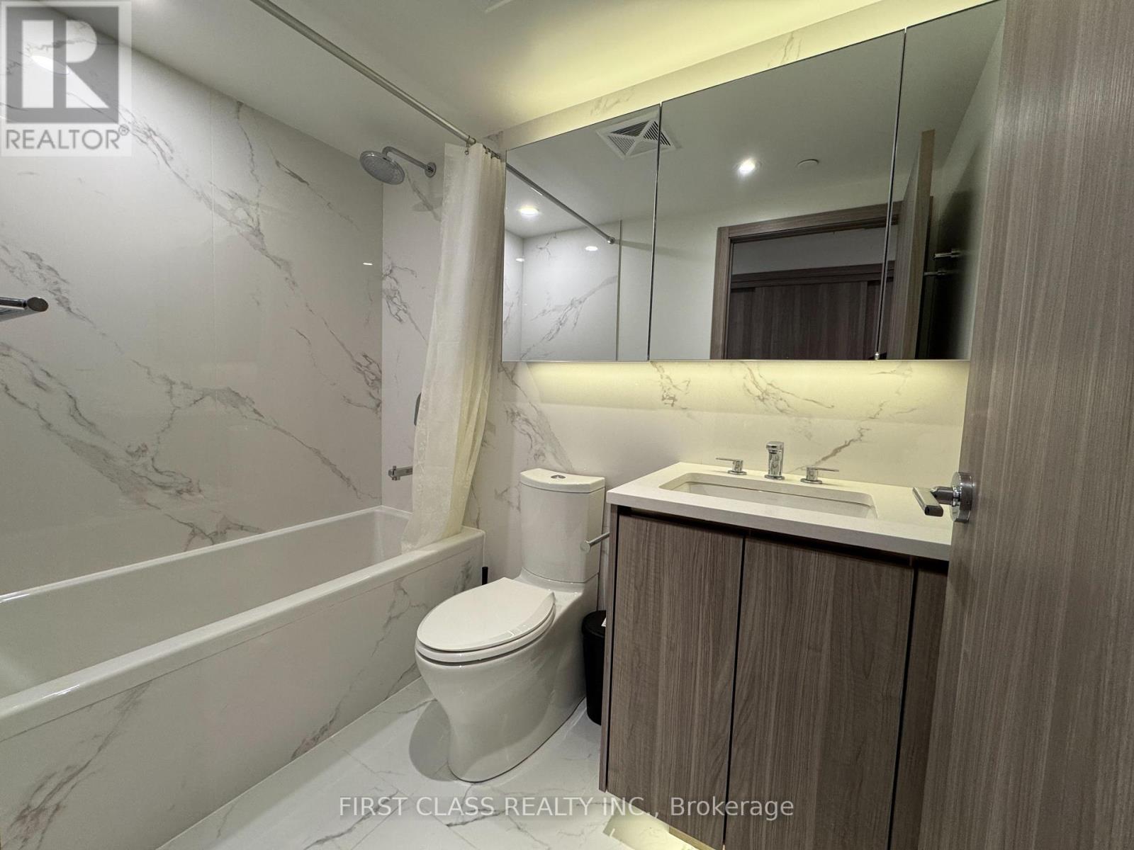 Nestled within the one-year-old luxury building of the Concord Park Place community, this bright 755 sq ft suite, complemented by a 138 sq ft balcony, is flooded with natural light from its desirable south-west exposure. The residence itself is beautifully appointed with 9-ft ceilings, floor-to-ceiling windows, laminate flooring, and premium finishes, including a modern kitchen with ample cabinetry, Quartz countertops, and built-in Miele appliances for the cooking enthusiast, as well as a spa-like bath with large porcelain tiles. Step outside to your private composite wood deck balcony, complete with radiant ceiling heaters and a captivating view of the Toronto skyline. This exclusive lifestyle is further enhanced by access to over 80,000 sq ft of resort-style amenities, including a tennis/basketball court, swimming pool, sauna, formal ballroom, and even a touchless car wash. Its prime location places you steps from a brand-new community centre and park, mere minutes from Bessarion & Leslie subway stations, Go Train, Hwys 401/404, and the shopping at Bayview Village & Fairview Mall. (id:64974)