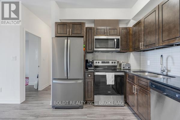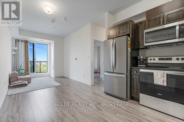 |||||| Move-in ready. A rare, penthouse-level corner suite in one of Uptown Waterloos most walkable communities. Minutes from Wilfrid Laurier and University of Waterloo, Starbucks, Gino's Pizza (open till 4 a.m.), Kabob Hut, Hungry Ninja, Masala Bay and more. 5 min to Conestoga Mall, T&T, No Frills, Walmart. 10 min to St. Jacobs Market and GO Train station. |||||| The 3-yearold building features Security Guards onsite with 24-hr surveillance systems, a Convenience store open past midnight, and a Bus Stop right by the entrance. |||||| Pristine condition; used only as a secondary residence and with 616 sq ft of sun-filled living space, this condo retreat offers a smart layout and delightful sunset views. The unit offers exceptional privacy, unobstructed views of the city skyline and surrounding greenery. |||||| Spacious entry hallway with a mirror, a stylish open-concept living area, and a roomy walk-in closet (nearly the size of a small den) that boasts a lighting sensor and built-in ventilation. 9-foot ceilings, quartz countertops, laminate flooring throughout, a full set of appliances. The bathroom features a non-corrosive, non-mold soaking tub with shelving and a ventilation timer. |||||| 1 exclusive parking spot (indoor garage) and 1 storage locker. Amenities include a Gym, 2 separate Sauna rooms, Yoga studio, Patio with BBQ, Party Room, Bike storage, EV chargers, and Communauto Carshare. |||||| (id:64974)