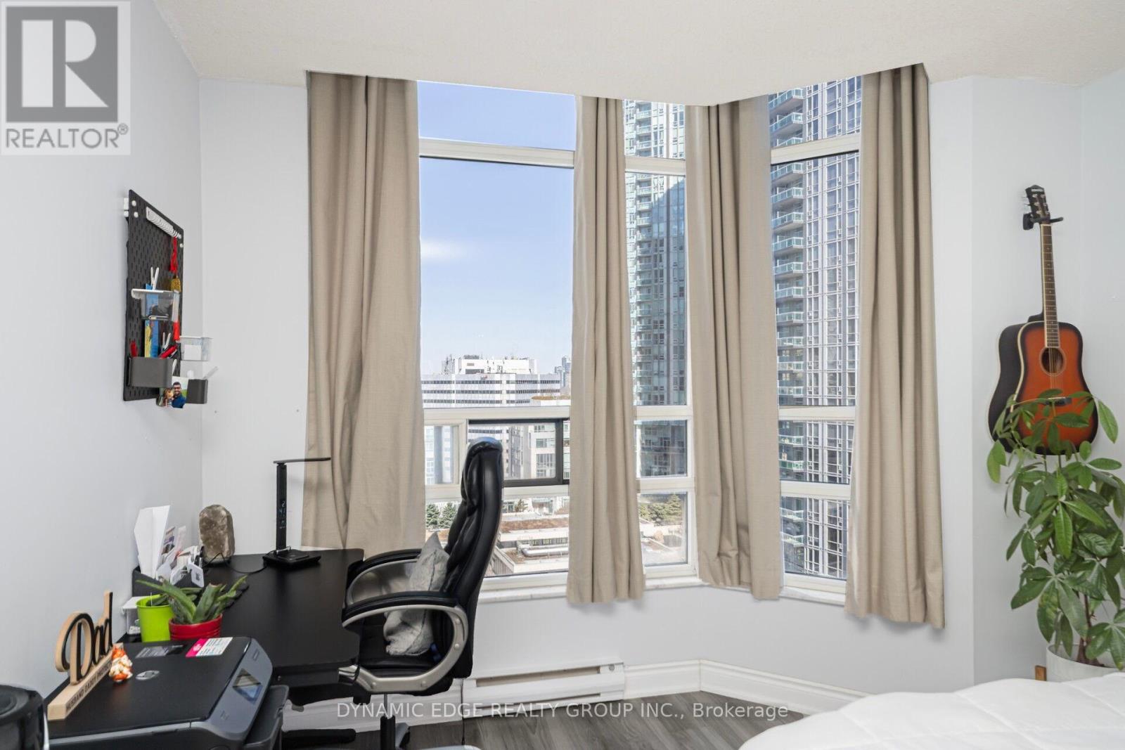 Penthouse 1607 is a rare top-floor offering in a premium building in the heart of downtown Mississauga. This exceptionally spacious 2 bedroom + den, 2 bath suite features 10 ft ceilings and oversized windows that flood the home with natural light, creating an airy, open atmosphere ideal for everyday living and entertaining. The kitchen is fitted with new stainless steel appliances and the unit includes a new washer and dryer. Storage is exceptional with custom cabinetry in all closets, highlighted by a bespoke walk-in closet in the primary suite. The large primary bedroom includes an office nook and a private 4-piece ensuite. A separate den provides flexible space for a home office, study, or guest area. Includes 2 underground parking spaces and 1 locker. Building amenities are top class and include an indoor pool, tennis court, billiard room, gym, party room, sauna, and 24-hour security. Located minutes to Square One, Celebration Square, transit, parks, restaurants, and major highways-this penthouse combines generous space, thoughtful upgrades, and downtown convenience in a well-managed community. (id:64974)