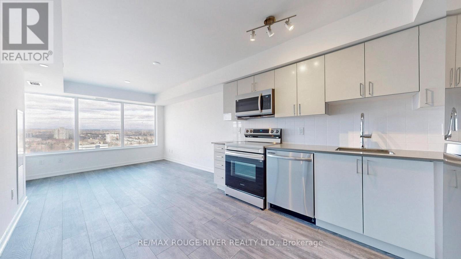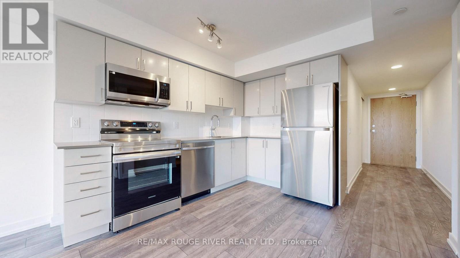Opportunity Is Knocking For You To Live In Tower Two In The Heart Of Pickering | Brand New One Bedroom, One Bathroom Unit With One Parking AND Locker | Open Concept Living and Dining With Large Window And A Walk Out To A Spacious Balcony- Amazing Views Of The City, Perfect Spot For Morning Coffee and Sunsets | Modern Kitchen With Stainless Steel Appliances, Custom Backsplash, Ample Cabinets | Unit Lets In Great Natural Light | Laminate Floors Throughout | Great Building Amenities Including Rooftop Deck, Gym, Pool, and Concierge | If The Unit Itself Does Not Win You over, The Location Will - Minutes To GO Station, Highway 401, Pickering Town Centre, Casino, Lake. (id:64974)