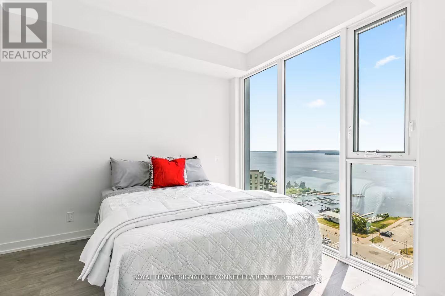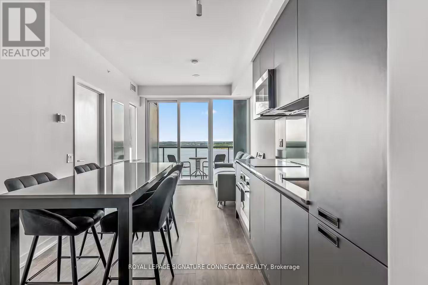 Welcome to downtown Barrie living at its finest. This stylish 1+1 bedroom, 2-bath suite comes fully furnished and move-in ready! Includes a bright open-concept layout with tasteful furnishings, a sleek full-size kitchen with stainless steel appliances, and a walk-out to a private balcony. The spacious primary bedroom features a queen bed and ensuite bath, while the versatile den provides a comfortable guest space or home office with a second full bath nearby. Designed for both comfort and convenience, the suite includes in-unit laundry, Smart TV, high-speed Wi-Fi, 1 locker and 1 underground parking space. Perfectly located just minutes from Barrie's waterfront, trails, restaurants, and boutique shops-enjoy a turnkey lifestyle where urban convenience meets relaxed lakeside living. (id:64974)