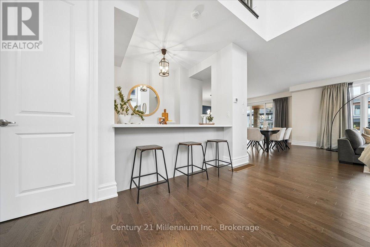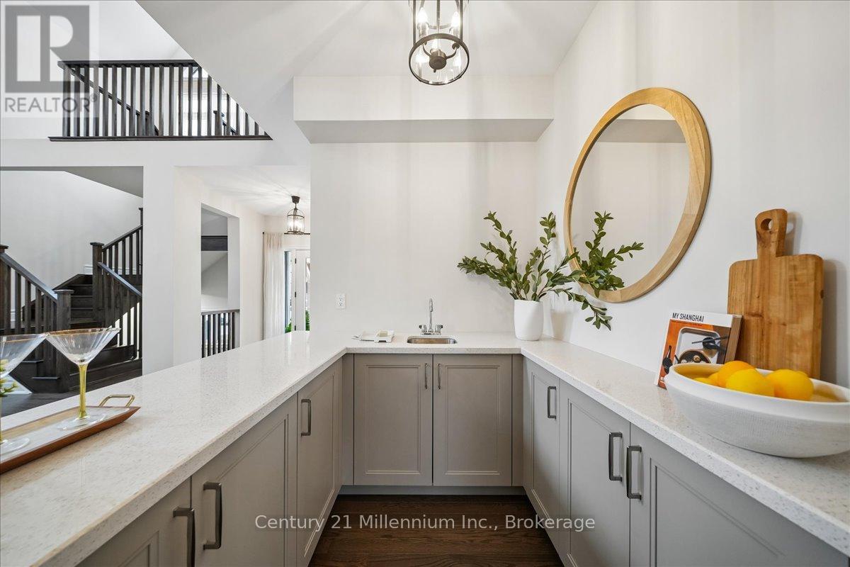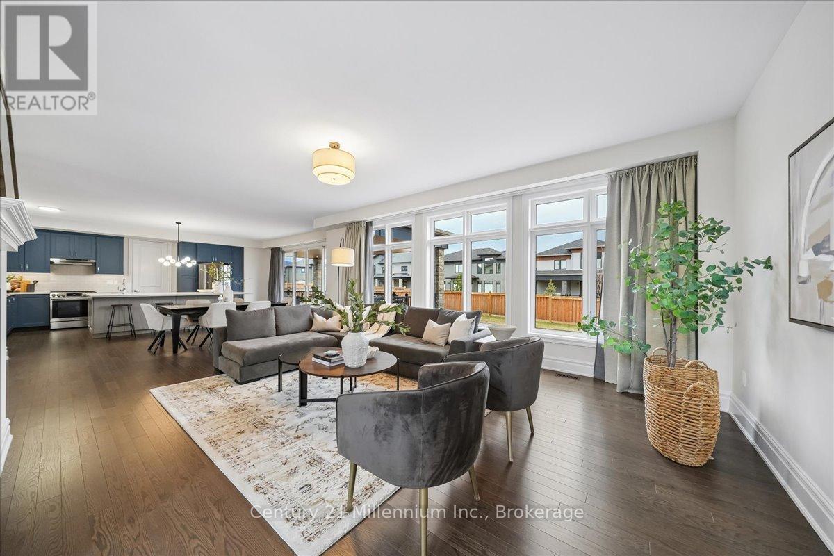 Welcome to 161 Springside, where refined living meets effortless sophistication. Here, your days begin differently. Coffee in a quiet, sun-filled kitchen with custom breakfast bar instead of a rushed commute. A calming walk on the surrounding trail system before your first work call. Fresh air replaces traffic, and focus comes easier. This is a home designed for the life you've built - and the one you want next. Friends and family gather around your bespoke bar for coffee or cocktails. Evenings unfold effortlessly, moving from the chef-inspired kitchen to a conversation on either side of the double-sided fireplace, and out to the covered loggia for a nightcap under the stars. This seamless indoor-outdoor experience invites relaxed outdoor dining and après-adventure evenings. Upstairs, the generous primary suite becomes your reset. A private, refined space that allows you to recharge fully, with an oversized shower, his-and her sinks and vanities. When guests inevitably stay longer than planned, they have their own spaces, with three additional bedrooms and two full baths upstairs, and two additional bedrooms, a full bath and huge great room downstairs. Weekends are no longer something you escape to - here, they are integrated into your everyday. A morning ski before work. A midweek round of golf. A spontaneous hike. As part of the Blue Mountain Village Association, owners enjoy exclusive privileges including private shuttle service, preferred resort perks, and member discounts. Within minutes from this spectacular home, you'll find world-class skiing, fine dining, spas, hiking and cycling trails, and sandy beaches. This isn't about leaving the city behind. It's about upgrading the way you live. (id:64974)