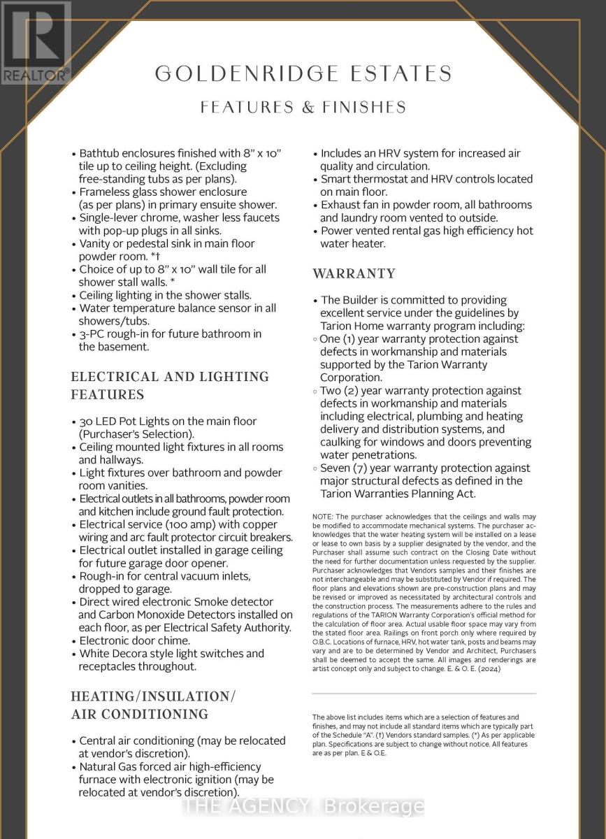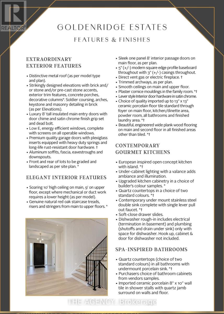 Introducing Goldenridge Estates, an exclusive luxury enclave by Forest Meadows Developments, a Tarion registered builder known for crafting high-quality custom residences. Located in one of Pickering's most desirable neighbourhoods, this boutique development offers a limited release of only three 43 ft estate lots, part of a collection of just seven homes within the community. Homes on the 43 ft lots are thoughtfully designed for modern family living with elegant layouts and refined architectural finishes, with floorplans starting at approximately 2,800 sq.ft. Features include European-inspired chef kitchens with large centre islands, quartz countertops, walk-in pantries and custom cabinetry, open concept great rooms ideal for entertaining, smooth ceilings throughout, engineered wide plank hardwood flooring, and natural red oak staircases. Bedrooms feature walk-in closets with ensuite or semi-ensuite bathrooms, while primary suites offer spa-inspired bathrooms with quartz counters and glass showers. Additional highlights include 30 LED pot lights on the main floor (purchaser's selection), smart thermostat, HRV system, high efficiency furnace and full central air conditioning. Exteriors feature distinctive brick and stone elevations with metal roof accents, premium insulated entry doors and energy efficient windows. Purchasers will have the opportunity to select interior finishes from the builder's curated design packages. Price, floorplans and elevations vary by lot. Closing to start fall of 2026. (id:64974)