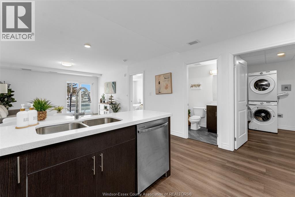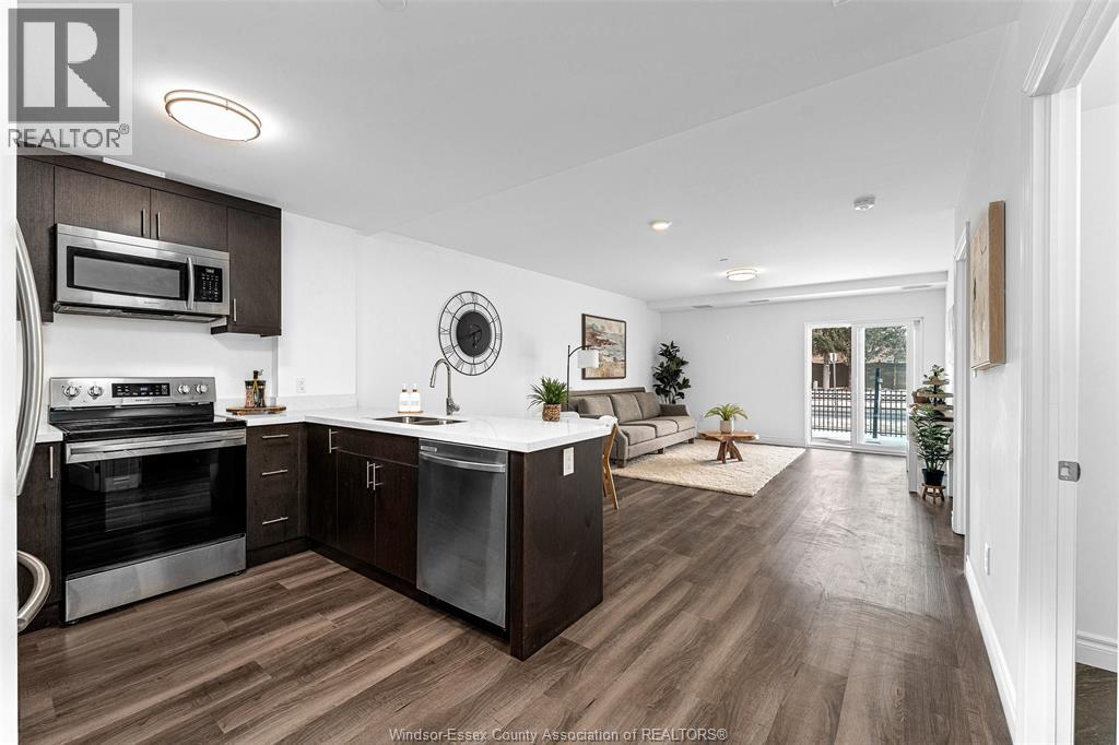 Welcome to 1611 Banwell, Unit 122. Enjoy this spacious 1 bedroom main floor unit with lots of natural sunlight offering a large primary bedroom with 4pc ensuite bath and walk-in closet. The modern kitchen has a breakfast bar and opens to the living & dining area featuring sliding glass doors to your private fenced backyard facing east to the morning sun. This well maintained unit comes with stainless steel appliances, modern LVP flooring insuite laundry room and an additional 1/2 bath for your guests. Amenities for the building offers a full commercial-grade fitness centre, yoga studio and a party room with secured entrance and advance package delivery pods for easy convenience of your parcels. Walk to Elizabeth Kishkon Park that backs onto green space and a walking trail. There is 1 assigned parking spot that is conveniently located just outside the main entrance door. Walking distance to shopping and bus routes. (id:64974)