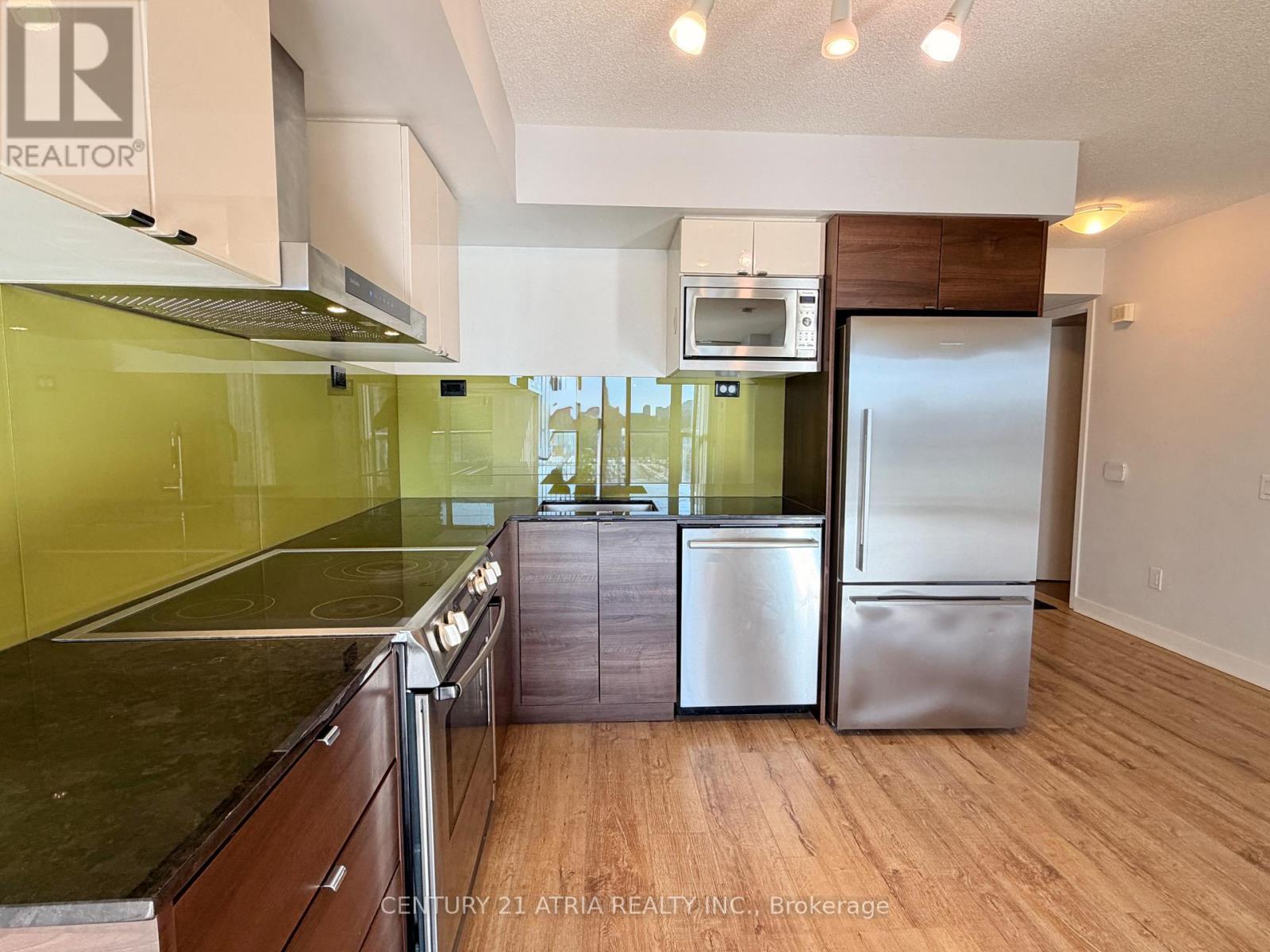 Immaculate well maintained unit with new laminate floors through-out! Very spacious unit at 645 SF, Bright 1+Den Unit! Enjoy Sunny Unobstructed Clear Views Overlooking Huge Community Park W/ Water Feature In Summer & Skating Rink In Winter. Den Large Enough To Be Separate Rm. Lots Of Storage Space W/ Walk-In Ensuite Locker. Top Quality Stainless Steel Appliances, Granite Counters, Laminate Floors, Wall To Wall Windows. Walk To Ikea, Canadian Tire, McDonalds, Starbucks, bubble tea, Bessarion and Leslie Subway stations. 5 Mins To Hwy 401, 404, Oriole Go Train station, Fairview Mall and Bayview Village! (id:64974)
