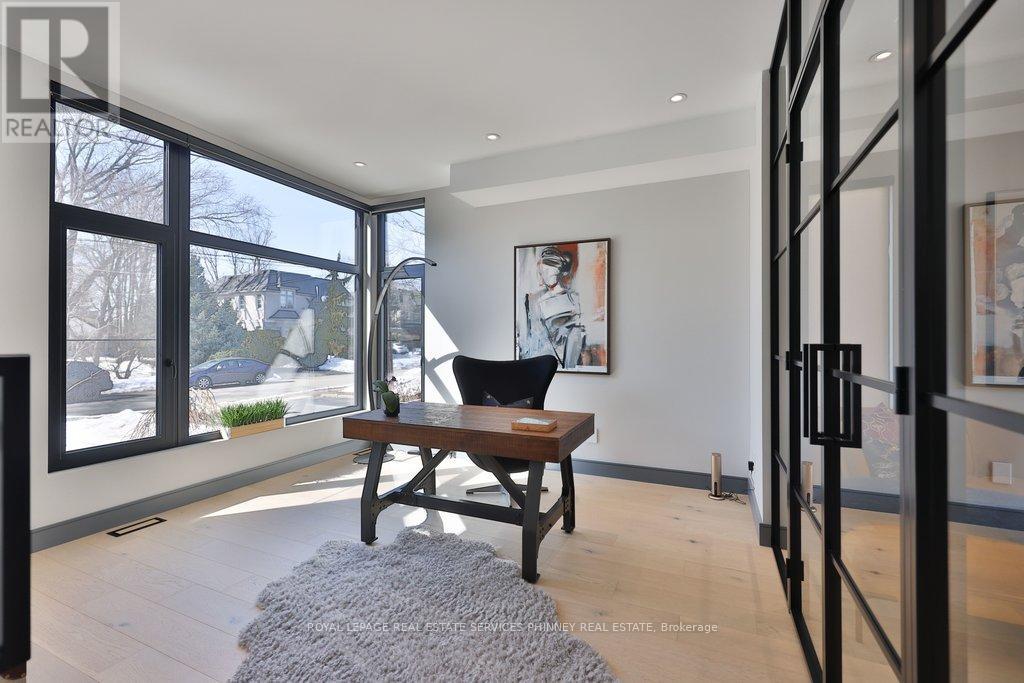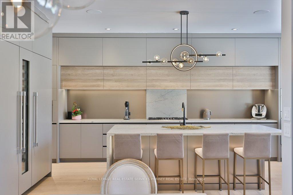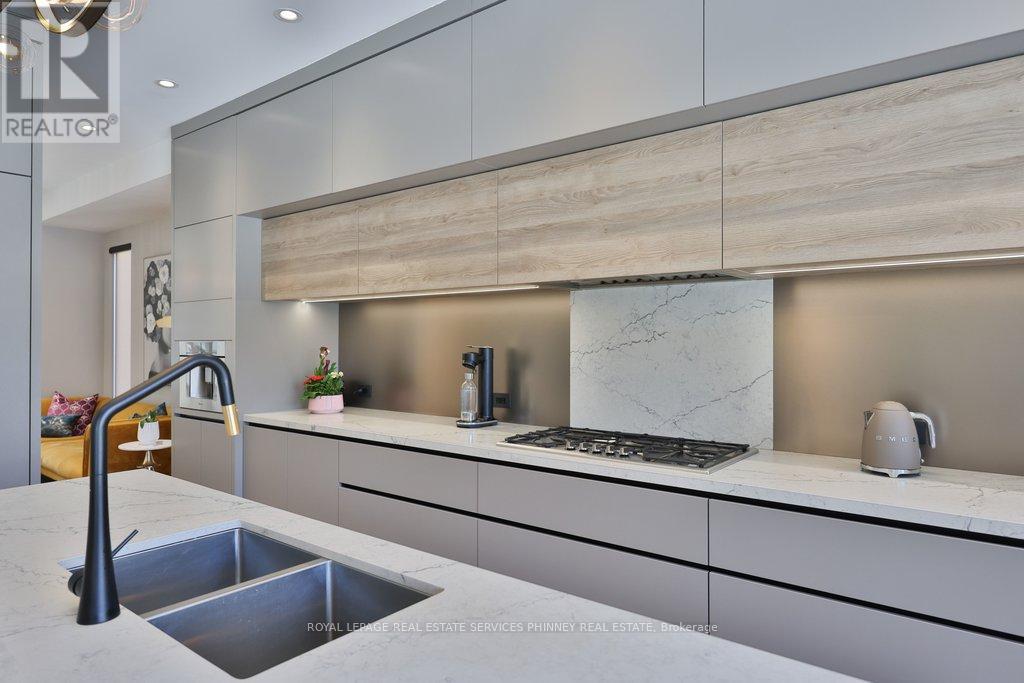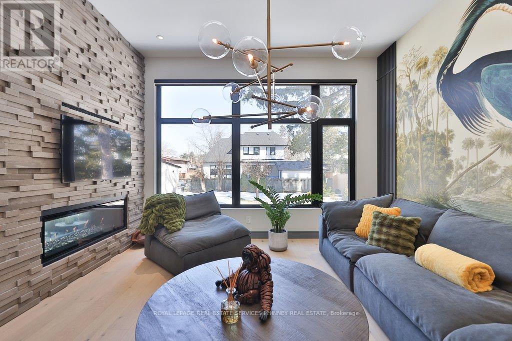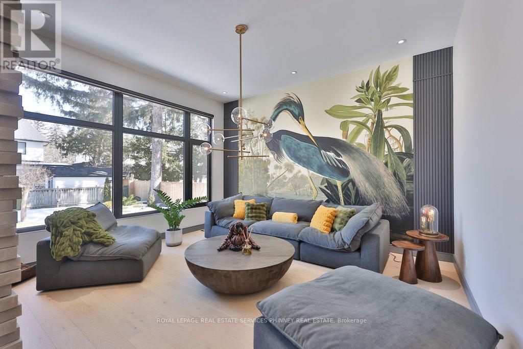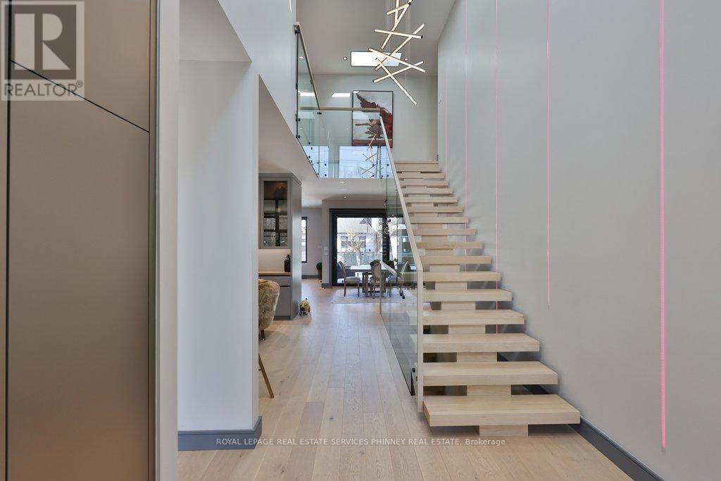 This exceptional, custom-built residence in highly sought-after Mineola masterfully blends functionality and luxurious finishes. Offering approximately 5,750 sq. ft. of total living space, the home has been thoughtfully crafted with attention to detail and superior finishes. The main level presents expansive principal rooms, ideal for both everyday living and elegant entertaining. At the heart of the home is a Millworx gourmet kitchen, appointed with top-of-the-line appliances and a striking aesthetic appeal. The upper level features a primary retreat with a 5-piece ensuite and a private balcony, and three additional generously sized bedrooms, each complete with their own ensuites - the children or guests will not have to share! The upstairs laundry completes this level. The walk-up lower level enhances the home's versatility, boasting heated floors, a spacious recreation room perfect for entertaining, a fifth bedroom for guests, and a full bathroom. There is also a dedicated gym area for daily fitness routines, and a second laundry room for added convenience. Because of the lot's width, the stunning backyard offers a grass/play area, an inground pool, and a dedicated eating patio! On cooler nights, enjoy the double-sided fireplace on the back terrace. Situated with convenient access to the boutiques and restaurants of Port Credit, the harbour, waterfront trails, sailing club, GO Station, and major highways, this remarkable property offers convenience and comfort. (id:64974)