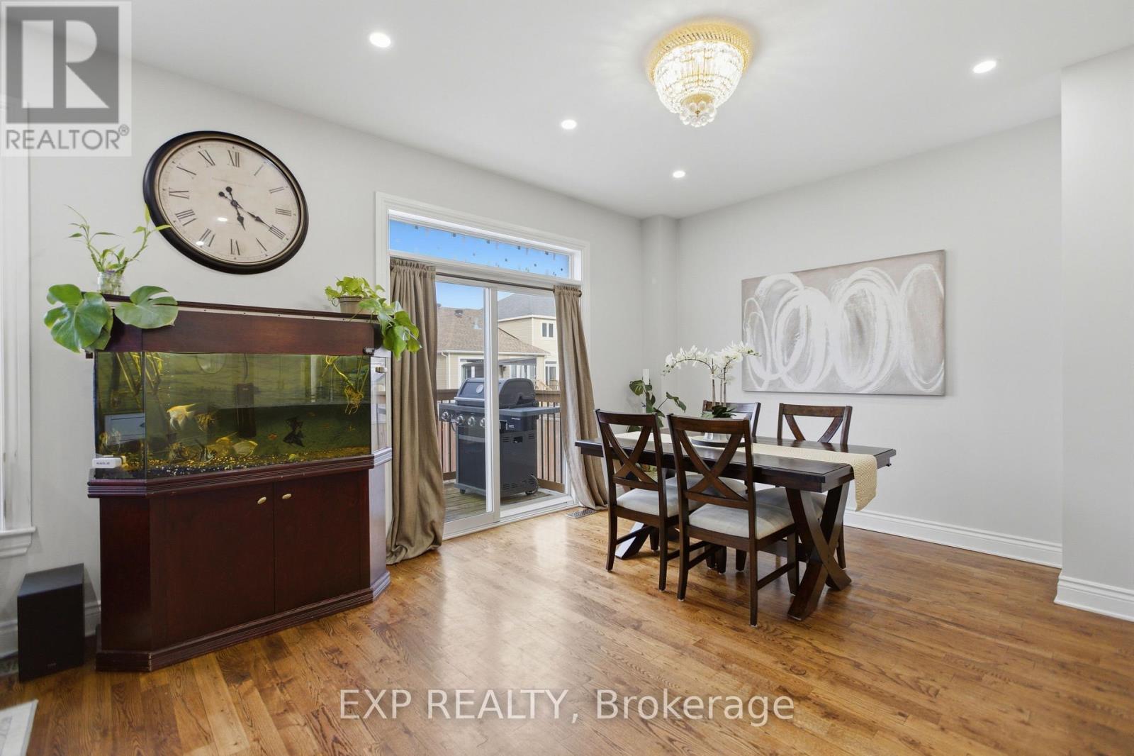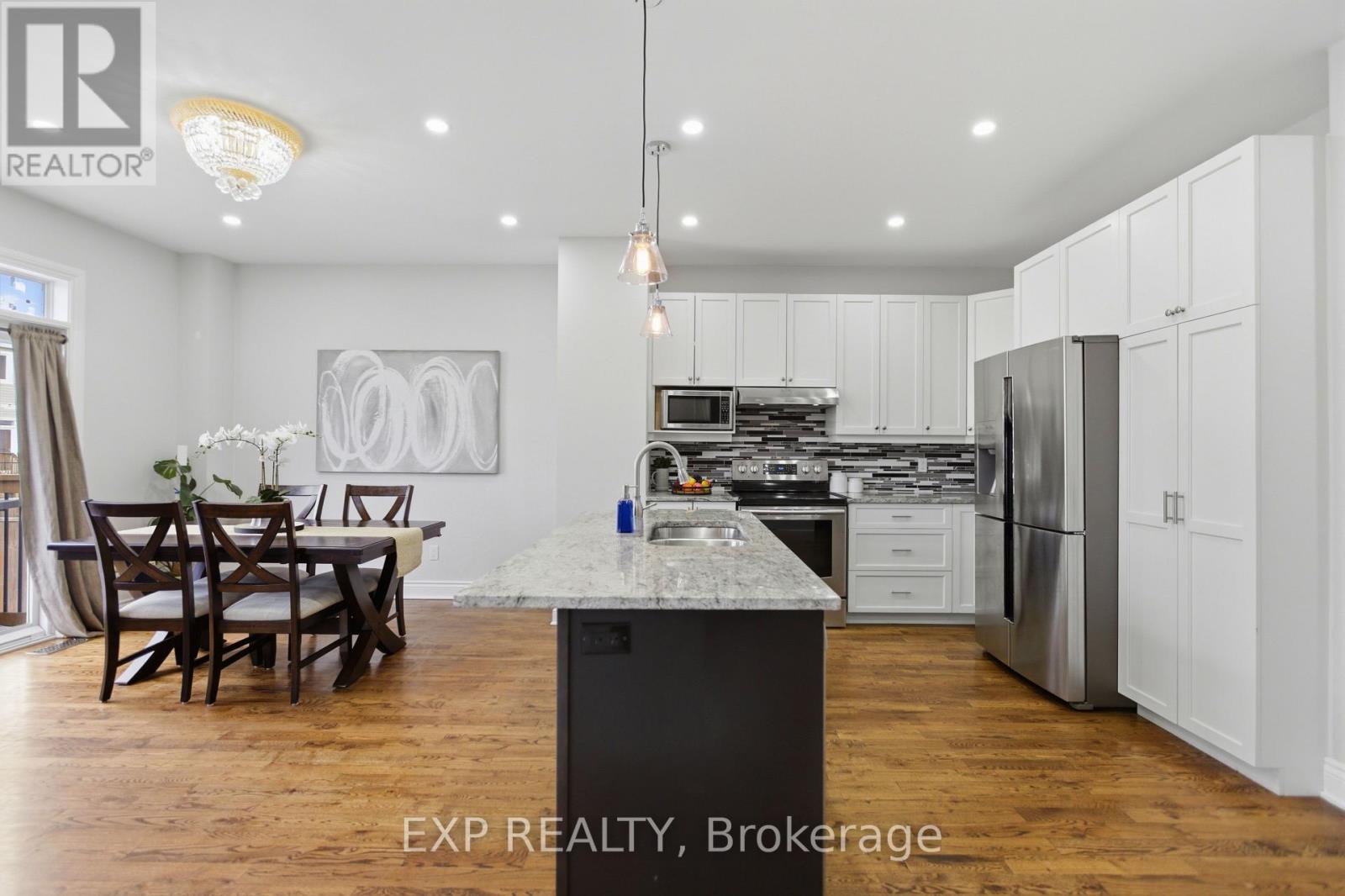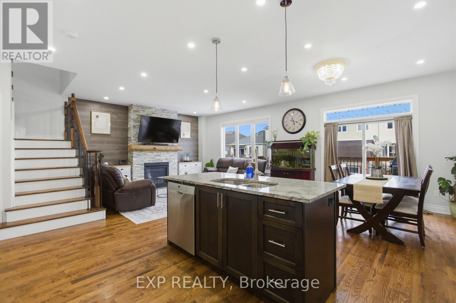 Beautifully maintained two-storey home in the desirable Village Creek community, just minutes to Highway 417 and the town of Arnprior along the Ottawa River. This upgraded 4-bedroom residence features a welcoming interlock patio leading to a bright foyer with ceramic flooring and an open-concept main level. The kitchen offers stainless steel appliances, a functional island with seating, and flows seamlessly into the dining area with patio doors to a 12' x 6' rear deck. The living room is highlighted by a stunning stone-faced gas fireplace with wood accents. Hardwood flooring extends throughout the main and second levels, including the staircase with elegant iron railings. Upstairs, you'll find three spacious secondary bedrooms, a full bathroom, convenient laundry, and a generous primary suite complete with ensuite bath. The finished lower level boasts a large recreation room with ample space for both relaxation and exercise. Located in a sought-after family-friendly neighbourhood close to schools, parks, churches, hospital, library, community centre, shopping, skiing, golf, and nearby lakes. (id:64974)