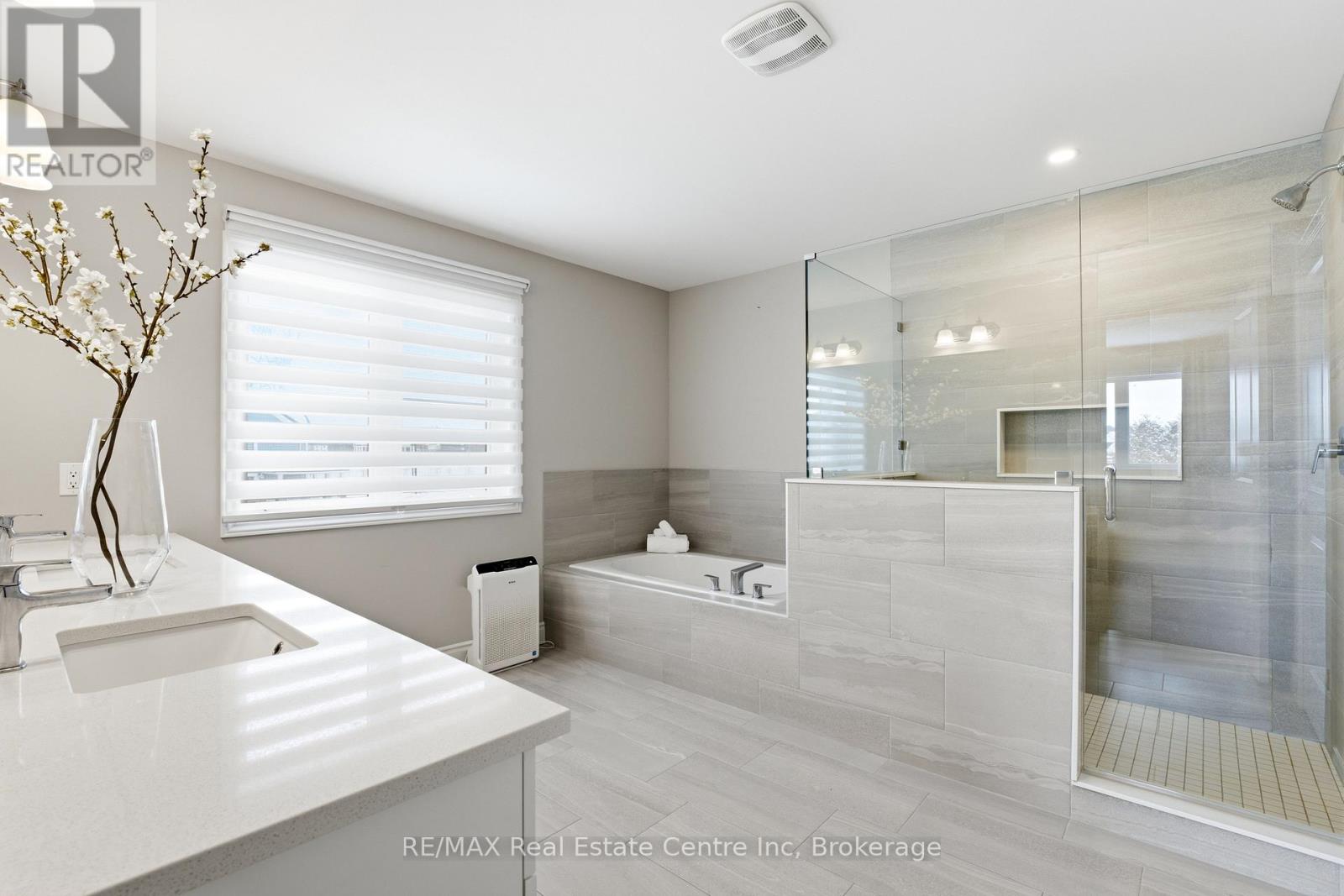 Welcome Home to 162 Harrison Street. Positioned on a PREMIUM greenspace lot in South River - ($150,000 value) - this Granite-built home offers the privacy, setting & upgrades buyers wait for but rarely find. Offering nearly 3,000 sq ft, 4 bedrooms & 4 bathrooms, this home showcases over $180,000 in thoughtfully selected upgrades. The exterior makes a striking first impression with rich stonework, bold modern finishes, timber accents & a covered front porch. Inside, the open-to-above foyer & hickory staircase set the tone, while 10-foot ceilings & 8-foot doors elevate the entire main level. Expansive rear windows flood the open-concept living space with natural light & frame peaceful treed views. The kitchen features upgraded countertops, extended cabinetry, a statement chimney hood fan, champagne bronze hardware & a large island built for gathering. A private office, functional laundry/mudroom & upgraded powder room complete the main floor. Upstairs, three of the four bedrooms offer ensuite access, including a spacious primary retreat overlooking the greenspace with a walk-in closet & spa-inspired ensuite featuring double sinks, tiled shower, water closet & soaker tub. The unspoiled basement offers 9-foot ceilings, oversized egress windows & a rough-in for a fifth bathroom. Located in one of Elora's most desirable communities, you're steps to trails & minutes to Downtown Elora's shops, dining, the Gorge, Cataract Trail & Groves Memorial Hospital. Premium lot, extensive upgrades & an exceptional setting. (id:64974)