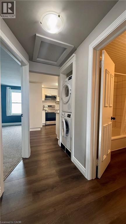 Spacious upper-level unit offering two generously sized bedrooms and a full 4-piece bathroom. This well designed layout flows into a beautiful walk-through kitchen featuring quartz countertops, double stainless steel sinks, a ceramic backsplash, and brand-new stainless appliances. At the rear of the home, the expansive living and dining area is filled with natural light, creating a bright and inviting atmosphere. The unit also includes the convenience of in-suite laundry. Enjoy a private entrance and one parking space, all ideally located within walking distance to shopping, the mall, public transit, and nearby parks, with easy access to Highway 401. Great onsite landlords! Settle in to this family friendly neighborhood and enjoy the quite family friendly neighborhood as you call this beautiful space home for your next chapter. (id:64974)