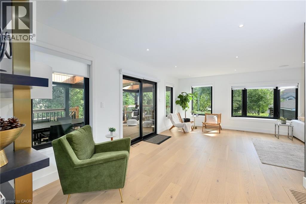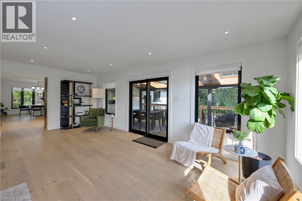 Welcome to 162 Stone Church Rd E! This stunning 7-bedroom, 4-bath home on a massive 75 x 167 ft lot offers space, luxury, and flexibility for multi-generational living. The main floor showcases an open-concept kitchen/dining area with oversized waterfall island, high-end Bosch appliances, quartz counters and full-height quartz backsplash, pot-filler, bar area with sink and fridge, and under-cabinet lighting. A spacious living room with oversized windows opens to a 220 sq ft covered patio with 3 brand new skylights. The primary suite boasts dual walk-in closets and a spa-inspired ensuite with 5x5 walk-in shower, rain head, freestanding tub, makeup vanity, and premium fixtures. Upstairs includes 3 bedrooms plus a separate office, while the bright lower level offers 3 large bedrooms, a full kitchen, dining and living areas, and a walk-up to the oversized garage. Outdoor living shines with a two-tier covered deck, 400 sq ft concrete patio, beautiful step garden, and expansive yard with large shed. Smart-home ready with Sonos, smart switches, and 4K AI security cameras with remote monitoring. Major updates include triple-glazed windows (2023), roof (2023), furnace (2023), doors (2023), and 200-amp service (2024). Just 2 mins to the LINC, 5 mins to Lime Ridge Mall, and steps to all Upper James amenities! (id:64974)