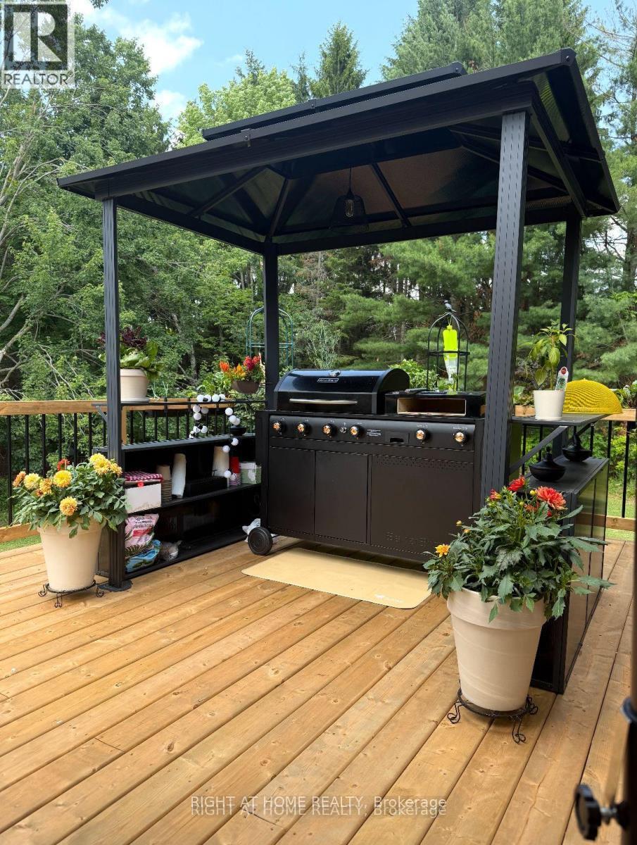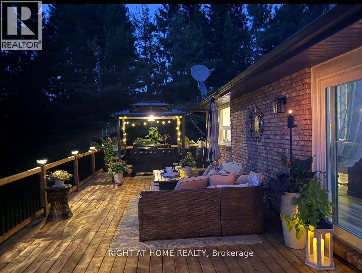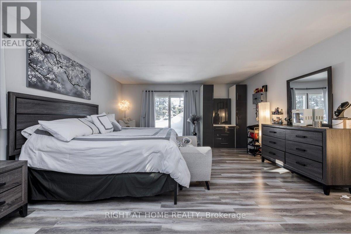 Estate style living on 1 private acre with nearly 4400 sq ft of finished living space. 7 bedrooms fully turnkey. Rare chance to own a sprawling bungalow on a private treed 1 acre lot in Warminster just 10 minutes to Orillia offering exceptional space and flexibility at an incredible value. With 7 bedrooms and 4 bathrooms this home delivers a layout rarely found at this price point. Perfect for multi generational living large families or investors the bright open concept main level features new flooring expansive windows with serene treed views three fireplaces including 2 wood burning and 1 electric and a walkout from the primary bedroom to a private deck retreat. The fully finished lower level adds outstanding versatility with a second kitchen in law suite capability and three separate walkouts ideal for rental income extended family or a home based business. Major upgrades for peace of mind include new windows and doors a roof approximately 5 years old and a brand new front deck. Outdoor living shines with a 16 by 14 upper deck a 36 by 15 lower deck, beautiful mature gardens, and a fire pit area. Incredible bonus fully loaded sale includes all appliances, lighting, riding lawn mower, patio furniture, BBQ and canopy and pool table, with most furniture negotiable for true move in ready convenience. Quiet desirable setting close to schools and amenities this is a rare blend of size privacy income potential and value and properties like this do not last. (id:64974)