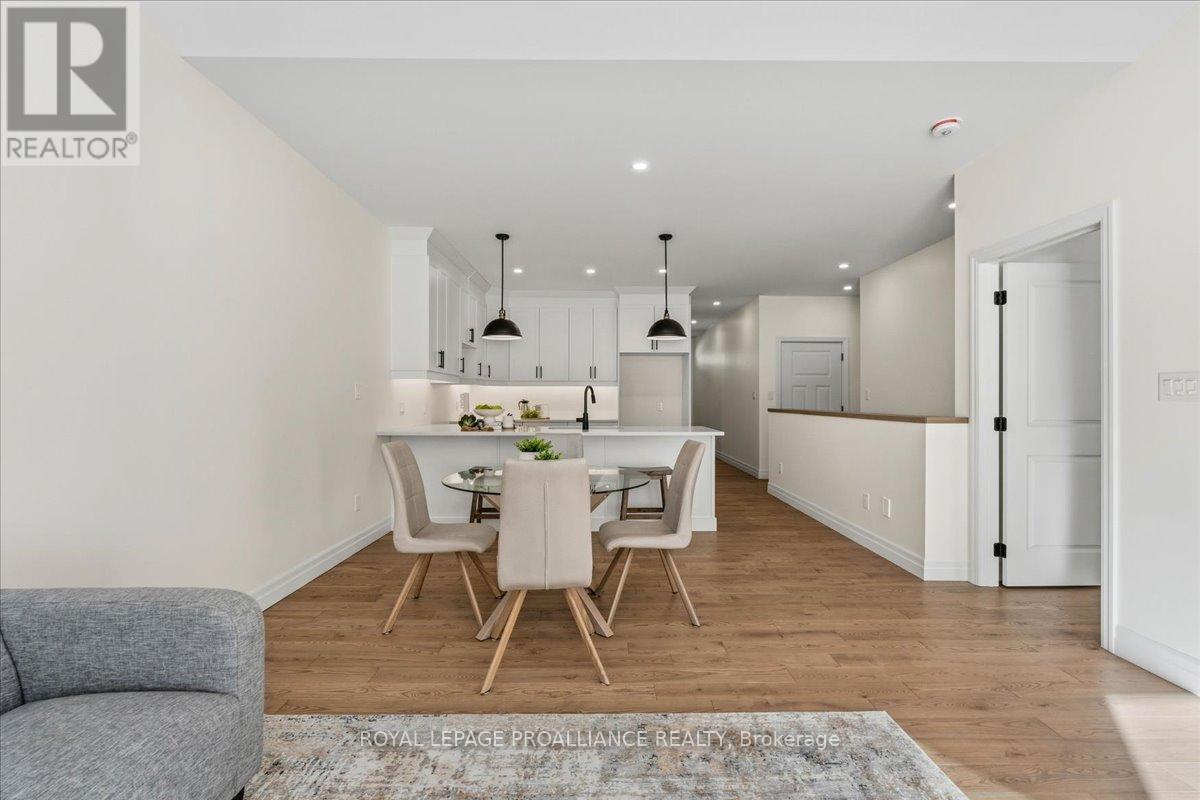 Step into this BRAND NEW custom, 2 bedroom, 2 bathroom townhouse, thoughtfully designed for everyday ease. The main level showcases hardwood flooring throughout, airy vaulted ceilings, a cozy natural gas fireplace, and stylish hardware and lighting that highlight the bright and welcoming layout. The kitchen features quartz countertops, tasteful cabinetry and modern finishes, with the option of an appliance package for added convenience. Patio doors open to a rear deck, an ideal spot for morning coffee or evening unwinding. The primary bedroom features a well appointed en-suite and luxurious walk in closet. While the convenience of main floor laundry makes single-level living a breeze. An attached on-car garage with inside entry and a paved driveway provide everyday practicality. The full unfinished basement includes a rough-in for a future bathroom, along with plenty of potential for additional living space or storage. Located within walking distance to schools, shops, the medical center and local amenities, this home delivers a balanced mix of style and function perfect for first-time buyers, downsizers, or anyone seeking a simplified lifestyle. (id:64974)