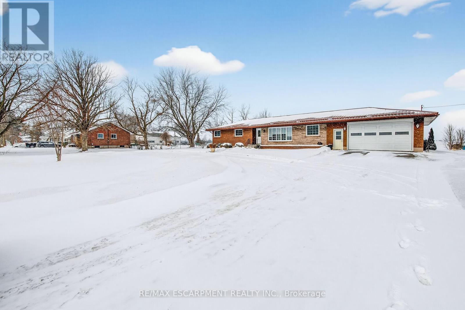 Impressive sprawling brick ranch bungalow located in Nanticoke - a friendly hamlet located on banks of Lake Erie's Golden South Coast - relaxing 45-50 min commute to Hamilton, Brantford& Hwy 403 - 10 mins E of Port Dover popular amenities. This freshly painted/redecorated family-friendly home is positioned handsomely on 0.76 ac lot abutting peaceful farm fields enjoying partial lake views to the south offering 200ft of road frontage highlighted w/paved circular drive enhancing a definite street presence. Introduces over 1800sf of bright/spacious living area, similar sized finished basement, 387sf attached 2-car garage, 12x20 functional shed w/conc. floor/hydro + 8x12 garden shed. Beautifully renovated kitchen-2016 showcases main floor design sporting custom maple cabinetry, heavy/thick granite counters, breakfast bar peninsula, quality SS appliances & dinette boasting walk-out to multi-purpose 28x28 concrete entertainment patio. Continues to comfortable living room ftrs large bay picture window, formal dining room, inviting front foyer, updated 4pc bath, convenient mud room incs direct garage entry & access to 2pc bath - completed w/bright west wing where 4 roomy bedrooms ensure ample room for growing family or multi-generational situation. Gleaming original hardwood floors compliment clean, crisp neutral décor. New low maintenance vinyl flooring-2022 compliments open concept lower level 670sf rec/games room incs lounge-style room ftrs custom oak bar, sizable 5th bedroom, cedar lined WI closet, laundry room, utility room, storage room & huge cold room. Extras inc roof-2018, facia/soffit/eaves-2018, n/gas furnace/AC-2019, 6000 gal concrete water cistern-2017, initial stage septic tank-2013, 100 amp hydro *breakers*, raised panel interior doors, updated light fixtures, battery back-up sump pump-2022 & so much more! Experience Relaxing Rural Lifestyle with a Lake Twist! (id:64974)