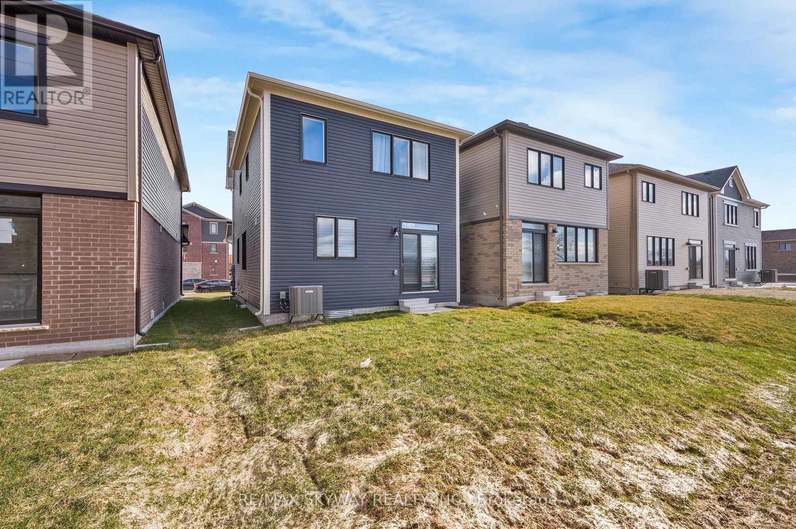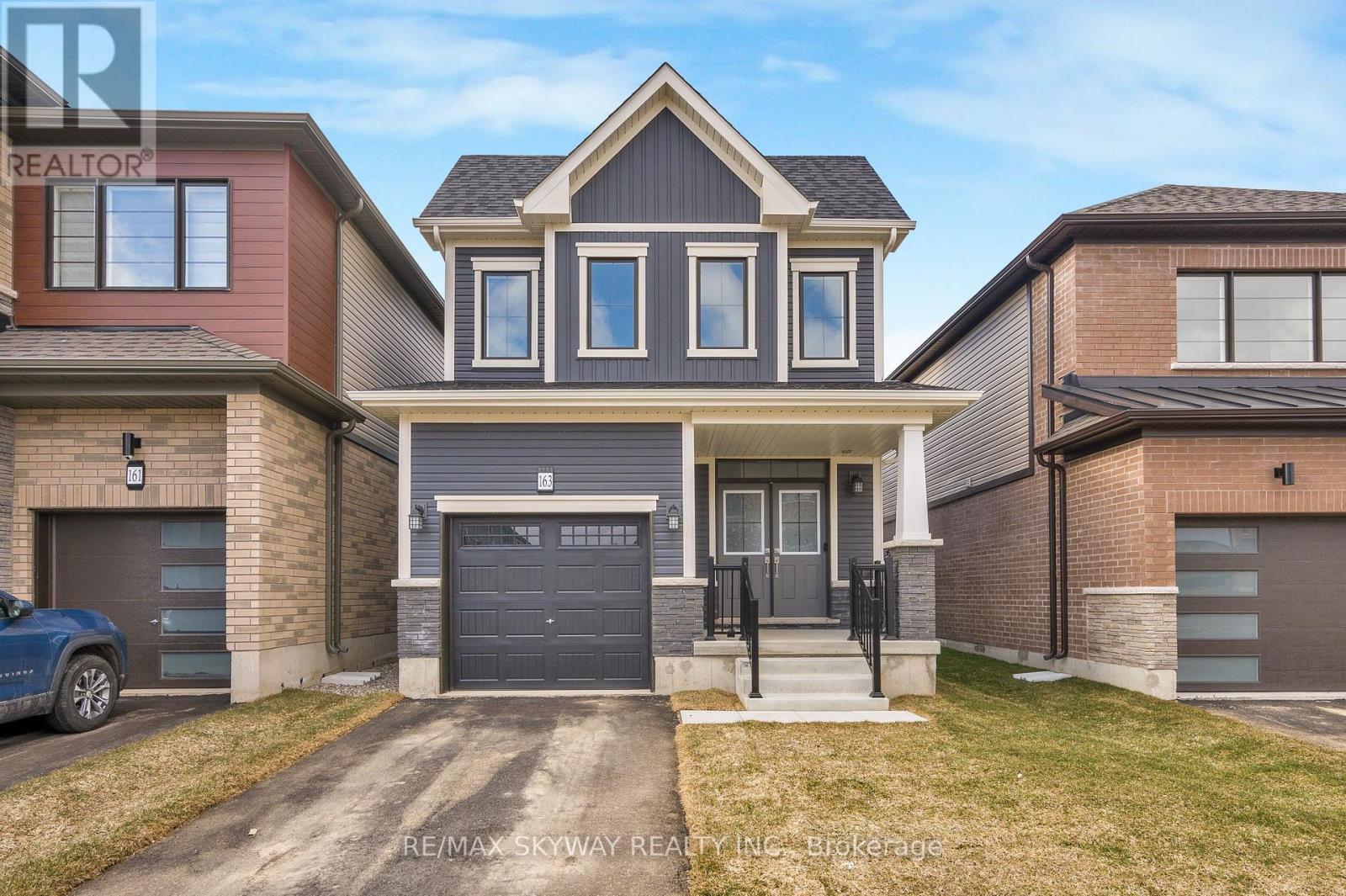 Welcome to***163 Wilmot Road, located in the sought-after Empire South neighborhood of West Brant. Set in a welcoming, family-friendly community, this attractive 2-storey home offers 3 bedrooms, 2.5 bathrooms, along with an attached single-car garage***Perfect for a growing family! This sun-filled detached residence offers modern design and thoughtful upgrades***Features include 9-foot ceilings, an open-concept layout, upgraded hardwood flooring on the main level, elegant oak staircase, and large windows that flood the home with natural light. The spacious basement boasts oversized windows, offering excellent potential for future finishing. The double-door front entrance opens to a tiled foyer with a convenient main-floor powder room. The open-concept main level showcases upgraded finishes, including a blend of tile and hardwood flooring and is ideal for both everyday living and entertaining. The kitchen is a standout, featuring upgraded cabinetry, a large pantry, over-the-range microwave and a breakfast bar with double sink and dishwasher. The primary suite offers a walk-in closet and a private 5-piece ensuite. Two additional bedrooms, a second full bathroom and the convenience of bedroom-level laundry complete the upper level. Located close to schools, parks and everyday amenities. The surrounding Empire South neighbourhood continues to grow, with future residential homes planned behind the property and a large, inviting green space just steps away, providing open, natural surroundings for the whole family to enjoy. A wonderful opportunity to settle into one of Brantford's most desirable and growing communities-don't miss the chance to make this home yours (id:64974)