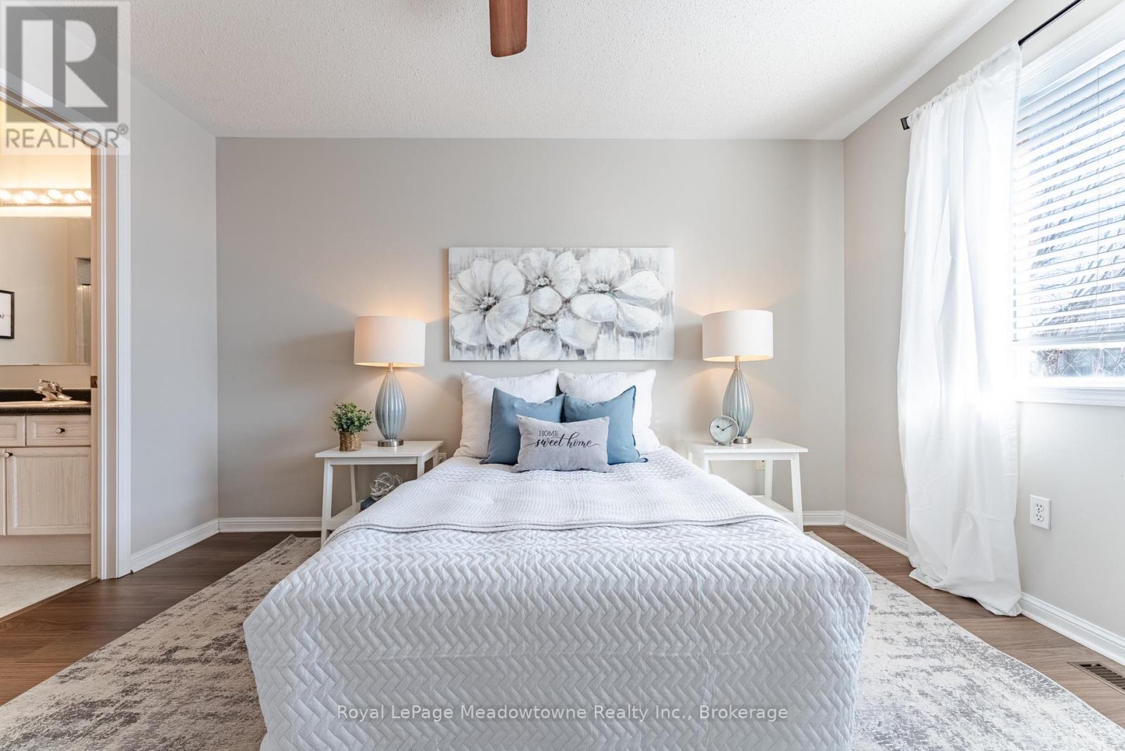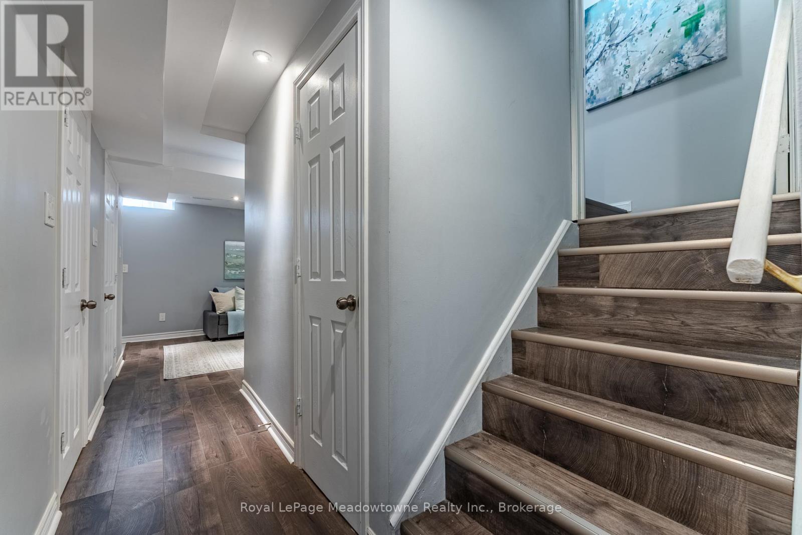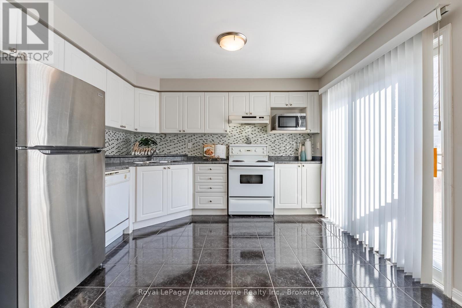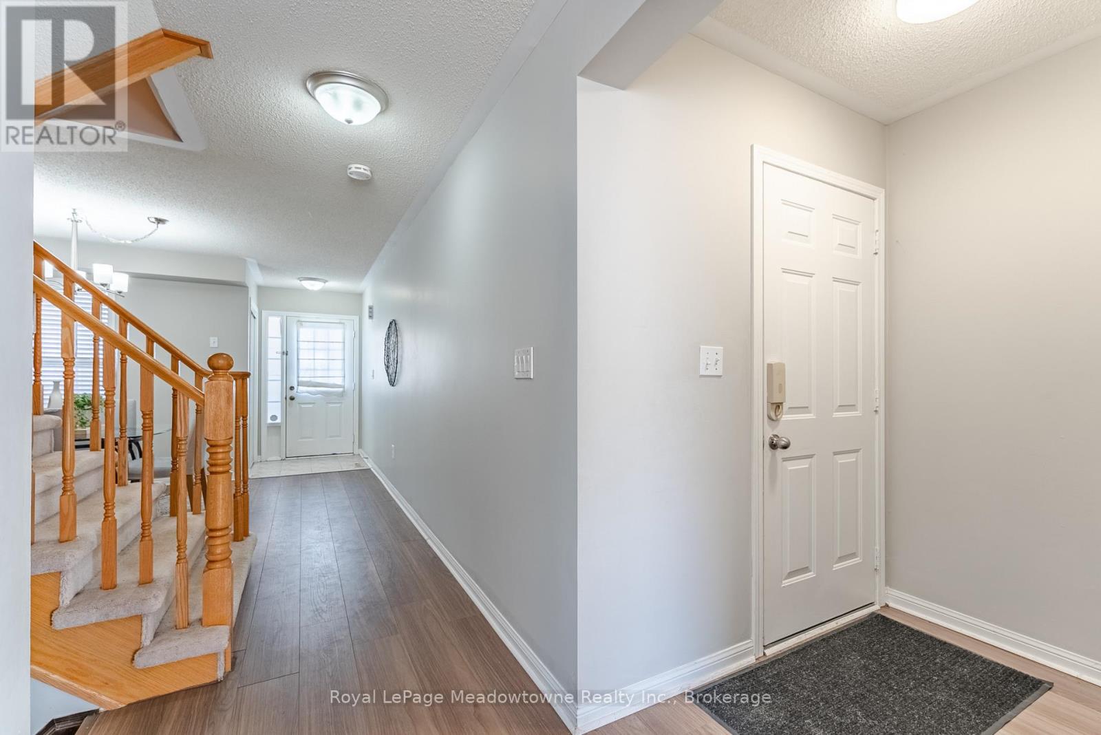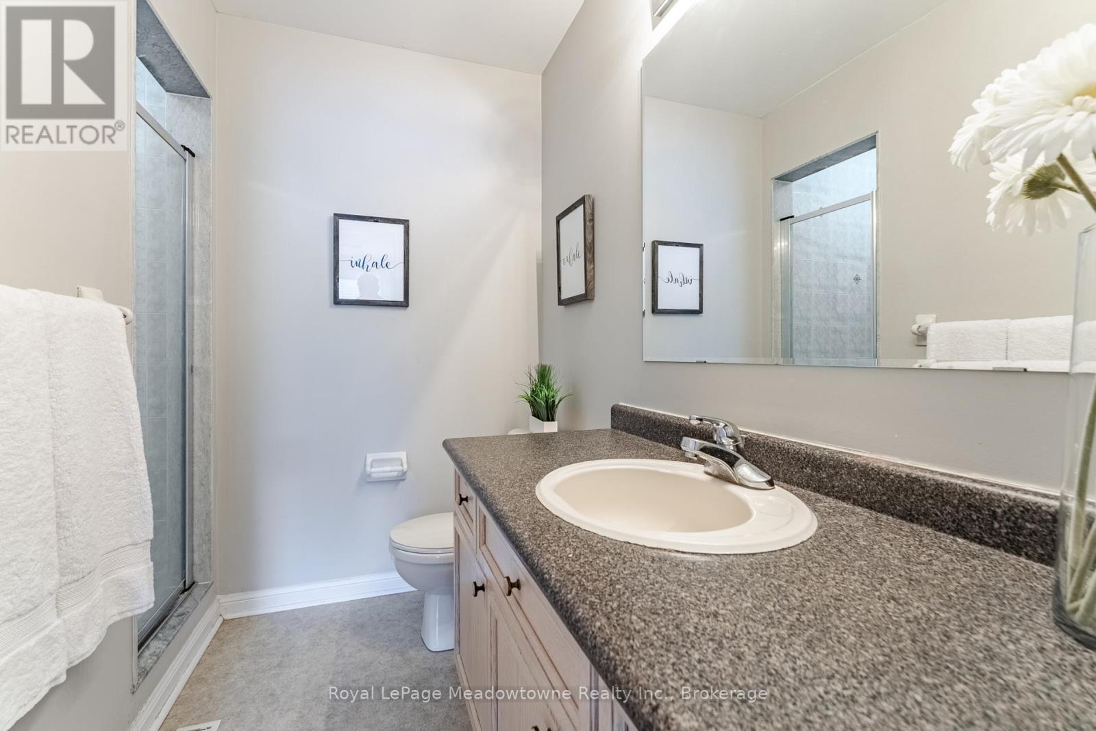 One of the first things you'll love in this Freehold Townhouse is the parking - with space for two cars in the driveway, plus a single-car garage. A covered front porch adds extra charm, with a tucked away nook that's perfect for a small table or outdoor storage. Step inside and you'll immediately feel the freedom this home offers with a great layout, a real backyard, and no condo fees. The dining room is thoughtfully positioned to keep everyday mess out of sight. As you move through the main floor, you'll pass a convenient powder room and inside entry from the garage before arriving in the inviting family room, ideal for entertaining, game nights, or cozy evenings. Overlooking the Family Room is the spacious kitchen, offering plenty of prep space, storage and room to add an island or breakfast table. Slide open the patio doors and the backyard becomes an extension of your living space, perfect for summer BBQs or easy outdoor time. Upstairs, you'll find three bedrooms and a full four piece main bath. The front bedroom features a study nook and a large window with a built in reading bench. The second bedroom overlooks the backyard and benefits from south facing windows that fill the room with natural light. Completing the level is the spacious primary retreat, with a walk-in closet and a private three piece ensuite. The finished basement is tailor made for a teen hangout, games zone or Gym, featuring pot lights and a wet bar for gaming snacks, workout fuel, or late-night movie treats. A powder room is already in place, along with a cleverly tucked away shower closet - quirky in the best way and incredibly practical for guests, teens, or post-workout showers. With 3 showers in the house, nobody's waiting in line! Set in Milton's Clarke neighbourhood, this home is just a short walk to the redeveloped Trudeau Park. Commuters will appreciate the quick access to James Snow Parkway and Hwy 401, making daily travel a breeze plus the added convenience of nearby amenities. (id:64974)