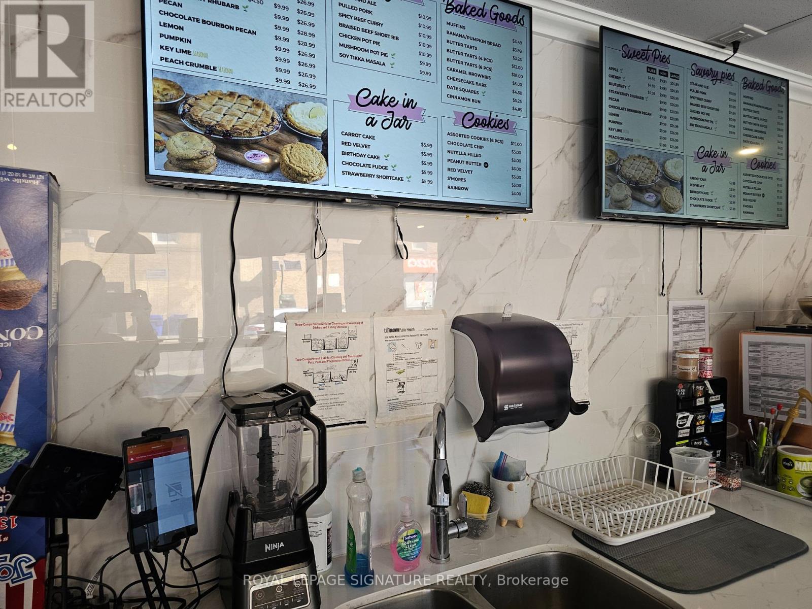 A popular Sweetie Pie franchise location is now available in the heart of Leaside on Bayview Avenue. This turnkey location comes with training from head office and can also be rebranded to suit a different concept, cuisine, or franchise. The unit is a bright and efficient 466 sq ft space featuring limited indoor seating for 6 and a charming outdoor patio with 9 seats. Its layout makes it easy to staff and manage, perfect for a café, bakery, or quick-service operation. The lease rate is $3,628 gross rent (including TMI) with 5 + 5 years remaining, offering long-term stability in a highly desirable neighbourhood. Please do not go direct or speak to staff or ownership. (id:64974)