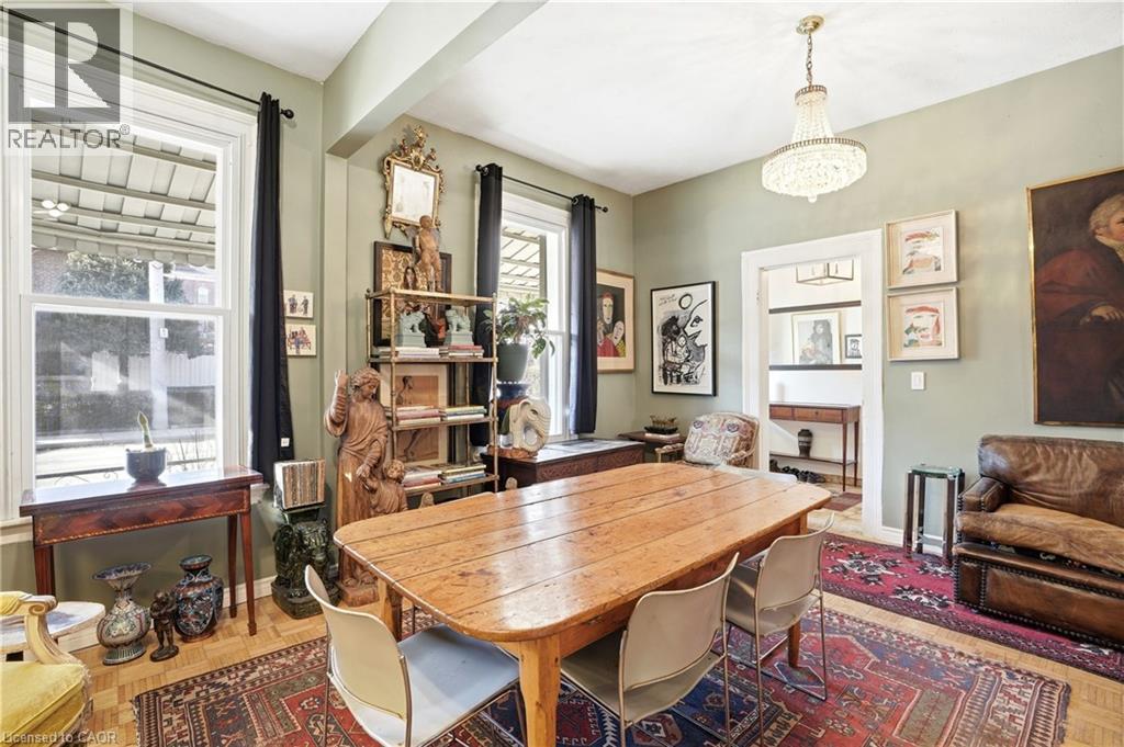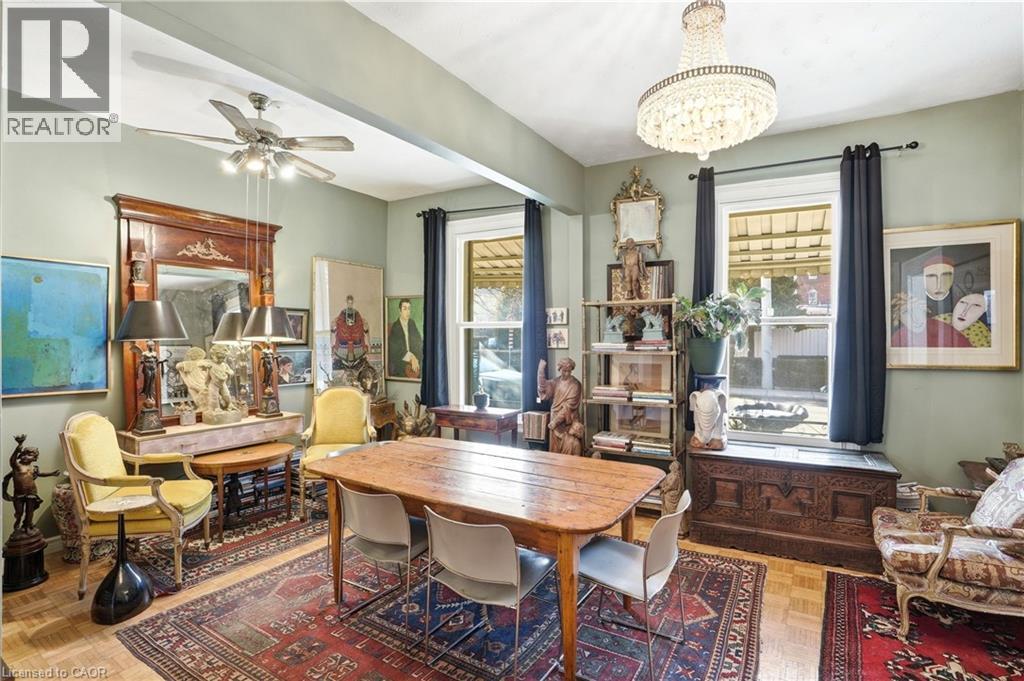 A rare opportunity to own a spacious registered detached home in the heart of downtown Hamilton, offering 4 bedrooms, 2 full bathrooms, & over 1,500 sq ft above grade living space. The bright eat-in kitchen provides plenty of room for daily living, while the oversized living and dining areas impress with soaring 10-foot ceilings, abundant natural light, & original parquet flooring adding warmth and character. A freshly painted interior enhances the airy feel, & newly finished wood stairs throughout keeps maintenance simple. Step outside to a level backyard with ample space for entertaining, gardening, or relaxing in your own private outdoor setting. Upstairs, 9-foot ceilings continue the sense of openness across four well-proportioned bedrooms & a full 4-piece bath, offering flexibility for families, guests, or a home office. The partially finished lower level features a cozy rec room, another 4-piece bathroom, along with additional storage & over 350 sq ft of unfinished space ready to customize to your needs. Solid all-brick construction, currently sided for added insulation, speaks to the home’s durability & long-term value. Ideally located just minutes from Bayfront Park, Pier 4 Park, Jackson Square, the waterfront trails, & West Harbour GO, this property offers walkability, convenience, & easy highway access for commuters. With generous square footage, timeless character, & a location that continues to grow in demand, this is an opportunity you won’t want to miss. (id:64974)
