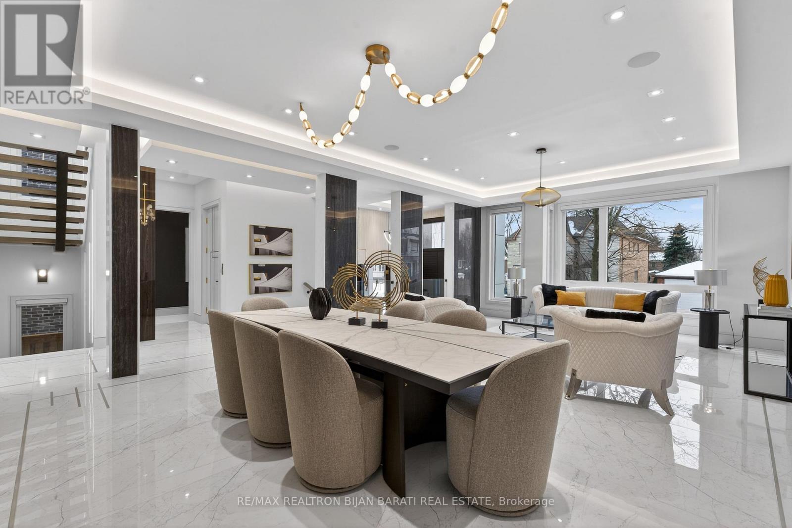 This Stylish Modern Custom Home, Boasting A Perfect Blend Of Advanced Architectural Design, The Latest Tech&Comfort (Control-4 Home Automation), Premium Craftsmanship with Approx. 5,700 Sq.Ft of Elegant Living Space(~3,900 S.F in Main& 2nd Flr +~1,800 S.F in Professional Finished Basement). It Feels Magically Like A 50 feet Lot Inside, Much Bigger Than the Real Size Based on Maximum Possible Lot Coverage(Only 4 Ft in Sides)! This Beauty Features: Meticulous Modern Facade Combination of ACM (Aluminum Composite Panel/ Material)& Imported Brick + Brick in the Sides&Back! Large Size Windows, Providing Ample Natural Light! Porcelain Slab Flooring with Heated Underneath in Main Flr,Office,Foyer, Basement,All Washroom Floors,Porch,Front Steps & Driveway!! 9.5" Wide Engineered Hardwood Thru-Out 2nd Floor! Led Potlights, Designer Accent Walls, Inlay Led Lights on Wall& Wall Unit! High-End Millwork! Remarkable Designed Washrms! Soaring Ceiling Height> Foyer & Office:13',1st Flr:10',2nd Flr:9 to10',Bsmnt Rec:10'. Chef Inspired Kitchen with Quality Rich Modern Cabinets, State-Of-The-Art Appliances, Breakfast Area, W/O to Family Sized Deck&Concrete Blocks Patio with Modern Turf Grid Grass& a Pool!Exciting Living/Dining Rm with Cof Cling&Ambient Lights, Gorgeous Designed Wall Unit Includes Drink Centre! Family Rm With Unique Modern Designer B/I Shelves and Fireplace. Master Bedroom Includes 9-Pc Spa-Like Ensuite with Auto Toilet&Steam Sauna& A Boudoir Walk-In Closet With Island&Window! Open Rising Main Staircase with 3" Run's Thickness, and Tempered Glass Railing! Finished Heated Floor W/O Basement, Rec Rm With a Wet Bar Includes B/I Shelves, S/S Beverage Cooler, S/S Sink, S/S Dishwasher, Gas Fireplace, Nanny Rm,3PC Bath, 2nd Laundry, Media Room. Convenient & Coveted Location >> Norton AVE! Steps Away from Yonge St, North York Centre, Best Schools(Earl Haig S.S & Hollywood P.S), Mitchell Field Community Centre with Indoor&Outdoor Amenities! *Pool&Media Room Are Virtually Staged (id:64974)