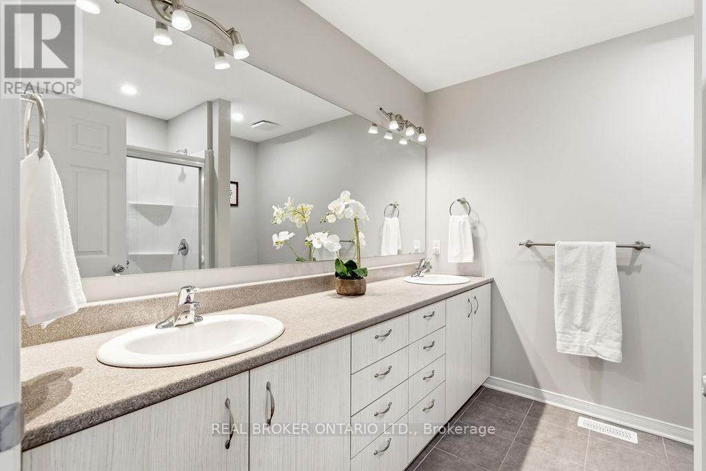 Staying true to its namesake, this home reflects the essence of the onyx gemstone; grounded, strong, and quietly confident. Known for symbolizing protection, resilience, and clarity, onyx represents stability and confidence in decision-making. This three bedroom, four bath home delivers on all fronts with thoughtful design, functional space, and a sense of calm throughout. Step inside through the functional, welcoming entrance with a convenient powder room. The great room makes an immediate impression with soaring cathedral ceilings, rich hardwood flooring, a gas fireplace, and an abundance of natural light all creating a space that feels both elevated and inviting. The formal dining room is perfect for hosting, while the eat-in kitchen features quartz countertops, abundant cabinetry, and a pantry designed for everyday ease. Upstairs, the primary bedroom offers a private retreat complete with a 4 piece ensuite and double sinks. Two additional bedrooms, a full bathroom, and second-floor laundry provide a layout that supports both comfort and efficiency. The partially finished lower level adds valuable versatility, featuring a spacious rec room, tons of useful storage space plus an additional powder room. Out back, enjoy a tiered deck and gazebo perfect for relaxing or entertaining. With no rear neighbours this yard offers maximum privacy. Curb appeal and a double garage round out the long list of virtues. Set within a welcoming community known for its friendly neighbours, this home is just moments from Du Moulin Park, Rockland Marina, and the Rockland Golf Club, offering the perfect balance of connection, recreation, and everyday convenience. Like the onyx stone itself, this home is built for balance, combining strength, comfort, function, style, privacy and connection. A space designed to ground you, support you, and move you forward with confidence. (id:64974)