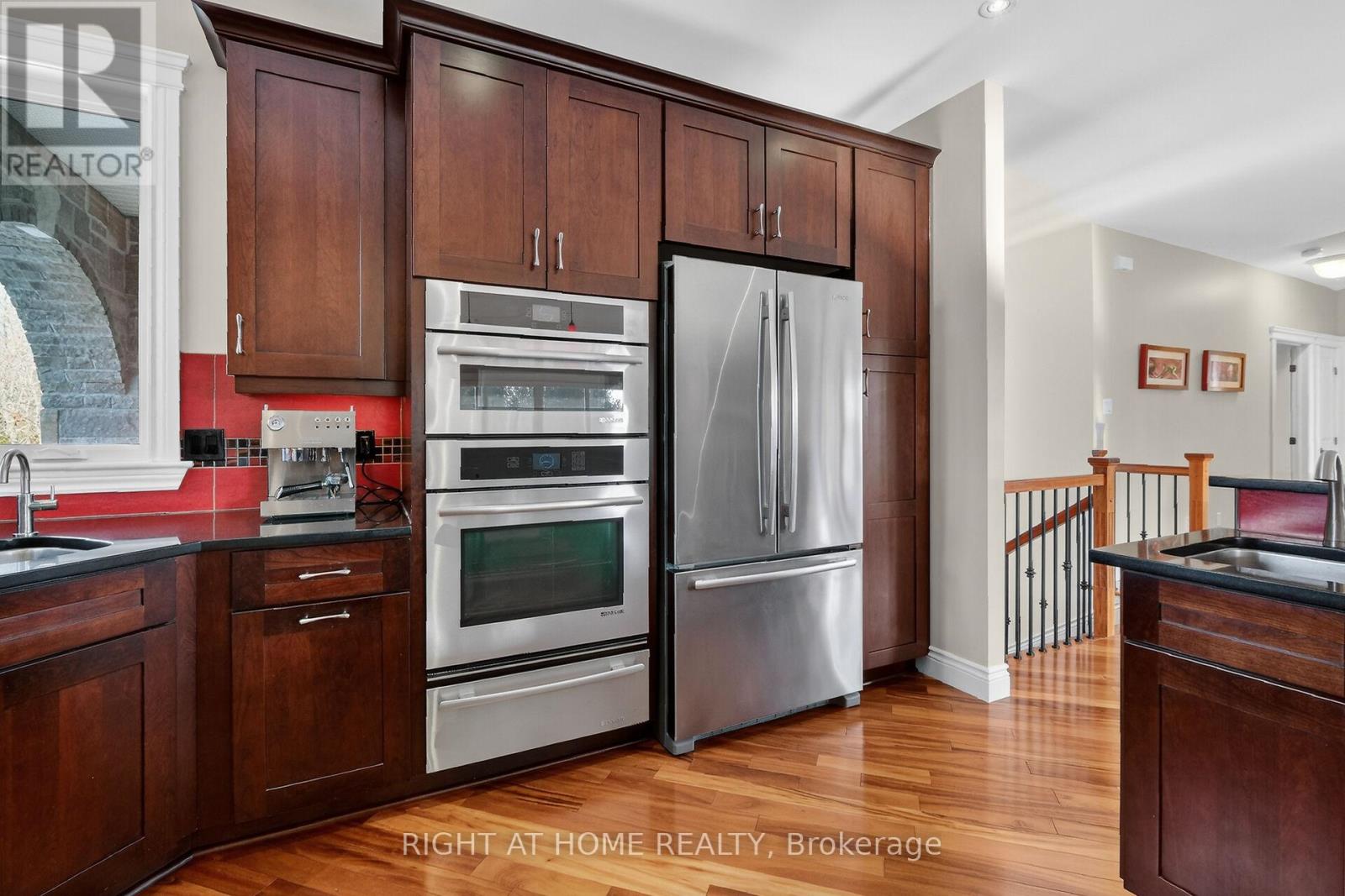 Welcome to an exceptional 2-acre estate backing directly onto Greensmere Golf Club, offering rare privacy and premium outdoor living just minutes from Kanata. This bright and beautifully updated and maintained 3-bed, 3 full bath home features a thoughtfully designed open-concept layout ideal for both everyday living and entertaining. The sun-filled main level showcases rich hardwood flooring throughout and a spacious living area anchored by a cozy gas fireplace. The chef inspired kitchen boasts stainless steel appliances, a gas stove, solid surface countertops, and generous prep and storage space.The fully finished walk-out basement expands your living space with direct access to the backyard oasis, perfect for multigenerational living, entertaining, or relaxing. Step outside and experience resort-style living at its finest. The private backyard features a heated in-ground saltwater pool, hot tub, gazebo, and covered porches that invite you to unwind and enjoy the peaceful surroundings. With no rear neighbours, the setting is both tranquil and picturesque. A large shed provides additional storage for tools, toys, and seasonal equipment. Located just 10 minutes from Kanata's shopping, schools, dining, and tech corridor, this property offers the perfect balance of rural privacy and urban convenience. (id:64974)