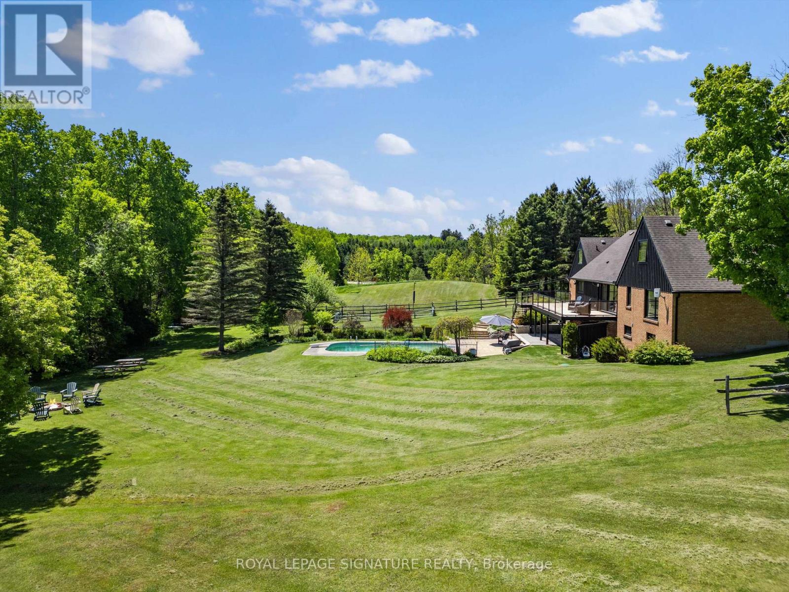Exquisite Bungaloft With Tree Lined Drive Situated On 7 Acres Of Prestigious King Countryside. Ultimate Privacy With Picturesque Views In All Directions. Thoughtfully Redesigned With Upgrades Throughout, This Impressive Property Offers Over 7,500 Sf Of Total Square Footage. Finished Basement Is Perfect For Nanny Quarters, Extended Families Or In-Law Suite Featuring An Open Concept Layout With A Large Kitchen & 3 Bedrooms. This Contemporary Bungaloft Boasts High-End Upgrades, Brand New Windows & Heated Floors Throughout, Custom Built Kitchens On Two Levels, Main Floor & Basement Laundry, Loft Bedroom With 6Pc Ensuite With Soaker Tub, Large Bedrooms & Closets, Bonus Loft Room Above Garage Perfect For Home Office, Fitness Area Or Rec Room, Central Vac, Electric Fireplaces & Custom Millwork Throughout. Finished Walk-Out Basement To The Serene Backyard Oasis, With Inground Pool & Diving Board, Natural Fire Pit, Interlock, New Lighting & Scenic Walking Trails Through Your Very Own Forest. Enjoy Summer Evenings On The New Deck With Sleek Glass Railings & Take Advantage Of The Heated Garage With Direct Home Access. Perfectly Located Just Minutes To Schomberg, Parks, Trails, Schools & Shopping, With Quick & Easy Access To Hwy 400 & 427. This One Of A Kind Property Truly Has It All - Luxury, Functionality & Nature In Harmony. The Seller Is Willing To Negotiate Professionally Painting The Interior Of The Home, Should The Buyer Be Interested. (id:64974)