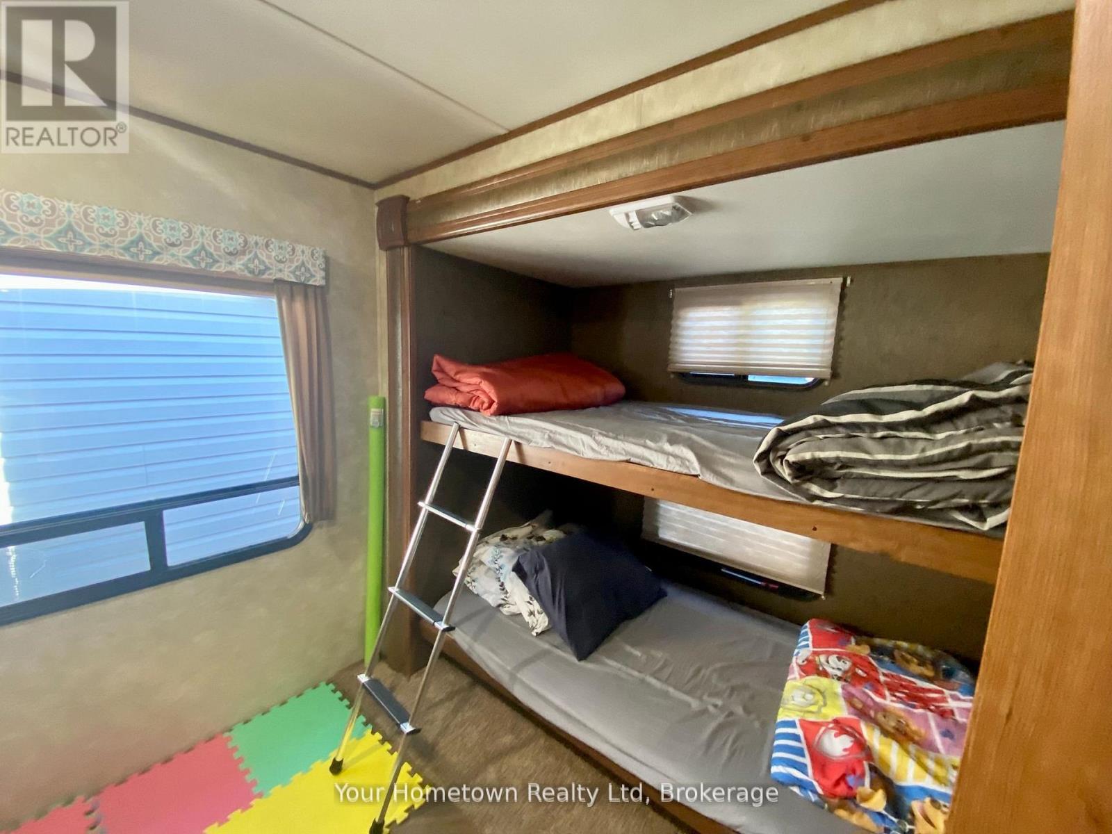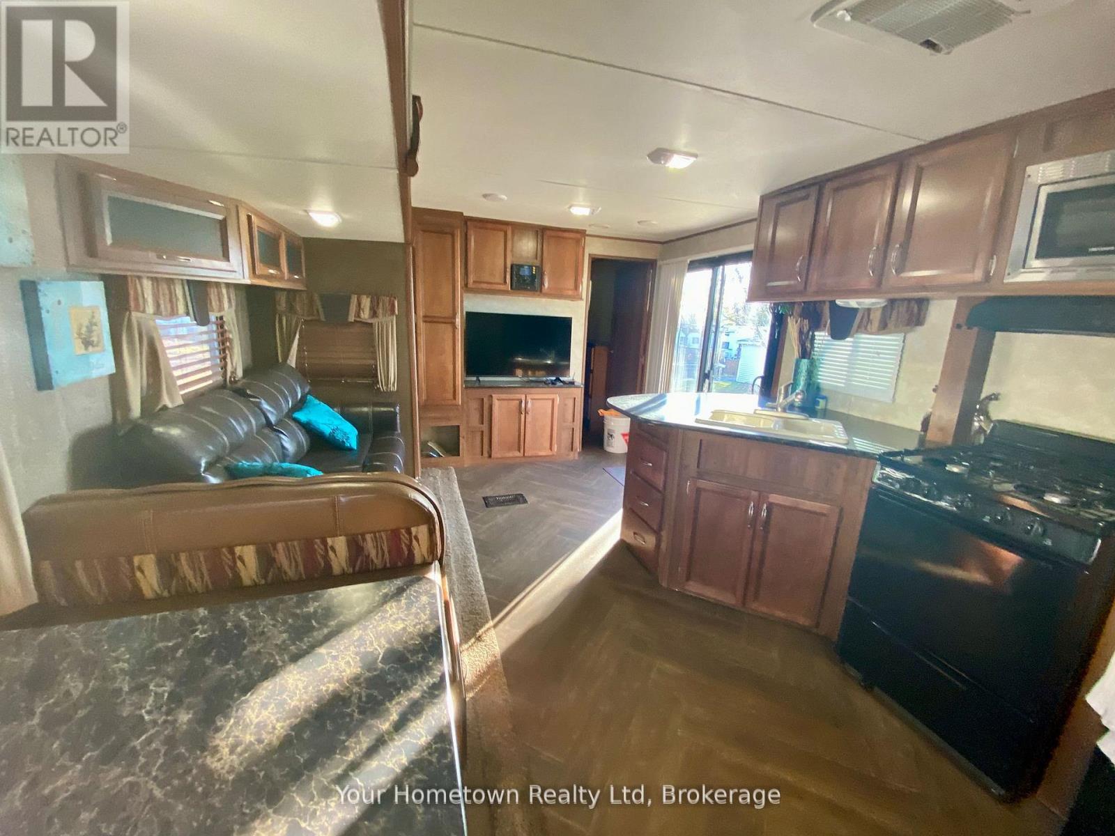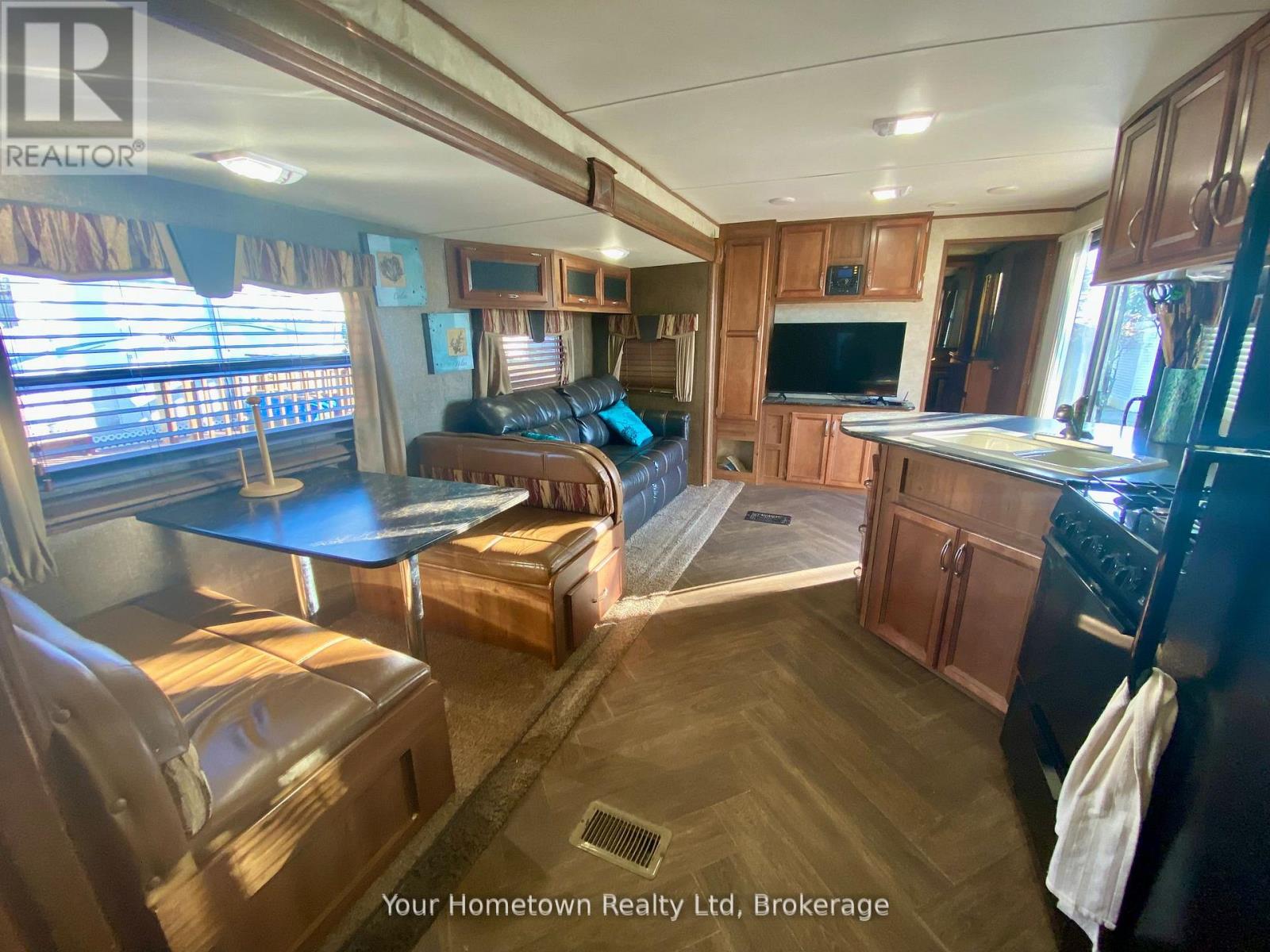 Welcome to this 2016 Gulf Stream mobile home, ideally situated in the sought-after Maple Leaf Acres Park along the scenic shores of Belwood Lake. Designed with comfort and functionality in mind, this spacious trailer comfortably sleeps up to eight, making it perfect for family getaways and entertaining guests. Step inside to an inviting open-concept layout that seamlessly connects the living, kitchen, and dining areas. Easy-care laminate flooring adds both style and practicality, while generous storage throughout ensures you'll always have space for everything you need. Stay cool and comfortable on warm summer days with built-in air conditioning.Outside, you'll love the expansive family-sized deck - an ideal spot for relaxing or hosting. The outdoor kitchen is fully equipped with a mini fridge, cooktop, and sink, creating the perfect setup for summer meals and gatherings. A handy storage shed provides additional space for all your outdoor gear and toys. Maple Leaf Acres offers low resort fees and an impressive range of amenities, including an indoor saltwater pool, hot tub, outdoor pool, playground, basketball courts, horseshoe pits, on-site restaurant, and a full calendar of activities for all ages. Conveniently located just 15 minutes from Fergus, 30 minutes from Guelph, and approximately 1.5 hours from Toronto, this is your opportunity to enjoy relaxed lakeside living all summer long. Don't miss your chance to make unforgettable seasonal memories! (id:64974)
